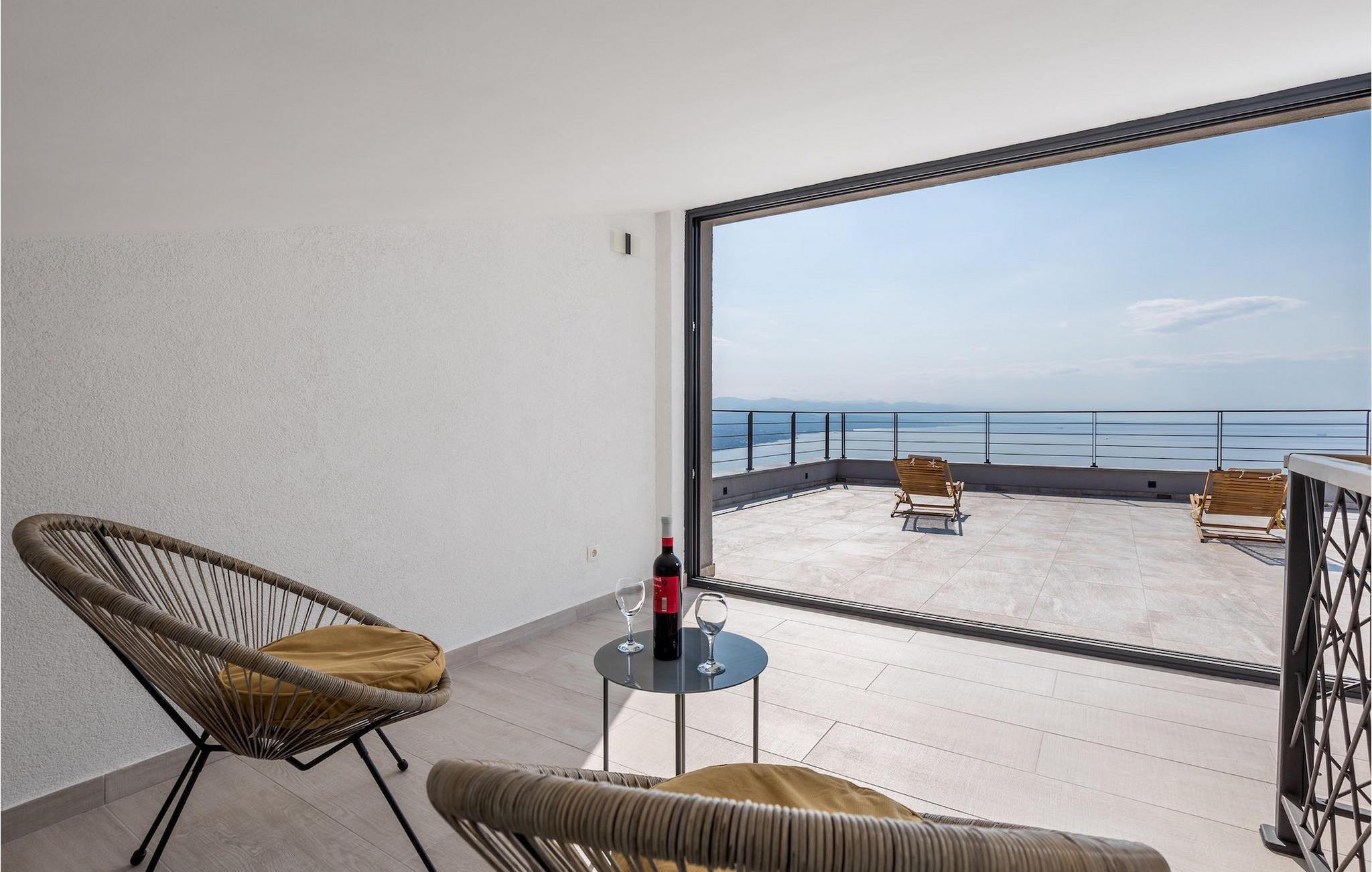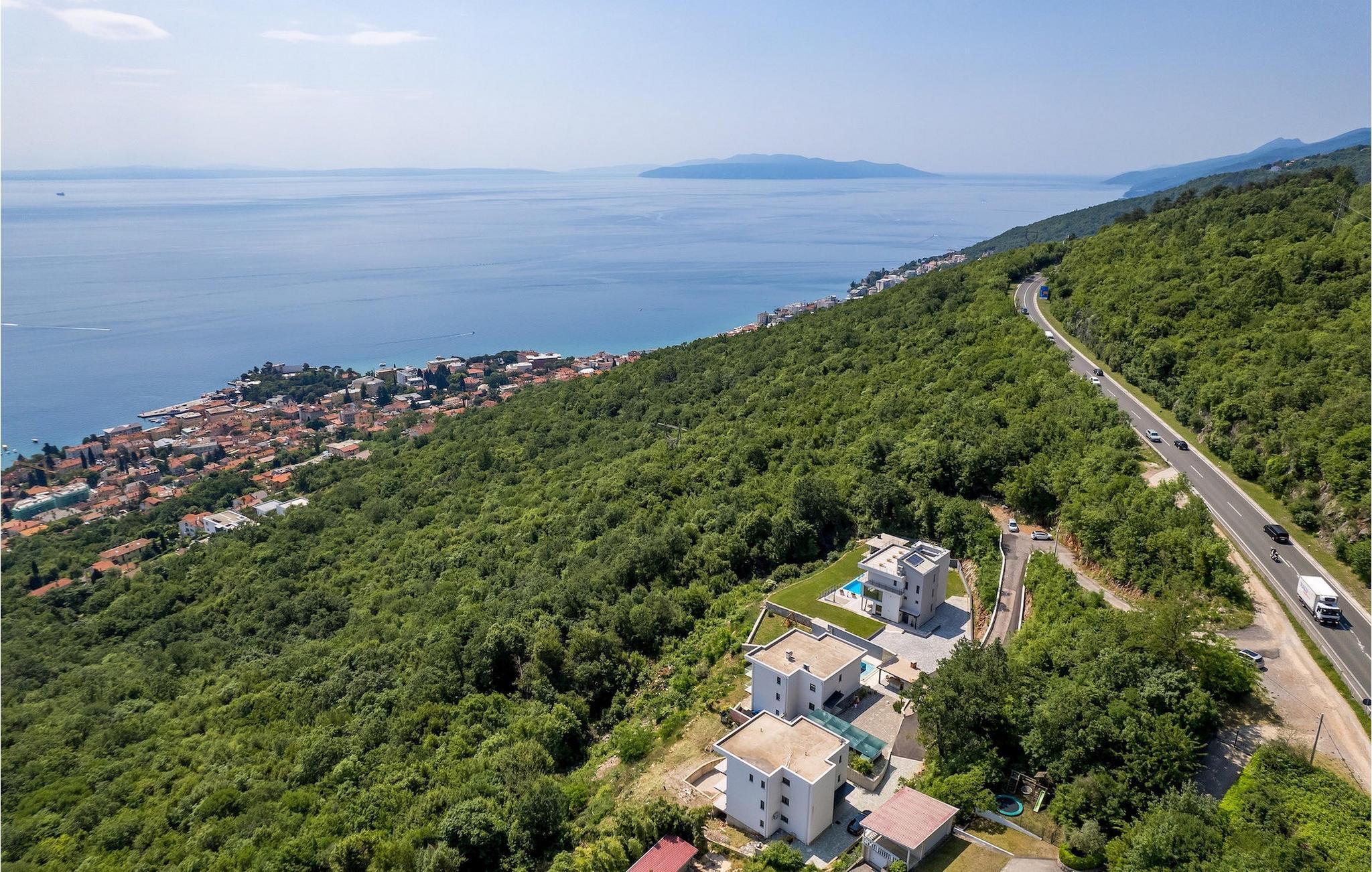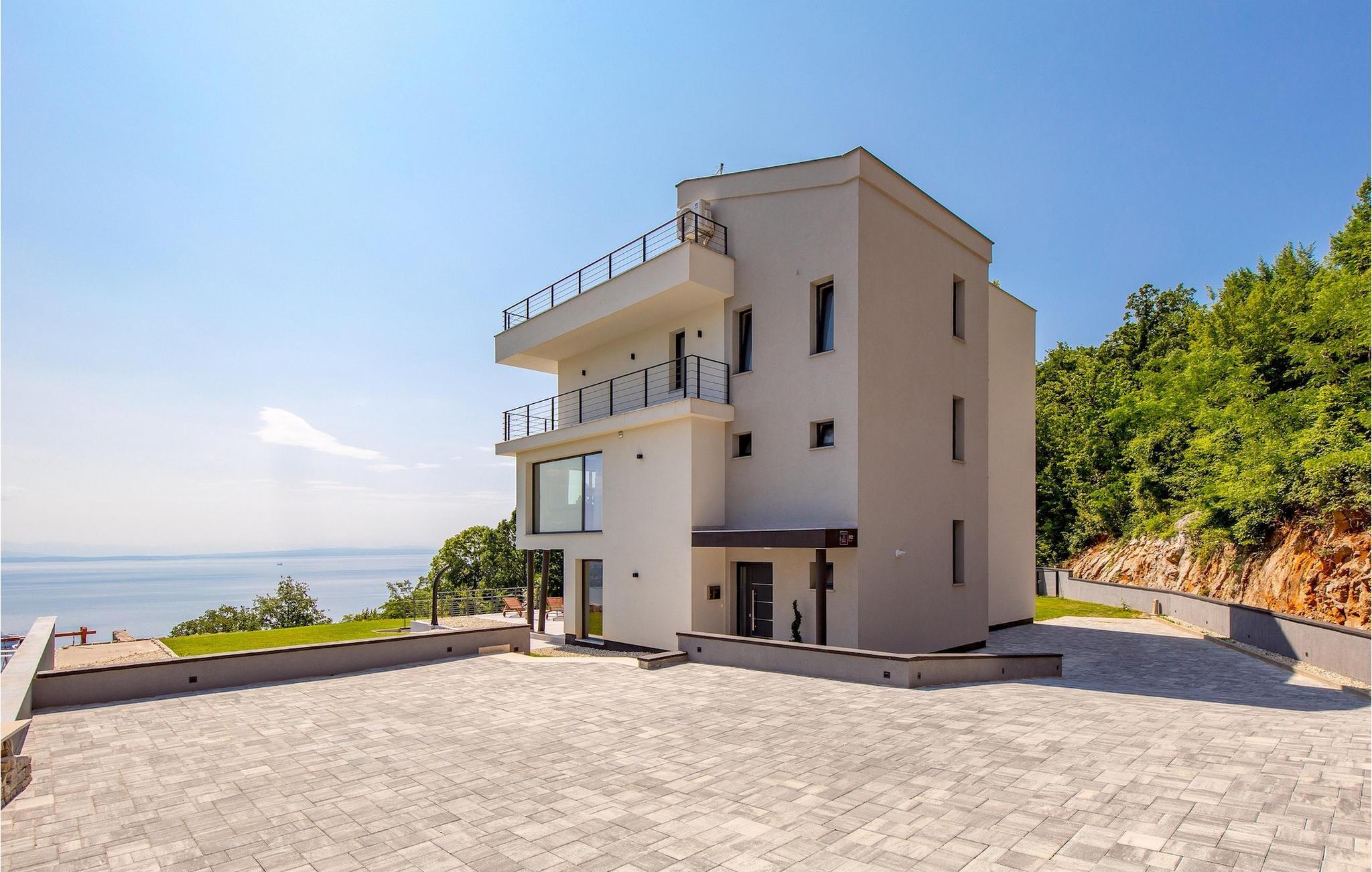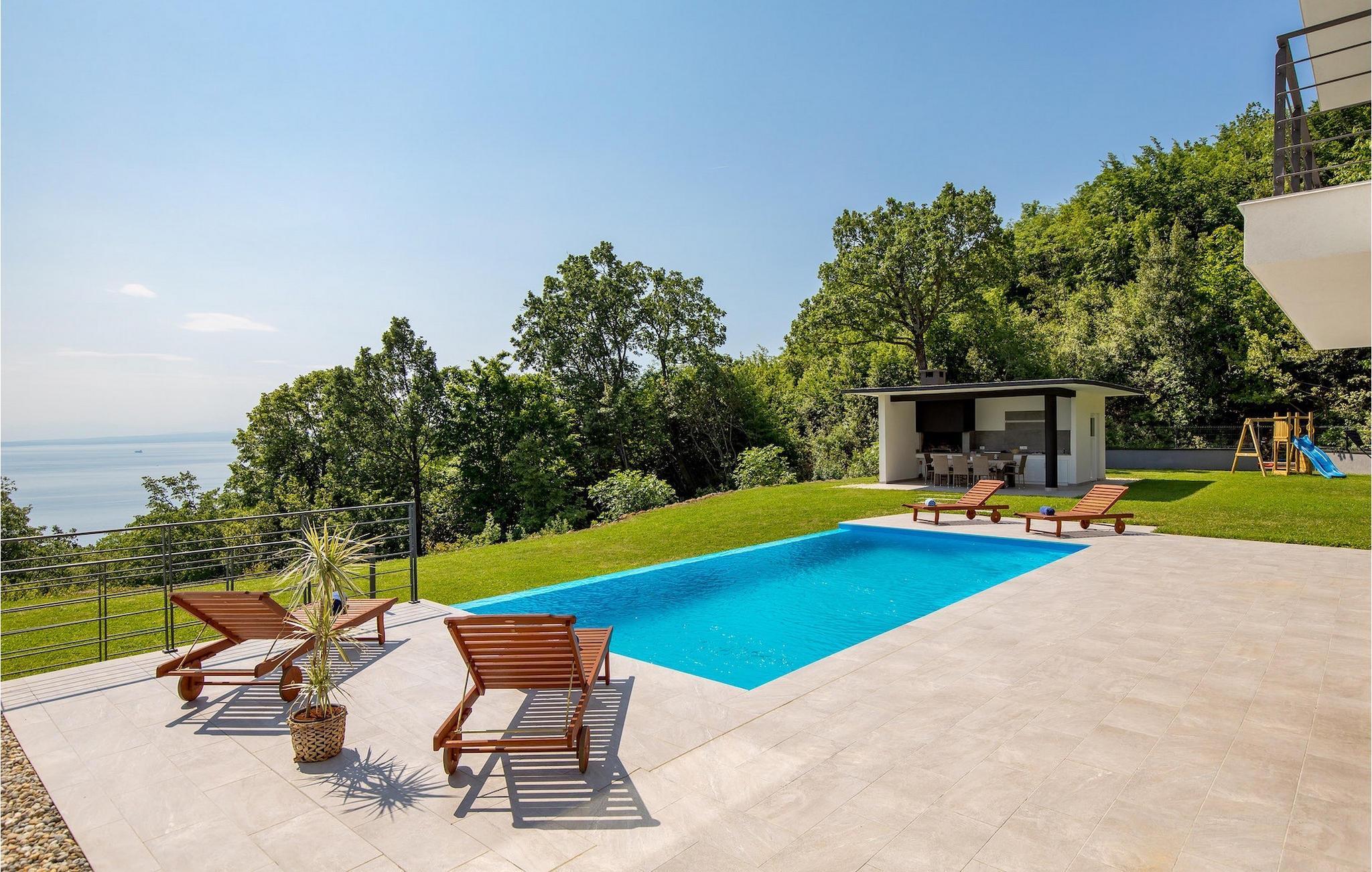 Auf einem großen Grundstück steht Ihnen ein privater Pool zur Verfügung, bei dem Sie sonnige Tage verbringen und dabei den Panoramablick auf die Kvarner Bucht genießen können. Im Außenbereich befindet sich auch eine Außenküche mit Grill und Esstisch, wo Sie gemütliche Sommerabende mit Familie und Freunden unter dem Sternenhimmel verbringen werden.