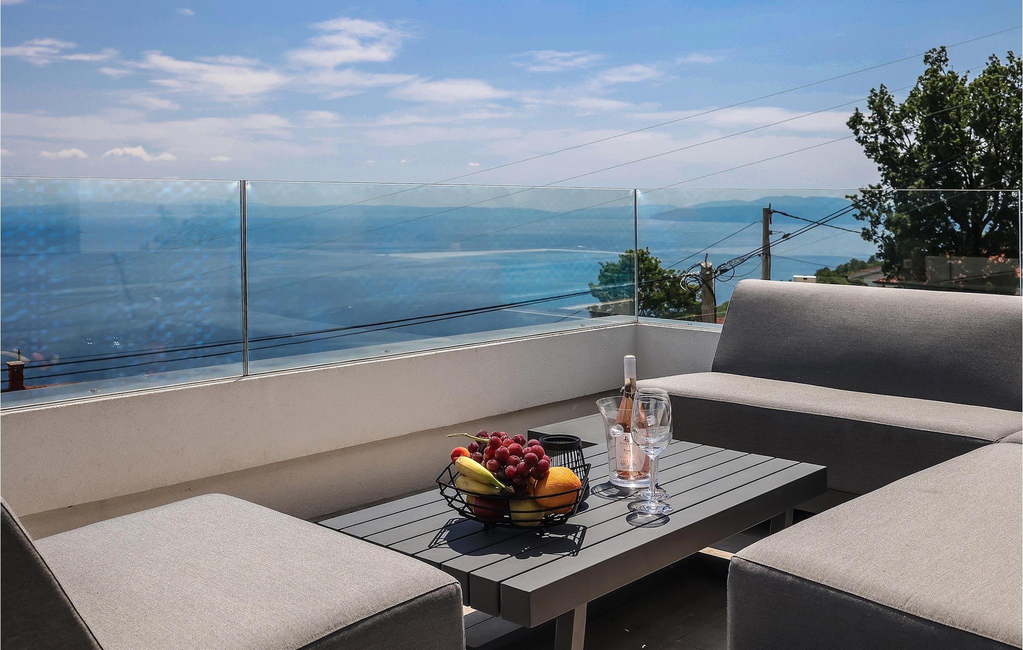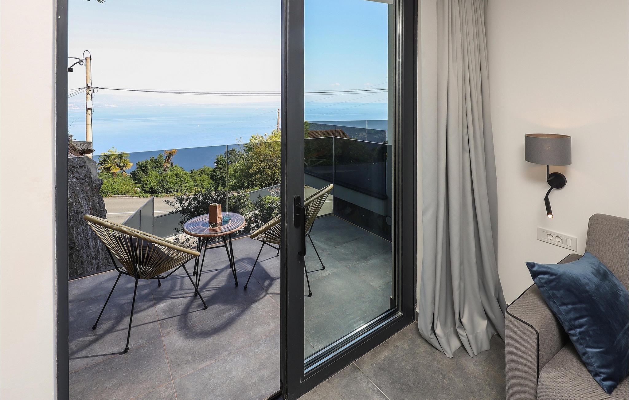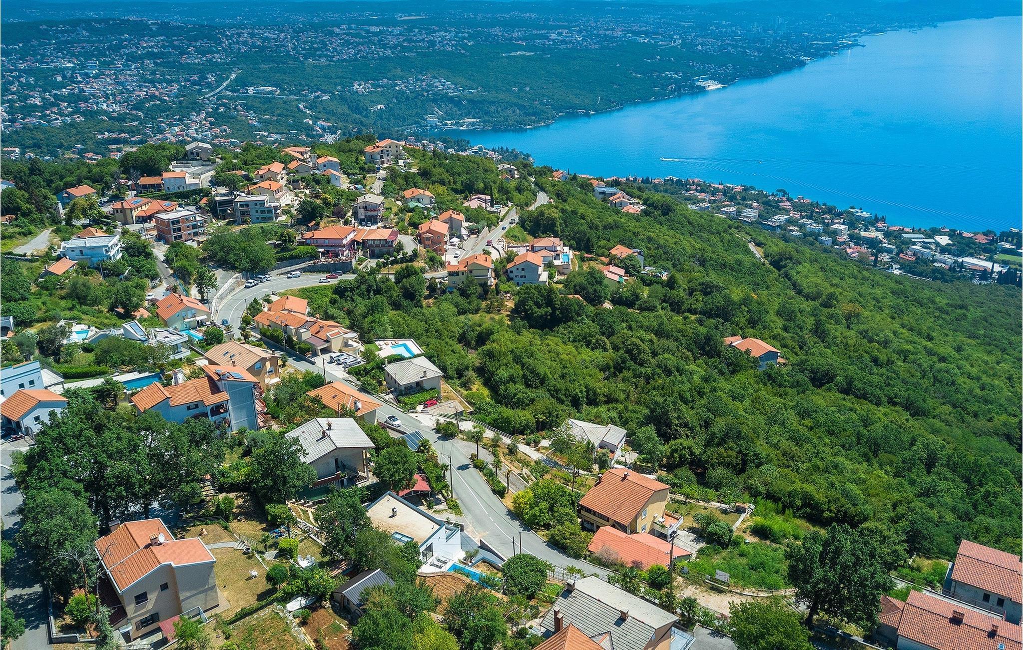 Ein Grill steht Ihnen ebenfalls zur Verfügung. Nutzen Sie die Gelegenheit, um Ihre Grillkünste unter Beweis zu stellen und Ihre Liebsten zu verwöhnen. Die Kinder können sich auf eine eignenen Spielplatz freuen! Betreten Sie von dem Poolbereich aus das Innere der Villa, so bietet sich die 1. Etage mit einem offenem, geschmackvoll eingerichteter Wohn- und Essbereich welcher mit einer komplett ausgestatteten Küche verbunden ist sowie ein Schlafzimmer mit Badezimmer. Der Innenbereich mit insgesamt 3 Schlafzimmer kann bis zu 8 Personen beherbergen. Im Erdgeschoss befinden sich zwei weitere Schlafzimmer und Badezimmer sowie ein Studio-Apartement mit Küche und Wohnbereich mit ausziehbarer Couch sowie ein Badezimmer. Jedes der schick eingerichteten Schlafzimmer verfügt über ein Balkon und Meerblick. Im Untergeschoss erwartet Sie ein Fitnessraum.Die Villa Grotta Opatija befindet sich oberhalb der bekannten Küstenstadt Opatija. Opatija ist schon seit einer langen Zeit ein anziehendes Touristenziel. Zahlreiche Denkmäler zu Ehren von bemerkenswerten Persönlichkeiten, die Opatija besucht haben, befinden sich hier. Die 12 km lange Lungomare Küstenpromenade ist bei den Gästen in Opatija besonders beliebt. Die beste Art, die Gegend kennenzulernen, ist durch einen Spaziergang durch Lungo Mare, die Volosko, ein charmantes kleines Fischerdorf, mit Lovran, der nächsten Stadt zu Icici, verbindet. Lungo Mare ist perfekt für romantische Spaziergänge am Abend mit Blick auf den malerischen Sonnenuntergang. Entlang der Kvarner Bucht finden Sie eine Vielzahl an traumhaften Stränden. Nach einem langen Tag voller Sonnenbaden und Sightseeing sollten Sie das Restaurantangebot in Opatija erkunden und die lokale Küche probieren. Sie werden sofort verstehen, warum Opatija den Titel “die Perle Adrias” trägt. Wenn Sie mehr als die nähere Umgebung entdecken möchten, sollten Sie mindestens einen der wunderschönen Inseln in der Kvarner Bucht - Cres, Losinj und Krk besuchen.