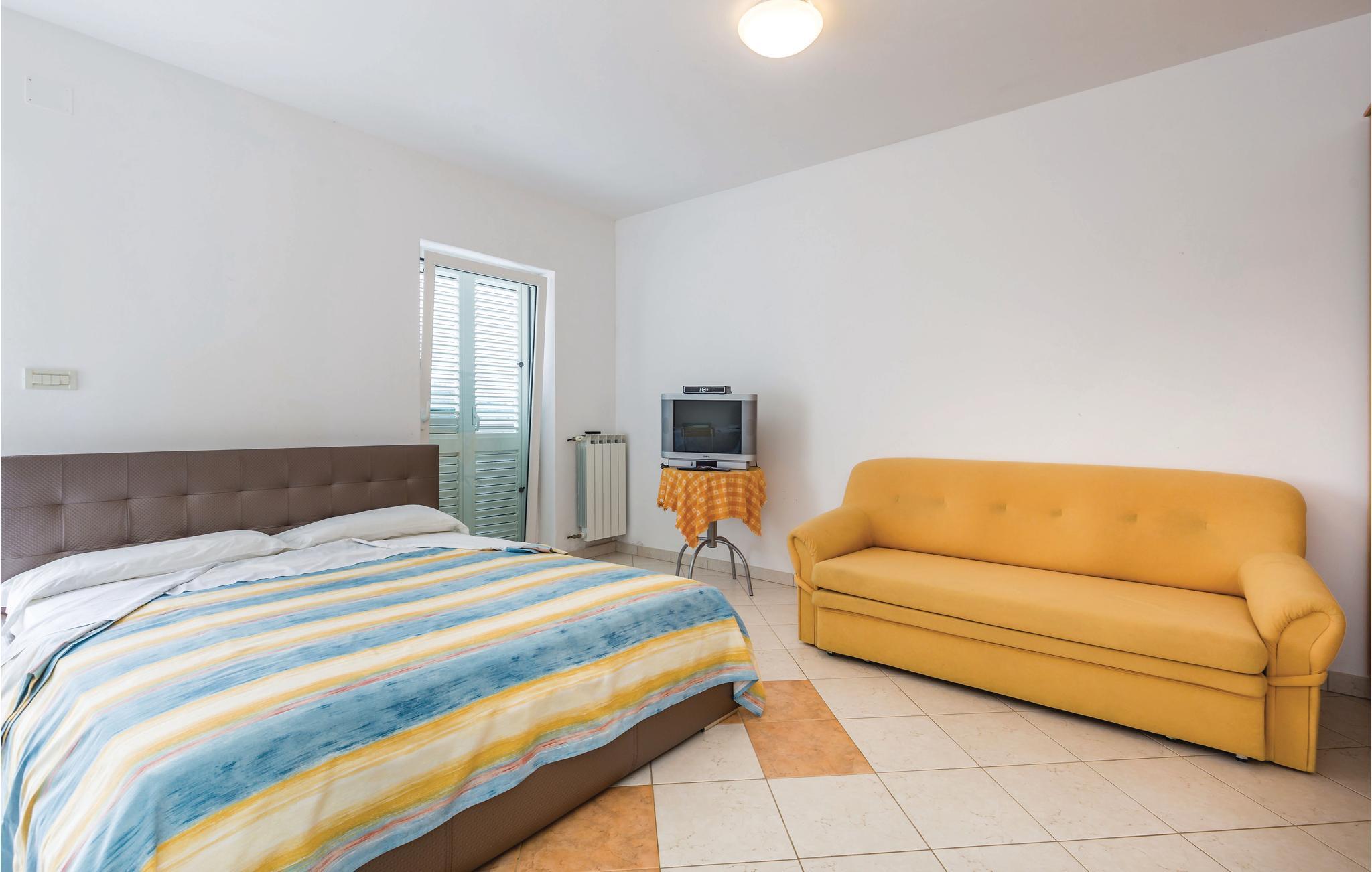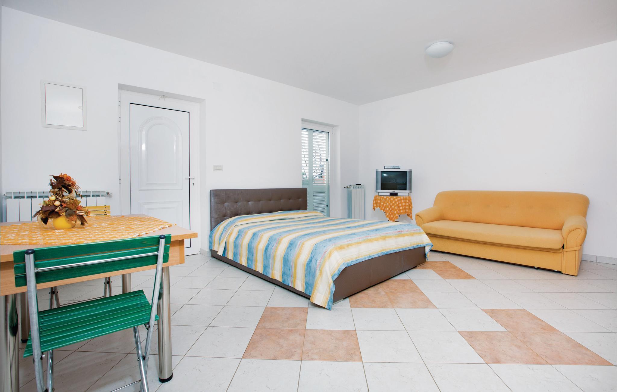 Wohnraum/Küche - 1 Schlafmöglichkeit. (Einzelbett(en)). 2 Schlafmöglichkeiten. (Doppelbett(en)).