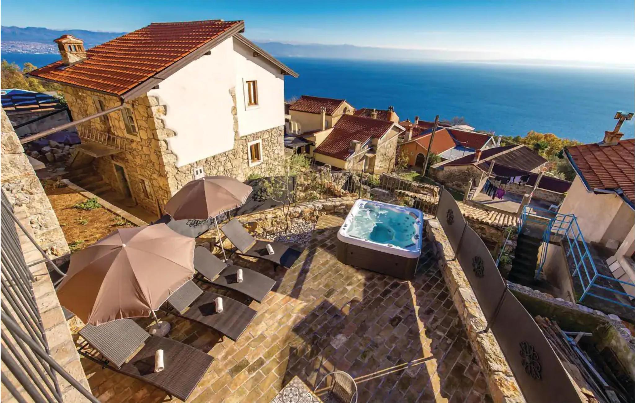 Abgerundet wird das Angebot durch einen Außenwhirlpool, der zusätzlich zu einem komfortablen Aufenthalt beiträgt. Verbringen Sie viel Zeit im Freien, denn die Terrassen bieten einen fantastischen Blick auf das Meer und die Hänge von Ucka. Die bergige Umgebung macht den Standort aufgrund der Kombination aus Meeres- und Bergklima sehr attraktiv, was besonders im Sommer oft für die dringend benötigte Erfrischung sorgt.