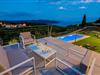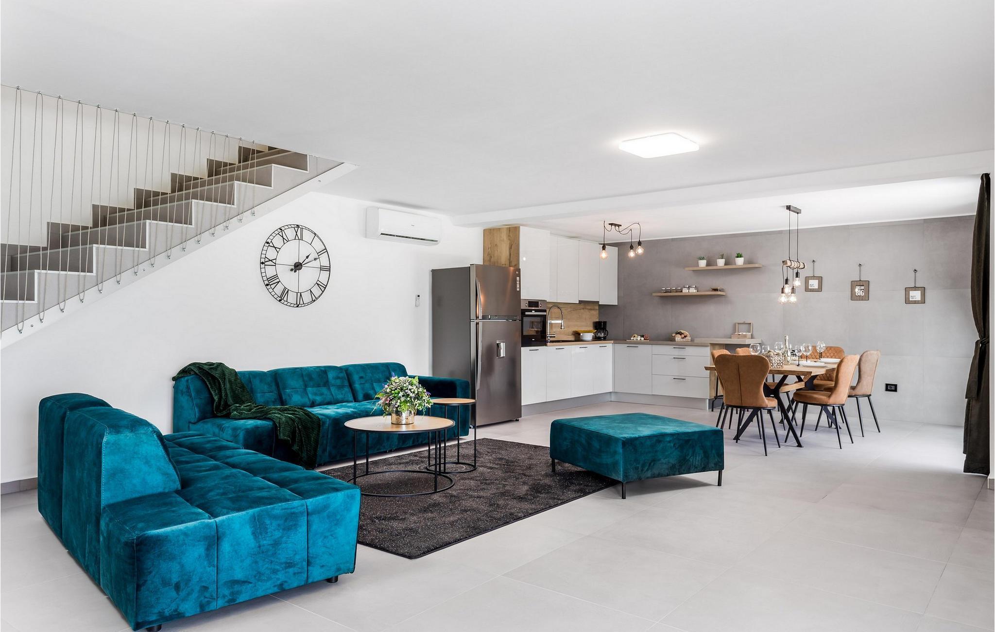 Die moderne Villa Amata liegt im charmanten Fischerdorf Mošcenicka Draga in der sonnigen Kvarner-Region. Aufgrund ihrer beneidenswerten Lage bietet die Villa einen bezaubernden Blick auf das Meer und die atemberaubende Umgebung. Umgeben von üppiger, aromatischer mediterraner Vegetation verspricht diese wunderschöne Villa einen erholsamen Urlaub in der absoluten Privatsphäre ihres komplett eingezäunten Grundstücks. Die harmonische Kombination aus kristallklarem Meer, grünen Inseln und imposanten Bergen im Hintergrund macht Mošcenice zum perfekten Reiseziel für einen unvergesslichen Sommerurlaub. Die geräumige Villa Amata bietet auf 366 m2 Wohnfläche Platz für 12 Gäste in 6 luftigen Schlafzimmern, die mit einem bequemen Doppelbett ausgestattet sind. Jedes Schlafzimmer verfügt außerdem über ein eigenes, voll ausgestattetes Badezimmer. Fünf der Badezimmer verfügen über eine Duschkabine, während ein Badezimmer auch über eine schöne Badewanne verfügt. Drei Schlafzimmer mit eigenem Bad befinden sich im ersten Stock, während sich die restlichen drei im zweiten Stock dieser vollklimatisierten Villa befinden. Den Gästen stehen außerdem zwei Schlafsofas zur Verfügung, auf denen weitere 4 Gäste bequem Platz finden. Eine separate Toilette befindet sich im Erdgeschoss. Das schöne Erdgeschoss der Villa Amata besteht aus einer schönen Küche, die mit modernsten Geräten ausgestattet ist, einem komfortablen Essbereich und einem geräumigen Wohnzimmer, in dem Sie nach einem köstlichen Mittagessen mit Sicherheit angenehme Momente mit Familie und Freunden genießen können. Das Innere der Villa strahlt Schlichtheit und Eleganz aus, während intensive Lila-, Smaragdgrün-, Königsblau- und Rottöne für eine Portion Frische und Verspieltheit sorgen. Große Glasflächen sorgen für beneidenswert viel Tageslicht in allen Räumen der Villa. Das Erdgeschoss bietet direkten Zugang zur Terrasse mit einem wunderschönen Pool von 3,80 x 9,80 m, der mit Hydromassagedüsen ausgestattet ist. Gäste können sich zu jeder Tageszeit am Pool erfrischen oder auf den 12 bequemen Sonnenliegen am Pool entspannen. Die schöne Terrasse verfügt außerdem über eine schöne Außenküche mit einem Holz-/Holzkohlegrill und einen überdachten Essbereich, wo die Gäste im Freien speisen können. Das Unterhaltungsangebot der Villa Amata umfasst Tischtennis- und Badmintonausrüstung sowie ein Trampolin. Den Gästen stehen außerdem 4 private Parkplätze innerhalb der Unterkunft zur Verfügung. Verbringen Sie Ihren Urlaub in der Villa Amata in der Stadt Mošcenice in der Kvarner-Bucht und genießen Sie die wunderschöne Landschaft dieser Küstenstadt. Salzige Meeresluft, mildes Klima, kulturelles und natürliches Erbe, erstaunliche Touristenattraktionen und unzählige gastronomische Köstlichkeiten sind nur ein Teil des außergewöhnlichen Angebots der Kvarner-Region. Bis zu 15 Kvarner-Strände tragen die Europäische Blaue Flagge, ein weltweit anerkanntes Umweltzeichen, das für erstklassiges Angebot und hohe Sauberkeit steht. Verpassen Sie nicht die Gelegenheit, den Nationalpark Risnjak, den Naturpark Ucka, das strenge Naturschutzgebiet Bijele und die Samarske stijene zu besuchen. Genießen Sie Aktivitäten wie Tauchen, Segeln, Rafting, Kanufahren, Radfahren, Angeln, Wandern und Reiten, Fallschirmspringen, Paragliding und Kiten. Oder entspannen Sie sich einfach und genießen Sie die wunderbare Schönheit der Region. Kvarner ist wirklich ein Urlaubsziel für alle Generationen! Haustiere sind in dieser Unterkunft nach Ermessen des Eigentümers oder gegen eine Gebühr gestattet.