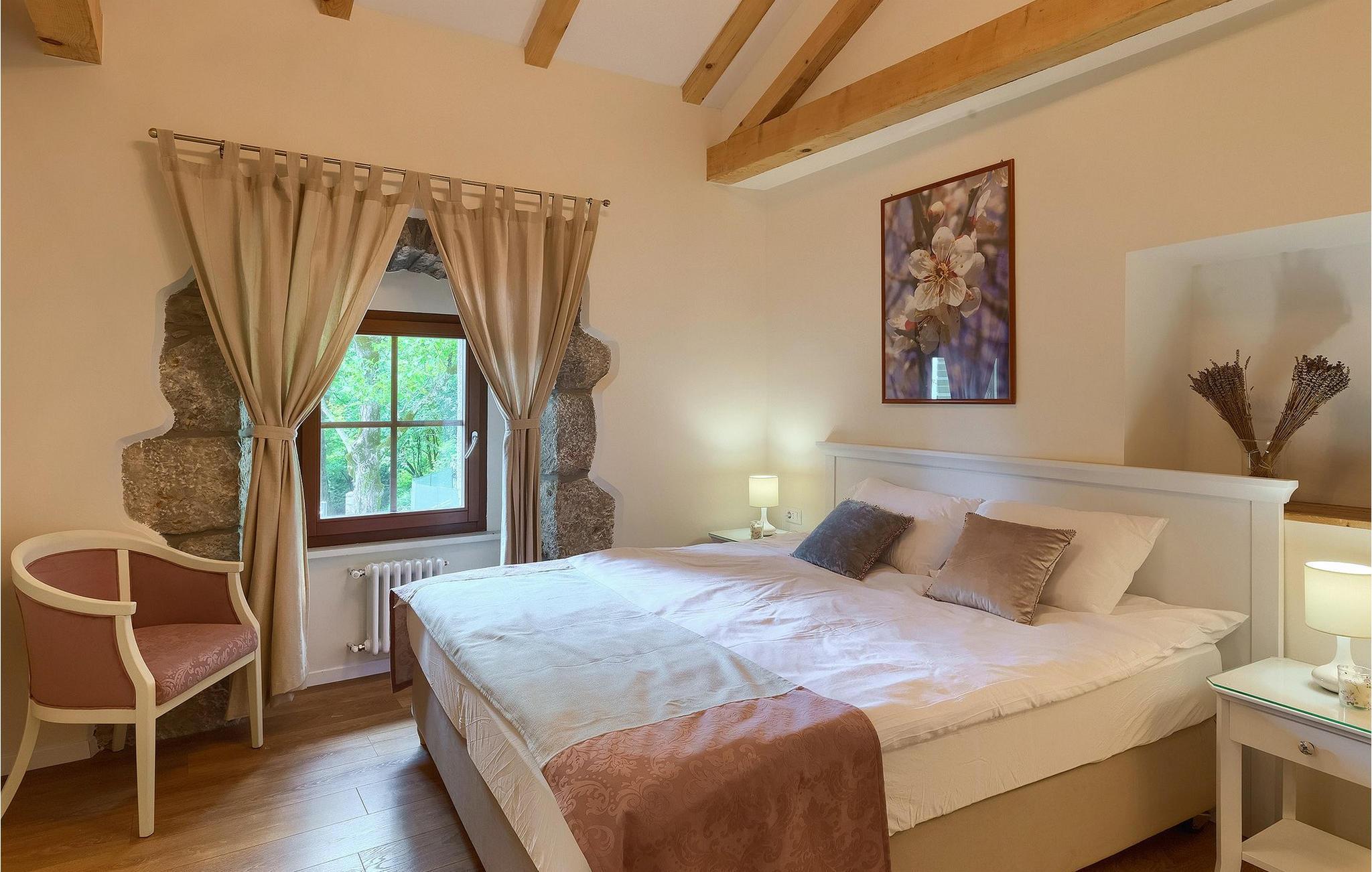 Möchten Sie Ihren Urlaub in einer prachtvollen, traditionellen Villa verbringen, die sich am Rand eines Kastanienwaldes befindet? Ein ruhiger und entspannter Urlaub in der wunderschönen, liebevoll eingerichteten Villa Lumaca, ist dann Ihre richtige Auswahl! Diese atemberaubende Steinvilla wird Sie mit Ihrem Vintage Details und rustikalen Einrichtung, die Stein und Holz erfolgreich verbindet, entzücken. Im Erdgeschoss der Villa finden Sie ein geräumiger Wohnraum mit der authentischen Küche, einem Wohnzimmer und das mit Steinbogen abgeteilte Esszimmer. Verwöhnt mit Gegenständen, die auf einen Hauch von Omas Küche zurückrufen, können Sie hier und auf dem Grill im Garten, Ihre Lieblingsspeisen vorbereiten. Auf der ersten Etage befinden sich 4 angenehme Schlafzimmer mit schönen Details, jedes Zimmer in der passenden Farbharmonie mit Steinelementen die erkennbar sind für Villa Lumaca. Jedes Schlafzimmer verfügt auch über eine Klimaanlage, ein TV und einen passenden privatem Badezimmer. Möchten Sie sich komplett entspannen und Ihren Blick auf der grünen Umgebung ausruhen, können Sie Ihre Urlaubszeit neben den privaten Pool vertreiben. Entweder Sie sonnen sich auf den Liegestühlen, planen einen Wanderausflug in die Umgebung, oder bereiten Grillspeisen vor, der schöne Garten der Villa wird Sie nicht enttäuschen! Villa Lumaca erwartet Sie!