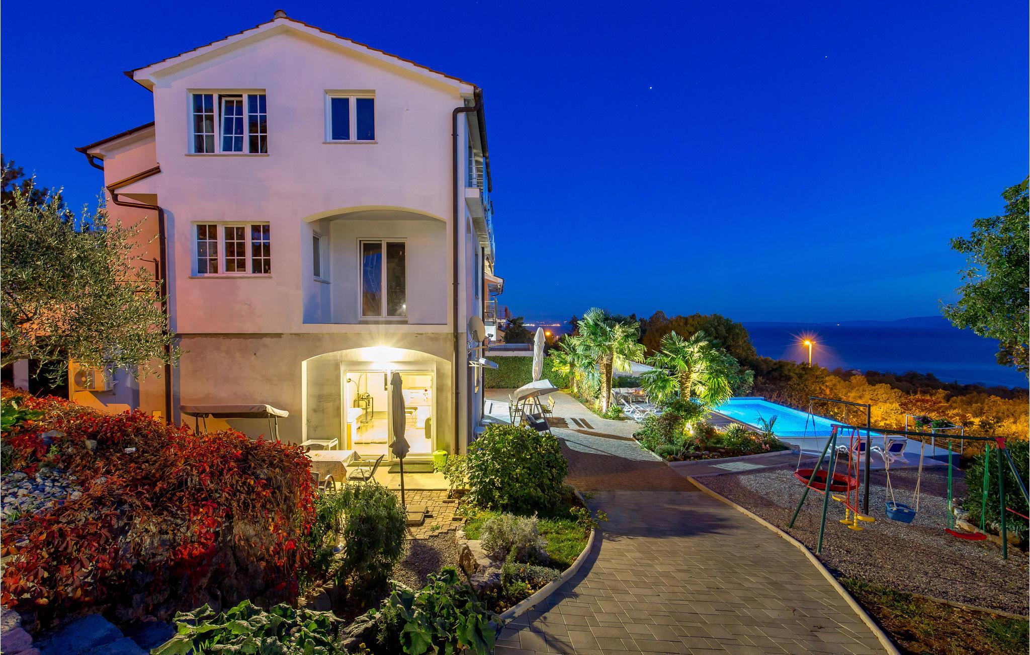 Im Erdgeschoss dieses Hauses befinden sich ein schönes Studio-Apartment für 2 Personen. Sie haben direkten Zugang zum Garten, wo es eine gemeinsame Terrasse und einen Grill gibt. Außerdem bietet die Ferienwohung eine eigene Terrasse. Erfrischen Sie sich im gemeinsamen Pool oder genießen Sie die Sonne auf den Sonnenliegen mit Ihrem Lieblingsbuch. Die funktionell eingerichteten Wohnelemente sind stilvoll miteinander verknüpft und behagen Ihnen bestimmt. Für Sportbegeisterte hat der Schwimmbadkomplex in Kantrida eine Vielfalt von Anlagen und Opatija wird Sie mit ihrer wunderschönen Uferpromenade bezaubern.