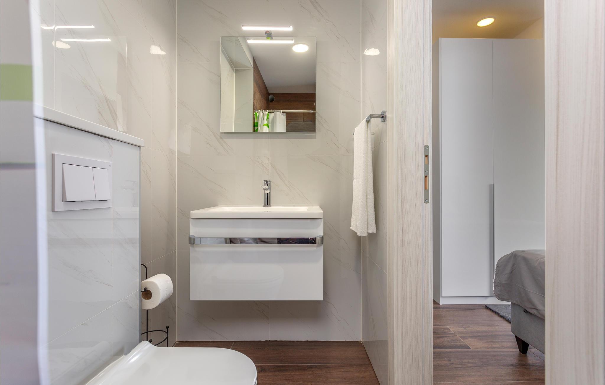 Badezimmer 4m2 (nr. 1) - WC. Warmes und kaltes Wasser. Dusche