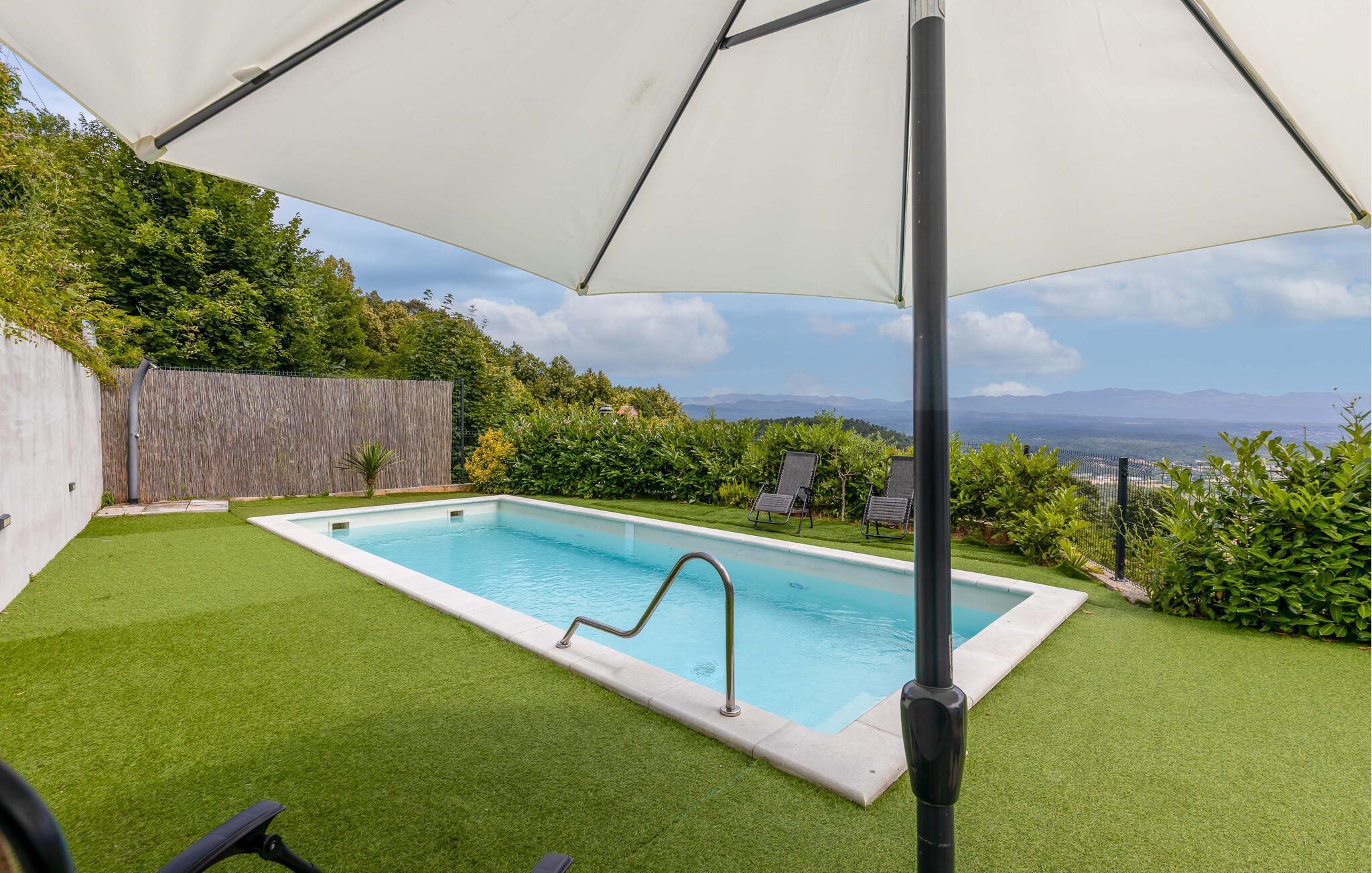 Der schöne Außenbereich zählt zu den Highlights des Hauses und wird garantiert ein beliebter Rückzugsort während Ihres Urlaubs. Machen Sie sich es am Pool mit einem eisgekühlten Getränk bequem, lassen Sie den Blick über das verzaubernde Panorama schweifen und schwimmen Sie ab und zu eine Runde.