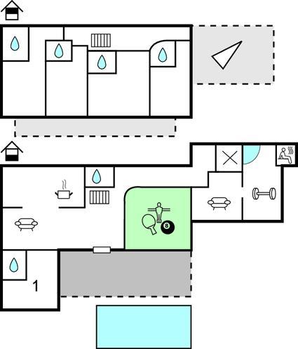 Badezimmer (nr. 1) - WC. Warmes und kaltes Wasser. Dusche