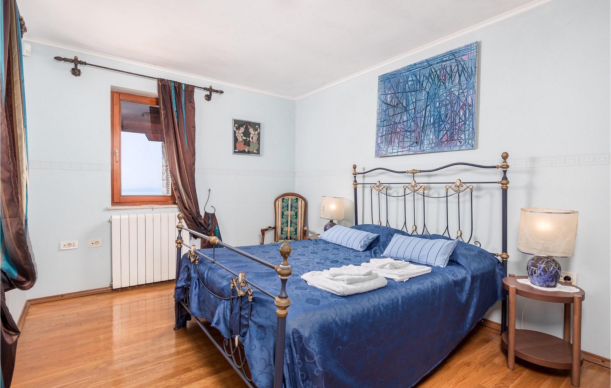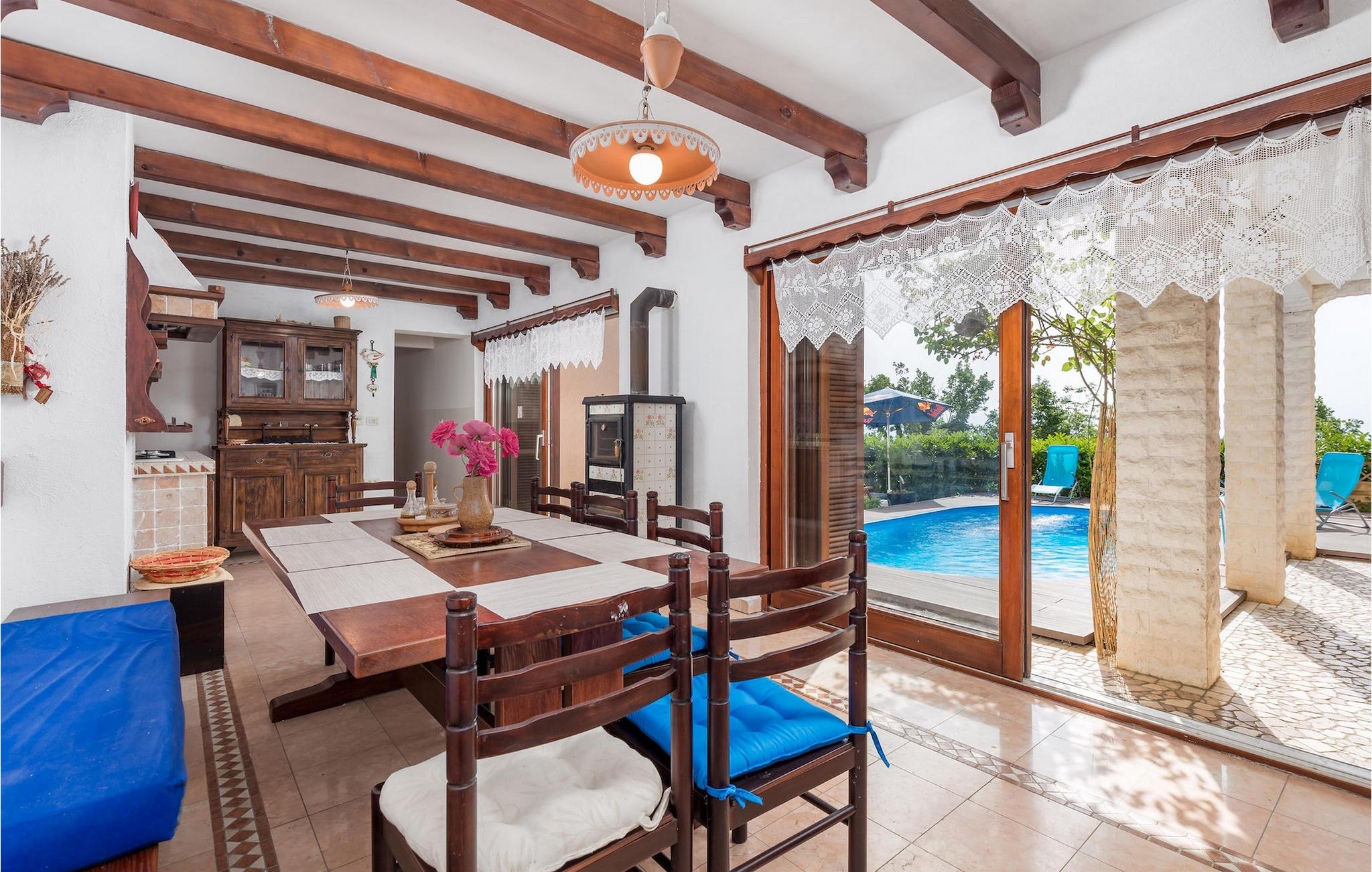 Villa Milli liegt in Veprinac, über der Perle der Adria, Opatija. Diese charmante Villa empfängt Sie mit einer romantischen Terrasse mit Hintergrund aus Natur und wunderschönen Blumen, die vom Balkon hängen. Hier können Sie eine der 8 Strandliegen nutzen, um sich unter freiem Himmel zu sonnen und den vorbeiziehenden Wolken zuzusehen, während Ihre Kinder in den erfrischenden Privatpool springen. Der Balkon umgibt den Pool an drei Seiten und bietet Schatten neben dem offenen Himmel. Im Hof ??finden Sie einen Holzkohlegrill für ein gemütliches Familiengrillen. Komplett mit einem Steintisch und einer Sitzbank, umgeben von Pflanzen, für einen perfekten Rückzugsort aus der Großstadt. Durch die Holztür mit schönem dekorativen Glasrahmen und ein paar Stufen hinauf erwartet Sie das Wohnzimmer. Auf der gleichen Etage befindet sich die voll ausgestattete Küche mit einem Esstisch für bis zu 10 Personen. Die Villa verfügt außerdem über eine Sauna, um alle Alltagssorgen dahinschmelzen zu lassen. Das Doppelzimmer mit Badezimmer und ein Zustellbett bieten gemütlichen Schlaf. Für die sportliche Familie gibt es einen Heimtrainer, Gewichte oder ein Springseil, um im Urlaub fit zu bleiben. Eine Etage höher bietet Ihnen die zweite Küche den Komfort, sich Ihre frische Tasse Kaffee direkt aus dem Bett zu holen und sich für einen ruhigen Morgen auf den Balkon zu begeben. Dank des zweiten Wohnzimmers können die Kinder auf einer Etage einen spaßigen Filmabend verbringen, während die Erwachsenen auf der anderen Etage Ihre Zeit für sich genießen und entspannen können. Schließlich laden zwei weitere entzückende Doppelzimmer mit jeweils eigenem Badezimmer nach langen Tagen voller Spaß in der Sonne zu angenehmen Nächten mit tiefem, erholsamem Schlaf ein. Besuchen Sie die Villa Milli für einen erholsamen Urlaub in einem schönen, authentischen Haus, ideal für Familien. Villa Milli liegt in der wunderschönen Bergstadt Veprinac, die über ein reiches Erbe und wichtige kulturelle und historische Denkmäler verfügt. Am bemerkenswertesten ist die Markuskirche mit ihrem berühmten Glockenturm. Die Villa liegt in unmittelbarer Nähe der „Perle der Adria“, der Stadt Opatija. Für einen entspannten Spaziergang entlang der Küste müssen Sie unbedingt die Promenade Lungomare besuchen. Sie bietet einen atemberaubenden Blick auf die Stadt und die umliegenden Inseln. Dies ist der perfekte Ort, um die natürlichen Sehenswürdigkeiten von Opatija bei einem Spaziergang mit leckerem Eis in der Hand, zu erkunden. Gibt es ein besseres Touristenziel als das Gebäude, das den Beginn der touristischen Epoche in der Geschichte von Opatija markierte? Die Villa Angiolina aus dem 19. Jahrhundert liegt inmitten eines Gartens mit exotischen Pflanzen und beherbergt das Kroatische Tourismusmuseum. Es sammelt, untersucht und zeigt Objekte und Geschichten, die die reiche Geschichte des Tourismus in Kroatien repräsentieren. Um die Schönheit und Geschichte Kroatiens an einem atemberaubenden Ort zu erleben, ist Opatija für einen bemerkenswerten Familienurlaub genau das Richtige.