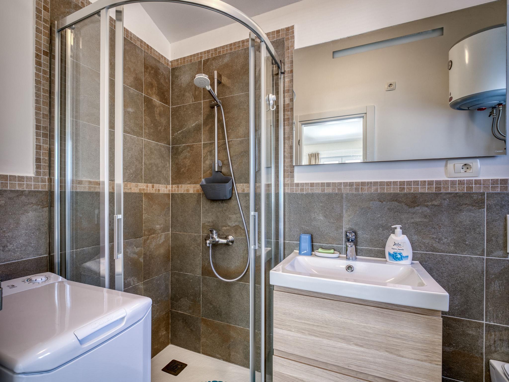 2-Zimmer-Haus 30 m2, Südlage. Schön und rustikal eingerichtet: Wohn-/Esszimmer mit Sat-TV (Flachbildschirm), Klimaanlage. Ausgang zur Terrasse. 1 Zimmer mit 1 franz. Bett (160 cm, Länge 200 cm), Dusche/WC. Offene Küche (Backofen, 2 Glaskeramikplatten, elektrische Kaffeemaschine). Keine Heizmöglichkeit. Terrasse 20 m2. Terrassenmöbel. Sicht auf das Meer. Zur Verfügung: Waschmaschine. Internet (Wireless LAN, gratis).