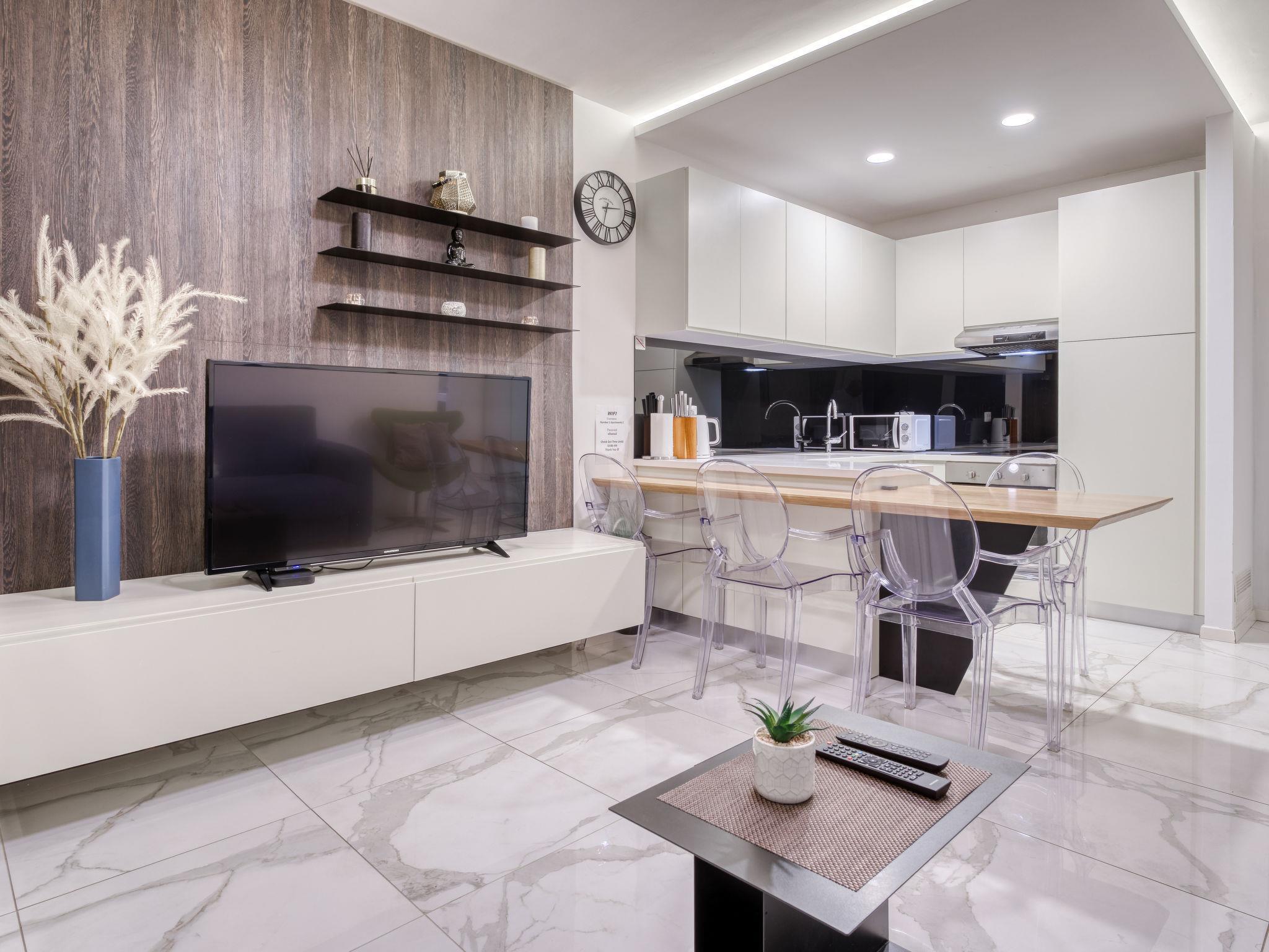 2-Zimmer-Wohnung 36 m2 im 2. Stock. Modern eingerichtet: Wohn-/Esszimmer mit 1 Doppeldiwanbett (160 cm, Länge 200 cm), Kabel-TV (Flachbildschirm), Klimaanlage. 1 Zimmer mit 1 franz. Bett (160 cm, Länge 200 cm), Sat-TV (Flachbildschirm), Klimaanlage. Offene Küche (Backofen, Geschirrspüler, 4 Glaskeramikplatten, Wasserkocher, Mikrowelle). Dusche/WC. Bodenheizung, Warmluftheizung. Schöne Sicht auf das Meer und das Städtchen. Zur Verfügung: Safe, Bügeleisen, Haartrockner. Internet (WLAN, gratis). Garage (1 Auto). Bitte beachten: Nichtraucher-Haus. Beim Mietobjekt handelt es sich um ein Typenhaus bzw. Um eine Typenwohnung.