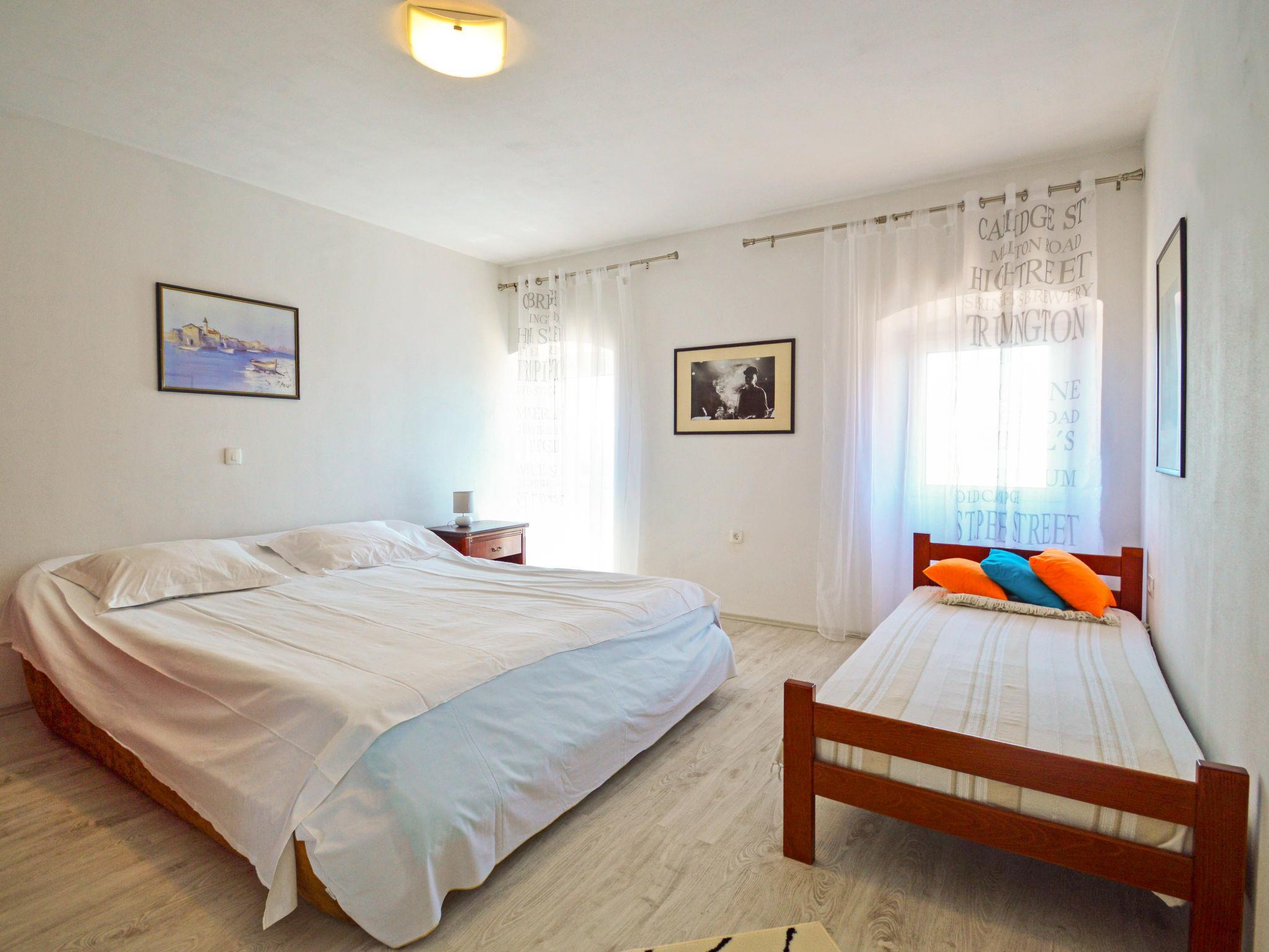 4-Zimmer-Wohnung 120 m2, im erhöhten Erdgeschoss, Ostlage. Wohn-/Esszimmer 25 m2 mit Kabel-TV (Flachbildschirm), Klimaanlage. Ausgang zur Terrasse. 1 Zimmer mit 2 Betten (90 cm, Länge 190 cm). 1 Zimmer mit 1 franz. Bett (180 cm, Länge 200 cm). 1 Zimmer mit 1 Bett (90 cm, Länge 190 cm), 1 Doppelbett (2 x 110 cm, Länge 200 cm), Dusche/WC. Offene Küche (Backofen, 4 Glaskeramikplatten, Tiefkühler, elektrische Kaffeemaschine). Dusche/WC. Keine Heizmöglichkeit. Schöne Panoramasicht auf das Meer. Zur Verfügung: Waschmaschine, Babybett. Internet (WLAN, gratis). Bitte beachten: Maximal 2 Haustiere/Hunde erlaubt. Eigener Eingang.