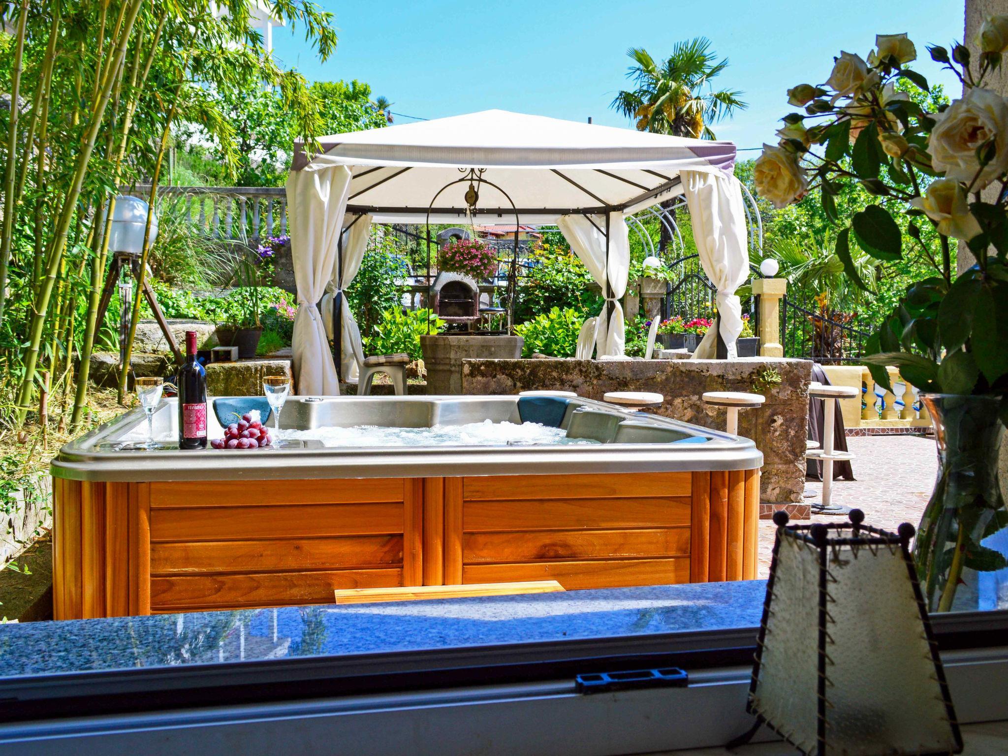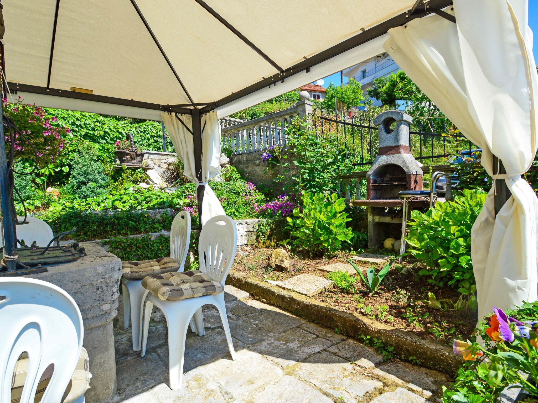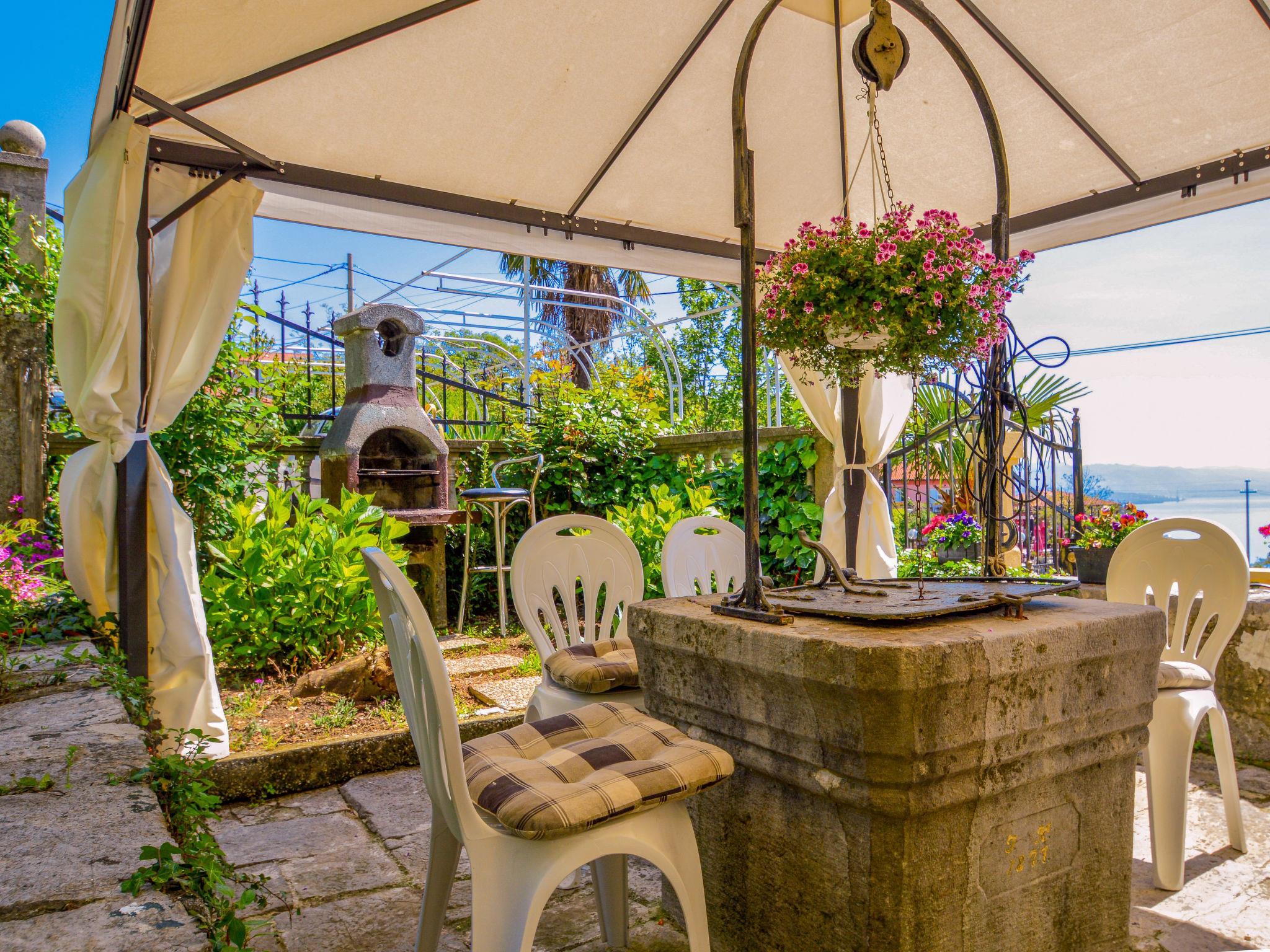 Bregi 5 km von Opatija: Zweifamilienhaus "Andrea". Sonnige, erhöhte Lage, 5 km vom Meer. Zur Alleinbenutzung: Grundstück 100 m2 (eingezäunt). Sprudelbad, Laube, Terrasse (70 m2), Gartenmöbel, Grill. Im Hause: Internetzugang. Parkplatz beim Haus auf dem Grundstück. Einkaufsgeschäft 20 m, Restaurant 100 m, Bushaltestelle 25 m, Kieselstrand 5 km, betonierter Strand 5 km. Im Erdgeschoss: Einkaufsgeschäft.