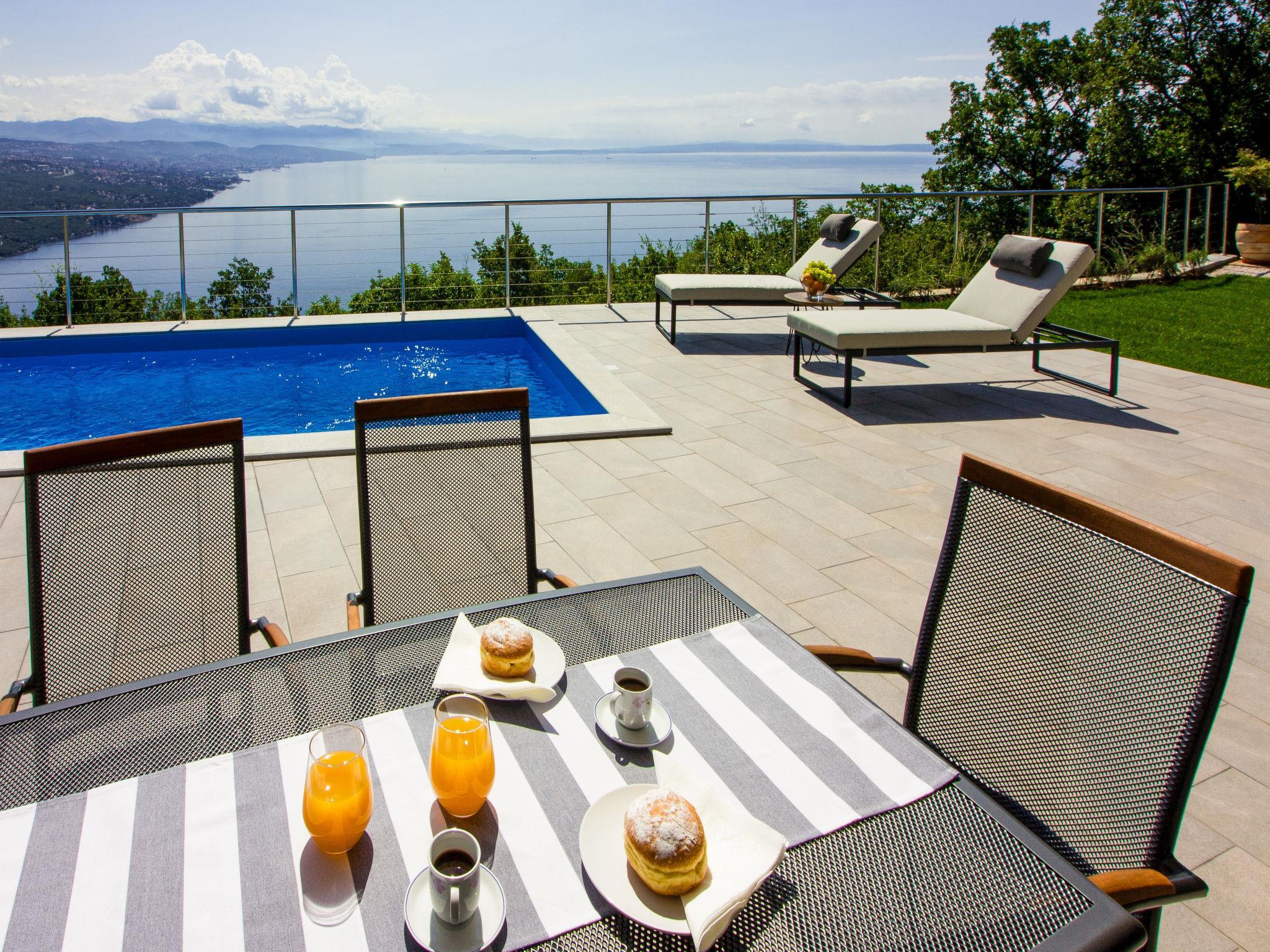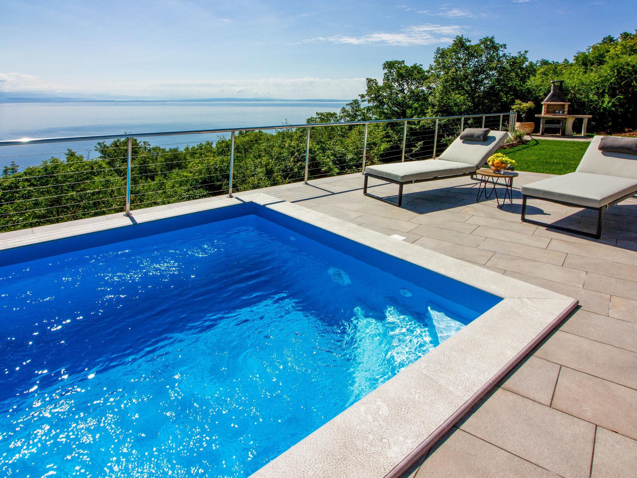 Bregi 4 km von Opatija: Villa "Vista sul Quarnero". Oberhalb von Opatija, im Weiler Zvancici, ruhige, sonnige, erhöhte Lage, 4.5 km vom Meer, 4.5 km vom Strand, im Grünen. Zur Alleinbenutzung: Grundstück 1'200 m2 (eingezäunt), Rasen und Bäumen, Schwimmbad beheizt (7 x 3 m, 160 cm tief, saisonale Verfügbarkeit: 01.Mar. - 15.Nov.) mit Innentreppe. Aussendusche, Gartenmöbel, Grill, Kinderspielplatz (Schaukel). Im Hause: Internetzugang, Tischfussball, Trampolin, Waschmaschine. Parkplatz (für 3 Autos) beim Haus auf dem Grundstück. Einkaufsgeschäft 600 m, Supermarkt 3 km, Restaurant 500 m, Bushaltestelle 290 m, Kieselstrand 4.5 km, Strandbad 4.5 km, betonierter Strand 4.5 km. Wanderwege ab Haus 500 m. Bitte beachten: geeignet für Familien. Bitte teilen Sie uns mindestens 7 Tage vor Anreise mit, ob eine Poolheizung erforderlich ist. Das veranstalten von Feiern ist nicht gestattet.