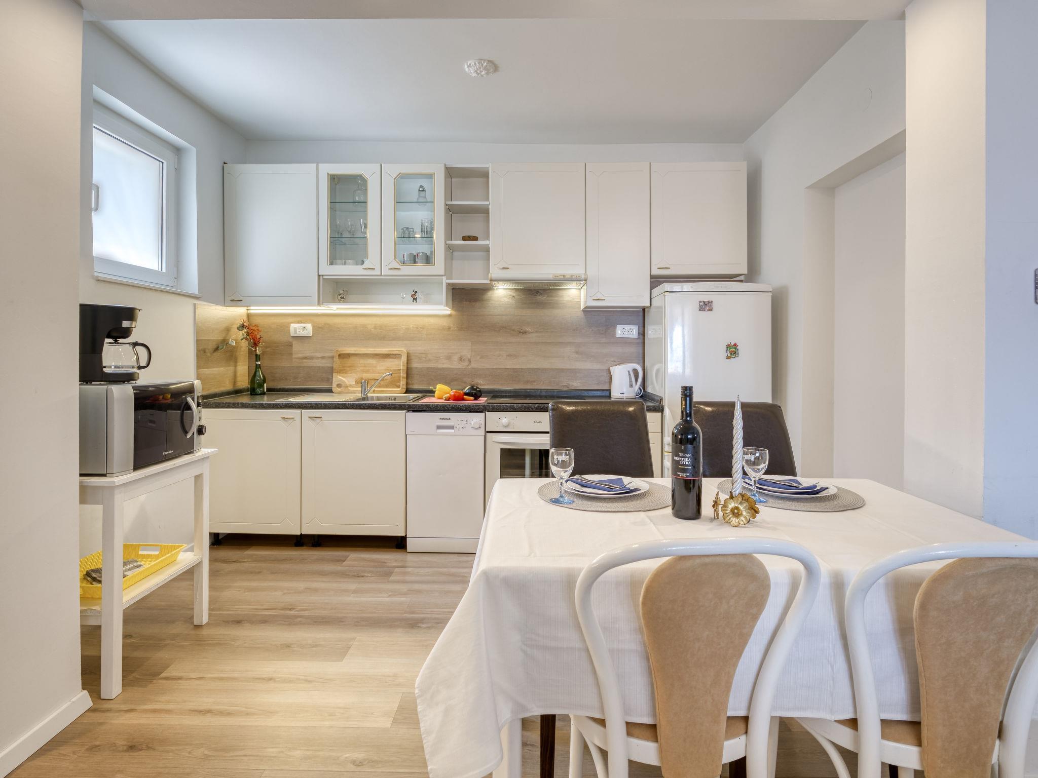 2-Zimmer-Wohnung 50 m2, im Erdgeschoss, Südlage. Wohn-/Esszimmer mit 1 Doppeldiwanbett (150 cm, Länge 190 cm), Kabel-TV und Klimaanlage. 1 Zimmer mit 2 Betten (90 cm, Länge 200 cm). Offene Küche (Backofen, Geschirrspüler, 4 Glaskeramikplatten, Wasserkocher, Mikrowelle, Tiefkühler, elektrische Kaffeemaschine). Dusche/WC. Warmluftheizung. Terrasse 16 m2, überdacht. Terrassenmöbel. Zur Verfügung: Internet (Wireless LAN, gratis). Parkplatz (2 Autos). Bitte beachten: Nichtraucher-Haus. Eigener Eingang.