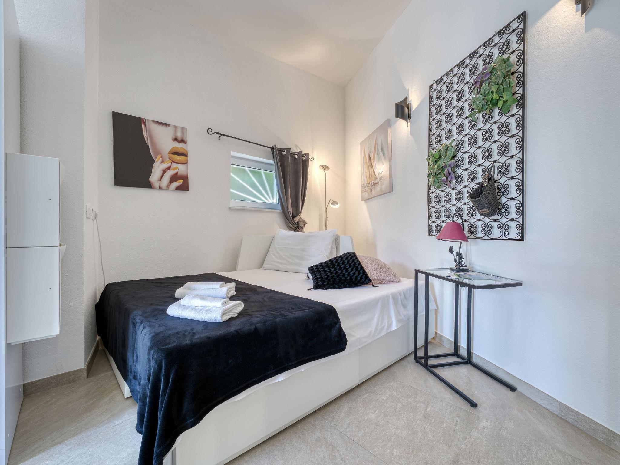5-Zimmer-Doppelhaushälfte 120 m2, Südlage. Studio mit 1 Ausziehbett (2 x 90 cm, Länge 200 cm), Küchenblock, Sat-TV und Klimaanlage. Ausgang zur Terrasse. Wohn-/Esszimmer mit 1 Doppeldiwanbett (150 cm, Länge 200 cm), Küchenblock, Kabel-TV und Klimaanlage. Ausgang zur Terrasse. 1 Zimmer mit 2 Betten (90 cm, Länge 200 cm), Sat-TV. Ausgang zur Terrasse. Wohn-/Esszimmer mit 1 Doppeldiwanbett (150 cm, Länge 190 cm), Kabel-TV und Klimaanlage. 1 Zimmer mit 2 Betten (90 cm, Länge 200 cm). Offene Küche (4 Glaskeramikplatten, Wasserkocher, Mikrowelle, Tiefkühler, elektrische Kaffeemaschine). Bad/Bidet/WC, 3 Duschen/WC. Warmluftheizung. 2 Terrassen 8 m2, Terrasse 16 m2, überdacht. Terrassenmöbel. Zur Verfügung: Waschmaschine. Internet (WLAN, gratis). Bitte beachten: Nichtraucher-Haus. Beide Ferienwohnungen bestehen aus einem Wohn-/Esszimmer, einer offenen Küche und 1 Schlafzimmer. Bei dem alleinstehenden Bungalow handelt es sich um ein Studio-Apartment.
