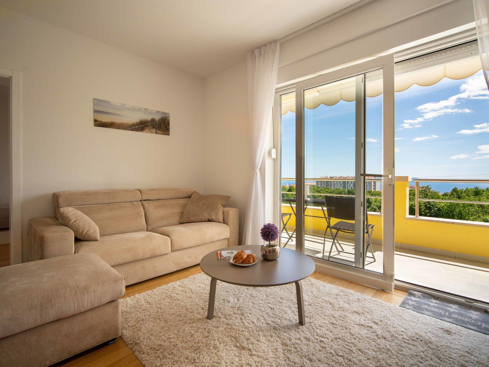 2-Zimmer-Wohnung 60 m2 im 1. Stock, Südlage. Schön und modern eingerichtet: Wohn-/Esszimmer mit 1 Doppeldiwanbett (140 cm, Länge 190 cm), Sat-TV und Klimaanlage. Ausgang zum Balkon. 1 Zimmer mit 1 franz. Bett (180 cm, Länge 200 cm), TV. Offene Küche (Backofen, Geschirrspüler, 4 Induktionskochplatten, Wasserkocher, Tiefkühler, elektrische Kaffeemaschine). Dusche/Bidet/WC. Heizung. Balkon 7 m2. Balkonmöbel. Sicht auf das Meer und die Landschaft. Zur Verfügung: Waschmaschine, Safe, Babybett, Haartrockner. Internet (Wireless LAN, gratis). Bitte beachten: eigener Eingang. Heizungist nur im Zeitraum ab 01.09. bis 30.06. (inklusive).