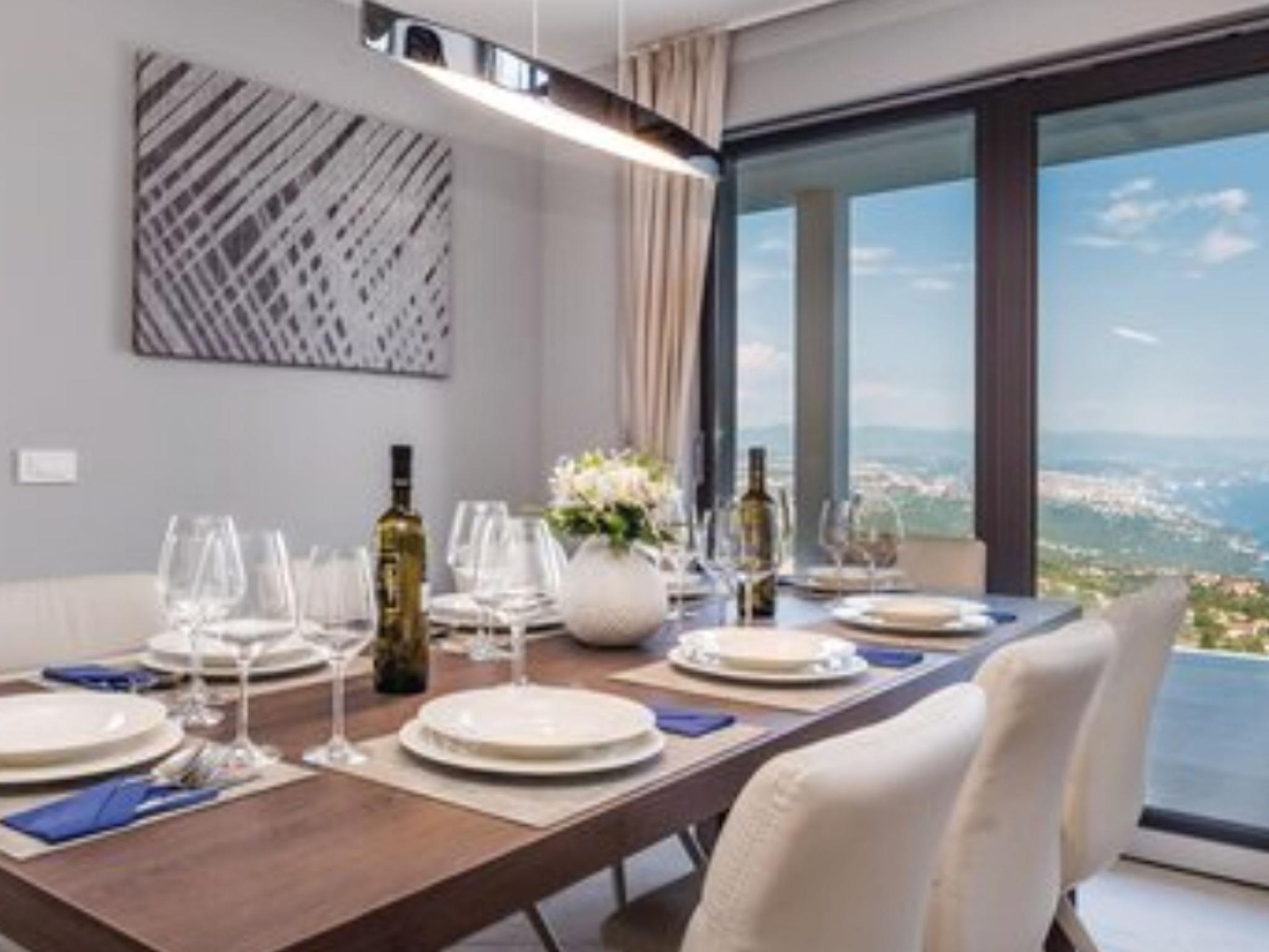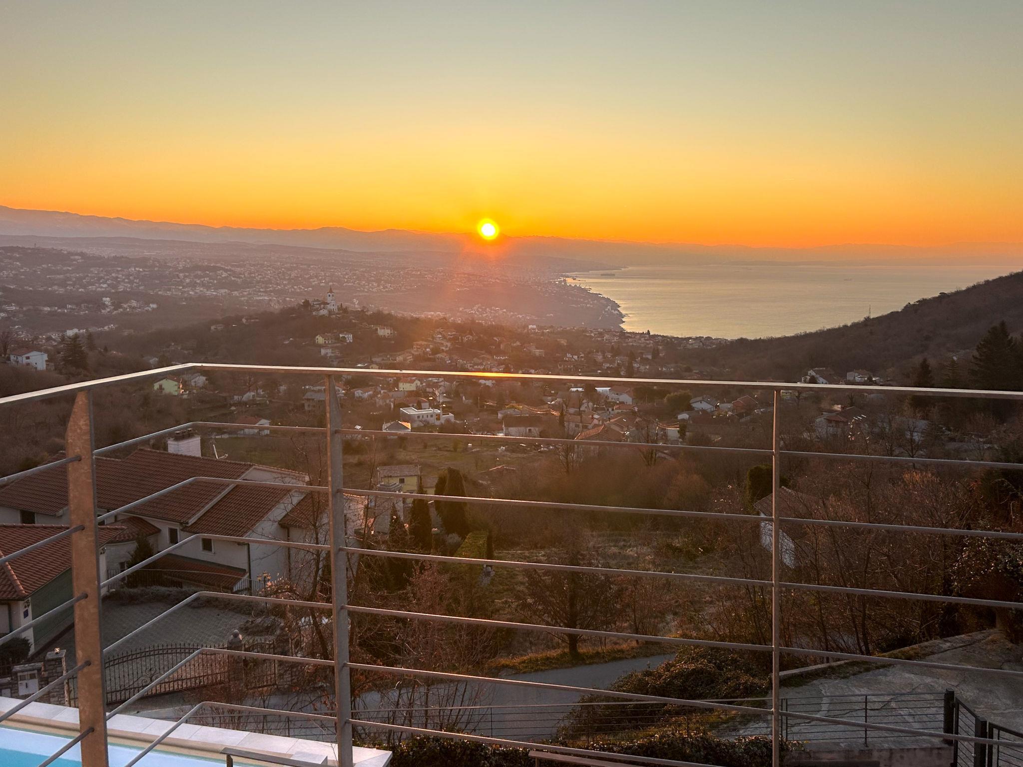 Matulji: Moderne Villa "Nina", auf 2 Stockwerken. Im Weiler Rukavac, 5 km vom Zentrum von Matulji, 6.2 km vom Zentrum von Opatija, ruhige, sonnige, erhöhte Lage, 6 km vom Meer. Zur Alleinbenutzung: Grundstück 1'000 m2 (eingezäunt), Schwimmbad eckig (7 x 4 m, 140 cm tief, saisonale Verfügbarkeit: 01.Jun. - 15.Okt.) mit Innentreppe und Salzelektrolyse-Reinigungssystem. Aussendusche, Sprudelbad, Tischtennis, Terrasse (80 m2), Gartenmöbel, Grill, Poolpflege durch den Besitzer/Gärtner. Im Hause: Internetzugang, Sauna, Ruheraum, Zentralheizung, Klimaanlage, Waschmaschine, Wäschetrockner. Parkplatz (für 4 Autos) beim Haus auf dem Grundstück. Einkaufsgeschäft 900 m, Supermarkt 4 km, Restaurant 1.2 km, Bushaltestelle 900 m, Kieselstrand 6.5 km, betonierter Strand 6.5 km. Jugendgruppen nur auf Anfrage.