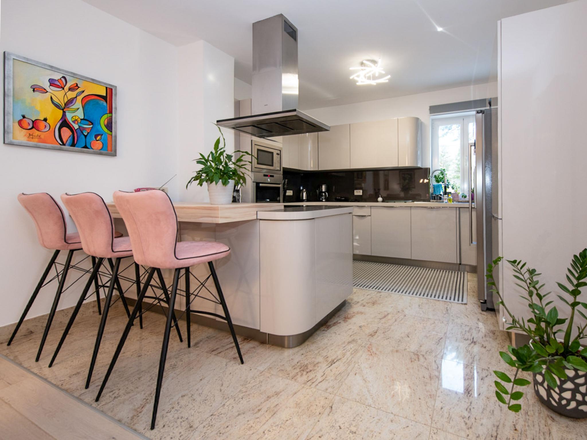 Mihelici 6 km von Opatija: Mehrfamilienhaus "Mihaela". Im Weiler Mihelici, 3.5 km vom Zentrum von Matulji, 5.5 km vom Zentrum von Opatija, ruhige, sonnige, erhöhte Lage im Villenviertel, 5.5 km vom Meer. Zur Mitbenutzung: Grundstück 900 m2 (eingezäunt) mit Rasen und Pflanzen, Schwimmbad eckig (8 x 4 m, 160 cm tief, saisonale Verfügbarkeit: 01.Jun. - 15.Okt.) mit Innentreppe. Aussendusche. Zur Alleinbenutzung: Terrasse (50 m2), Gartenmöbel. Im Hause: Internetzugang, Zentralheizung, Klimaanlage. Parkplatz (für 4 Autos) beim Haus auf dem Grundstück. Einkaufsgeschäft 800 m, Supermarkt 3 km, Restaurant 800 m, Bar 750 m, Bushaltestelle 700 m, Kieselstrand 5.5 km, betonierter Strand 5.5 km. Jugendgruppen nur auf Anfrage.