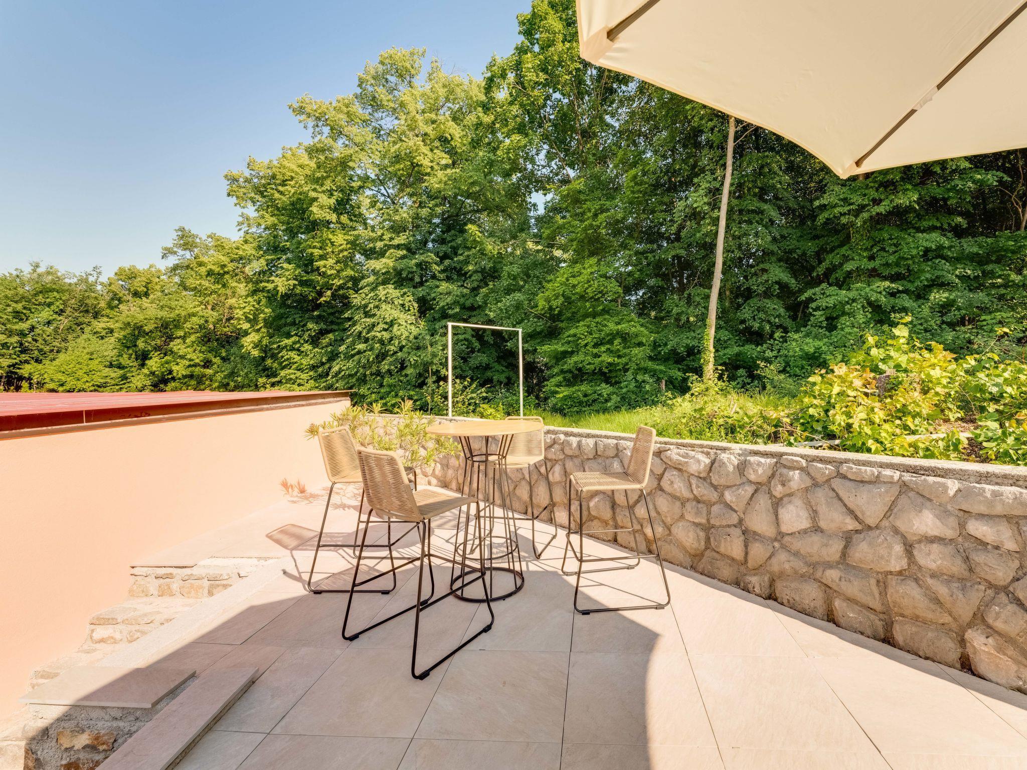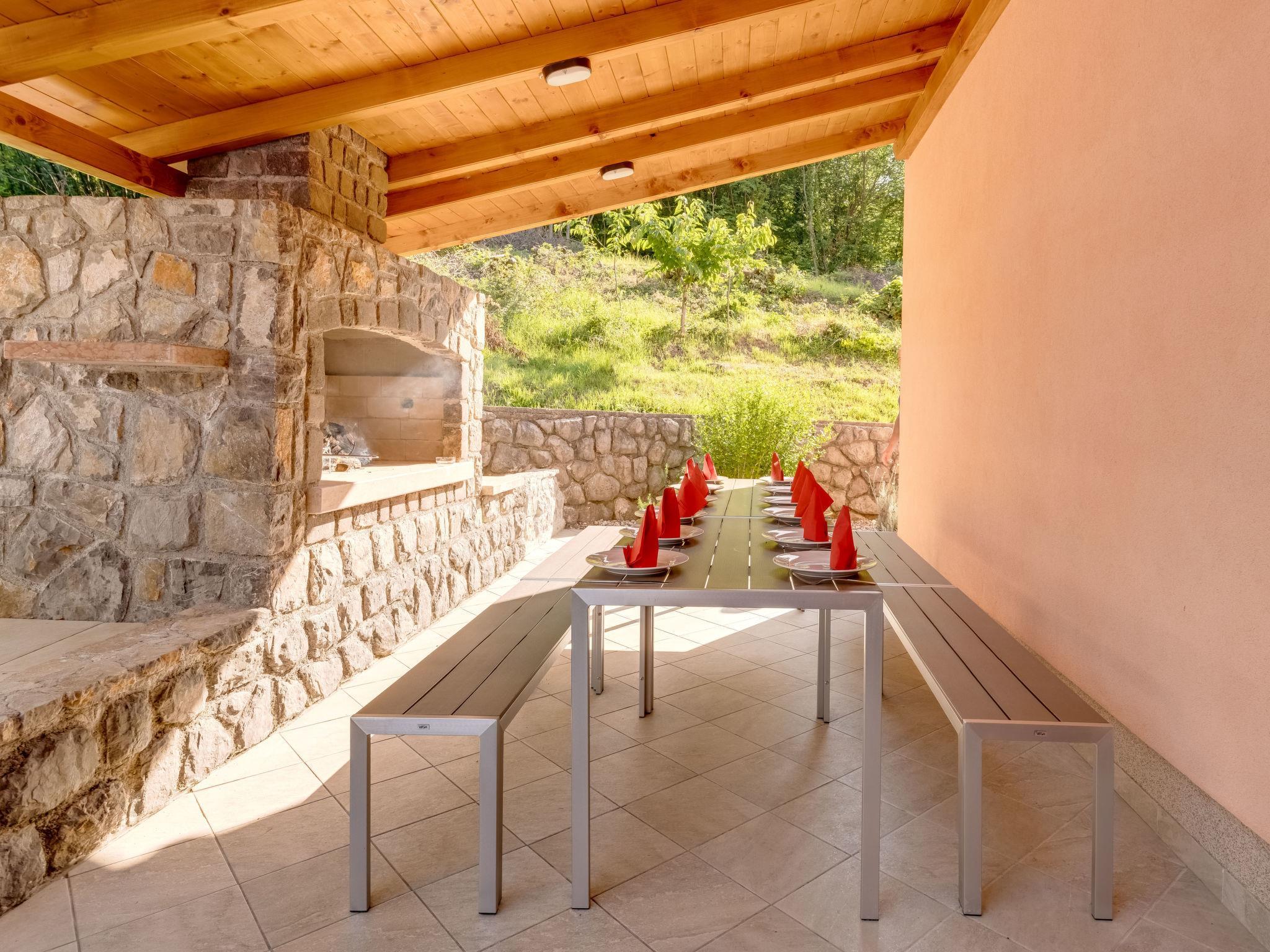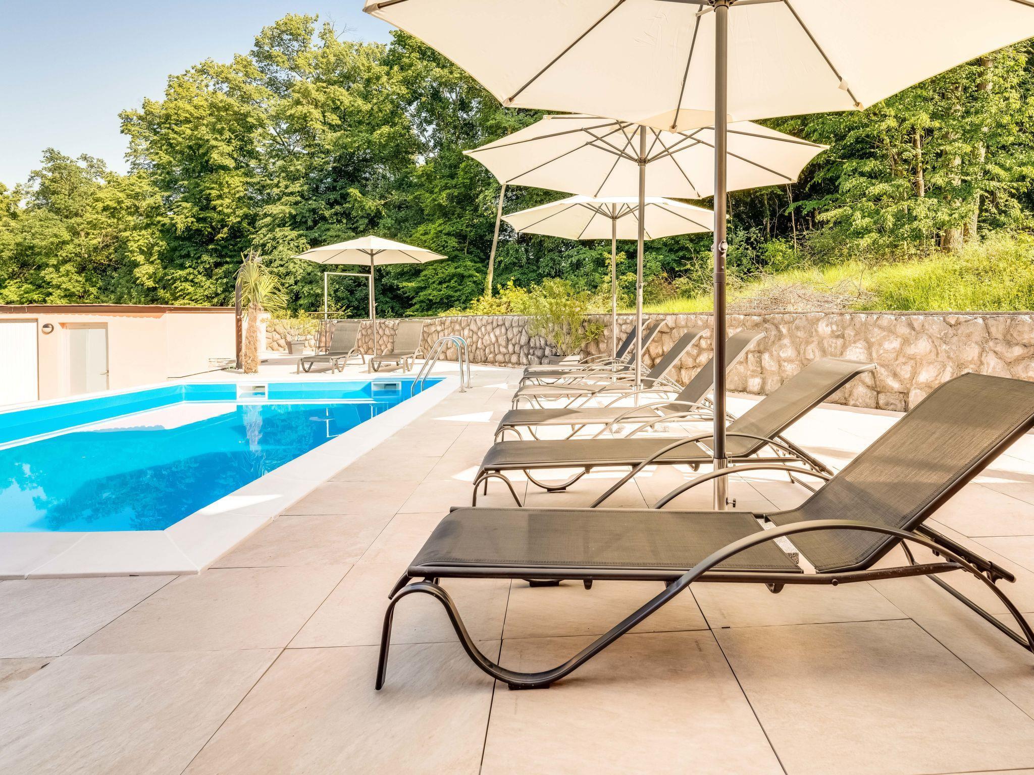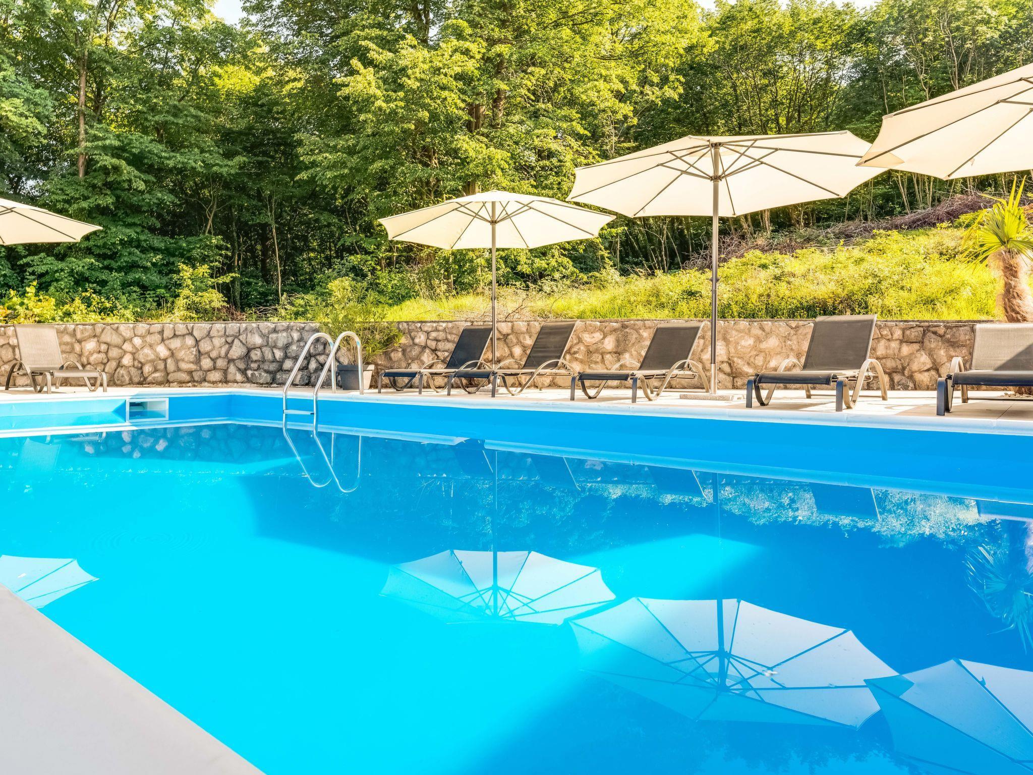 Mihelici 6 km von Opatija: Zweifamilienhaus "Matej", auf 2 Stockwerken. Im Weiler Mihelici, 3.5 km vom Zentrum von Matulji, 5.5 km vom Zentrum von Opatija, ruhige, sonnige, erhöhte Lage im Villenviertel, 5.5 km vom Meer. Zur Alleinbenutzung: Grundstück 700 m2 (eingezäunt) mit Rasen und Blumen, Schwimmbad eckig, beheizt (7 x 4 m, 150 cm tief, saisonale Verfügbarkeit: 15.Mai. - 15.Okt.) mit Innentreppe. Aussendusche, Poolhaus, Terrasse, Gartenmöbel, Grill, Feuerstelle. Im Hause: Internetzugang, Sprudelbad (alles inkl.), Tischfussball, Zentralheizung, Klimaanlage. Parkplatz (für 3 Autos) beim Haus auf dem Grundstück. Einkaufsgeschäft 800 m, Supermarkt 3 km, Restaurant 800 m, Bar 750 m, Bushaltestelle 700 m, Kieselstrand 5.5 km, betonierter Strand 5.5 km. Jugendgruppen nur auf Anfrage.