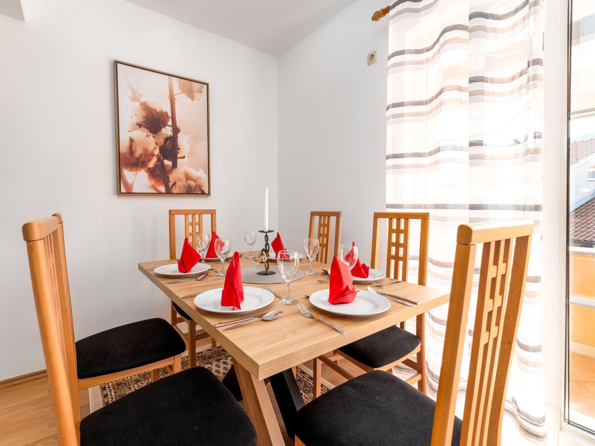 4-Zimmer-Wohnung 90 m2, im Obergeschoss. Wohn-/Esszimmer mit 1 Diwanbett (135 cm, Länge 200 cm), Kabel-TV (Flachbildschirm), Klimaanlage. Ausgang zum Balkon. 1 Zimmer mit 1 franz. Bett (2 x 90 cm, Länge 200 cm). 2 Zimmer, jedes Zimmer mit 1 franz. Bett (120 cm, Länge 200 cm). Offene Küche (Backofen, 4 Induktionskochplatten, Toaster, Wasserkocher, elektrische Kaffeemaschine). Dusche/WC. E-Heizung, Klimaanlage. Balkon 6 m2. Balkonmöbel, Liegestühle (4). Sicht auf die Landschaft. Zur Verfügung: Internet (WLAN, gratis). Parkplatz (1 Auto), Garage. Bitte beachten: Nichtraucher-Unterkunft.