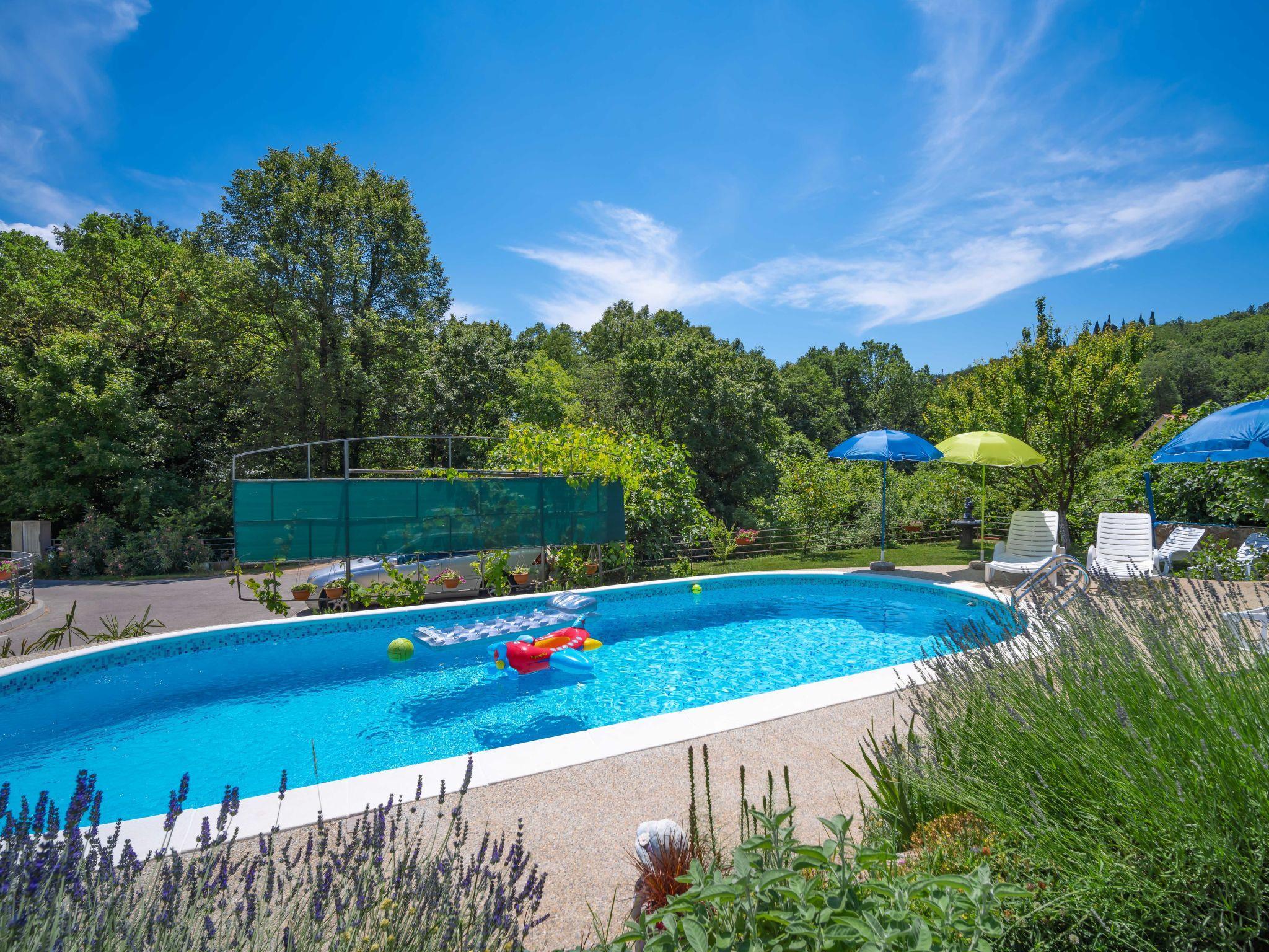 Doppelhaus "Zorica", auf 2 Stockwerken. Oberhalb von Opatija, im Weiler Mihelici, 1.7 km vom Zentrum von Matulji, 5 km vom Zentrum von Opatija, ruhige, sonnige Lage, 3.5 km vom Meer, 3.5 km vom Strand, in einer Sackgasse, im Grünen. Zur Alleinbenutzung: Grundstück 1'300 m2 mit Rasen 200 m2 Pflanzen, Schwimmbad (32 m2, 140 cm tief, saisonale Verfügbarkeit: 20.Apr. - 13.Okt.). Aussendusche, Terrasse (50 m2), Gartenmöbel, Grill. Im Hause: Internetzugang, Waschmaschine, Wäschetrockner. Parkplatz (für 3 Autos) beim Haus auf dem Grundstück. Einkaufsgeschäft 1.7 km, Supermarkt 1.7 km, Restaurant 200 m, Bushaltestelle 350 m, Kieselstrand 3.5 km, betonierter Strand 3.5 km. Das veranstalten von Feiern ist nicht gestattet.