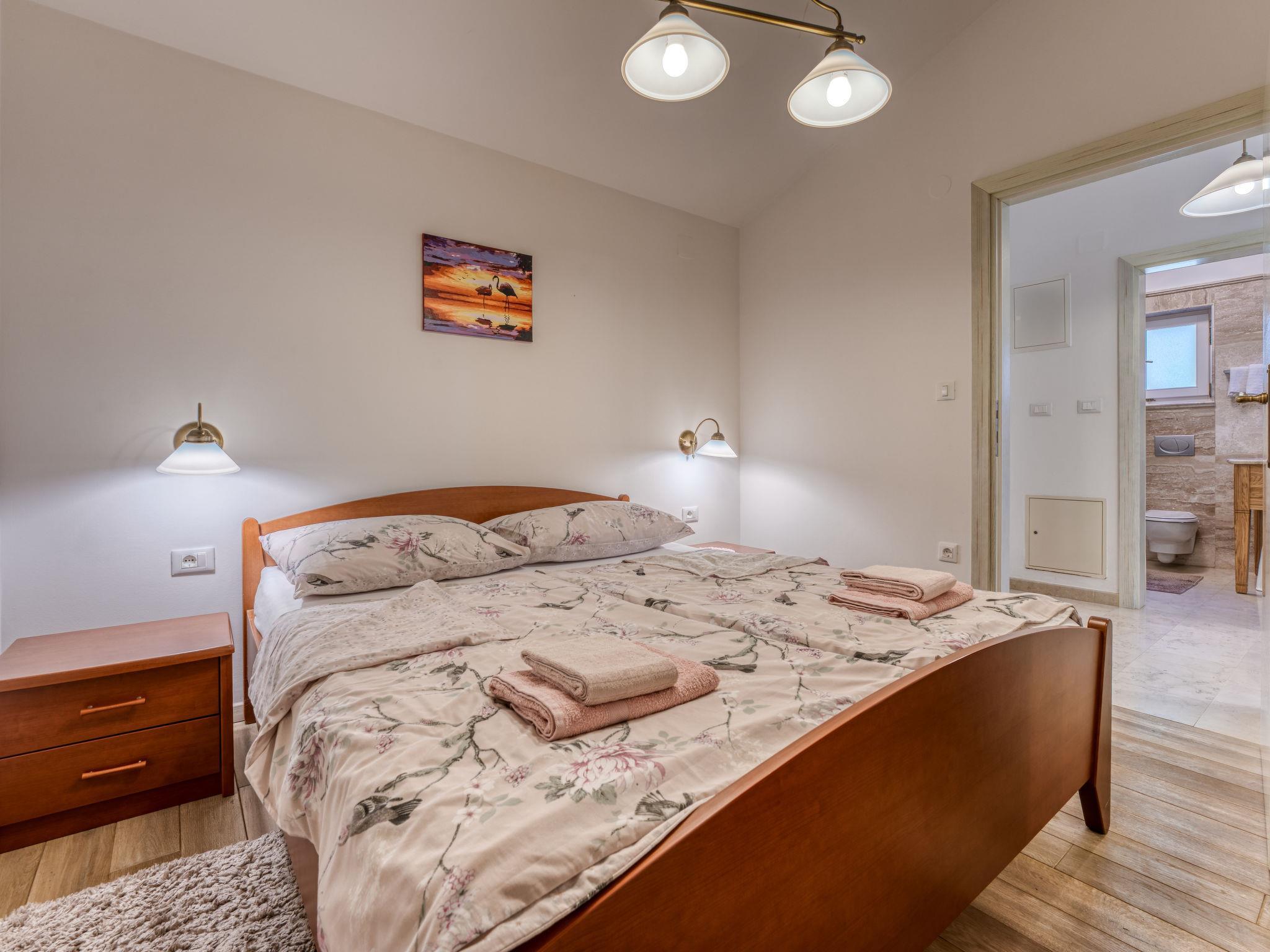 2-Zimmer-Haus 57 m2, Südostlage. Wohn-/Esszimmer mit 1 Doppeldiwanbett (160 cm, Länge 190 cm), Sat-TV (Flachbildschirm), Klimaanlage. Ausgang zur Terrasse. 1 Zimmer mit 1 franz. Bett (160 cm, Länge 200 cm). Offene Küche (4 Kochplatten, Backofen, Geschirrspüler, elektrische Kaffeemaschine). Dusche/WC. Heizung (extra). Terrasse 10 m2, überdacht, Rasen 30 m2. Terrassenmöbel, Liegestühle. Zur Verfügung: Waschmaschine. Internet (Wireless LAN, gratis). Traditionelle istrische Taverne, zur gemeinsamen Nutzung.