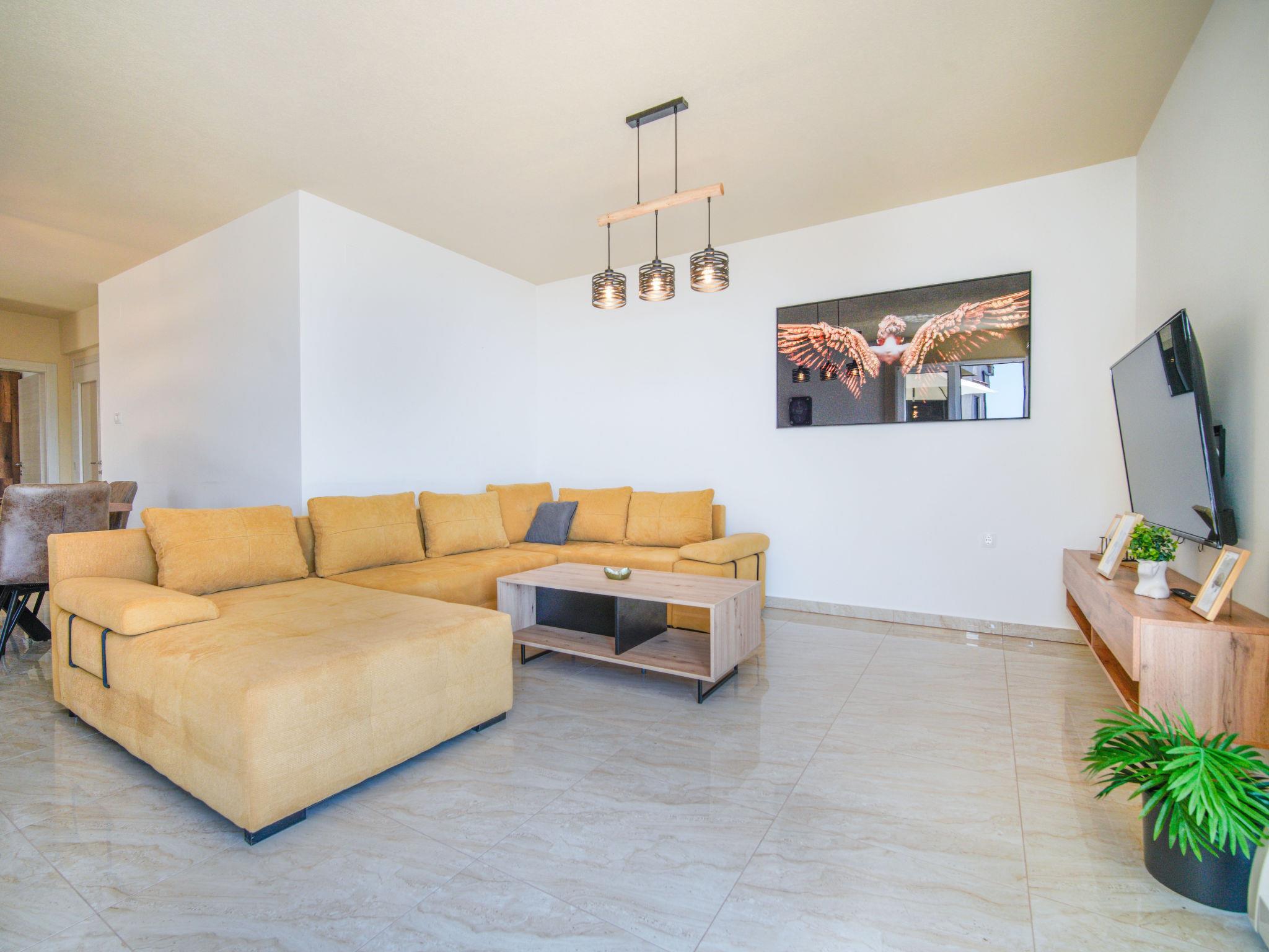 5-Zimmer-Wohnung 130 m2 auf 2 Stockwerken im 3. Stock. Geräumig: Wohn-/Esszimmer mit Sat-TV und Klimaanlage. Ausgang zur Terrasse. 1 Zimmer mit 1 franz. Bett (160 cm, Länge 200 cm), Sat-TV. Ausgang zum Balkon. Offene Küche (Backofen, Geschirrspüler, 4 Induktionskochplatten, Wasserkocher, Tiefkühler). Ausgang zum Balkon. Dusche/WC. Obergeschoss: offene Galerie mit Sat-TV und Klimaanlage. 1 abgeschrägtes Zimmer, Deckenhöhe 80 - 240 cm mit Dachfenster mit 1 Bett (80 cm, Länge 200 cm). 1 abgeschrägtes Zimmer, Deckenhöhe 80 - 240 cm mit Dachfenster mit 2 Betten (90 cm, Länge 200 cm). Dusche/Bidet/WC. Keine Heizmöglichkeit. Balkon 10 m2, Terrasse 18 m2. Terrassenmöbel. Schöne Sicht auf das Meer und die Landschaft. Zur Verfügung: Waschmaschine, Wäschetrockner, Safe, Kinderhochstuhl, Babybett, Haartrockner. Internet (WLAN, gratis).