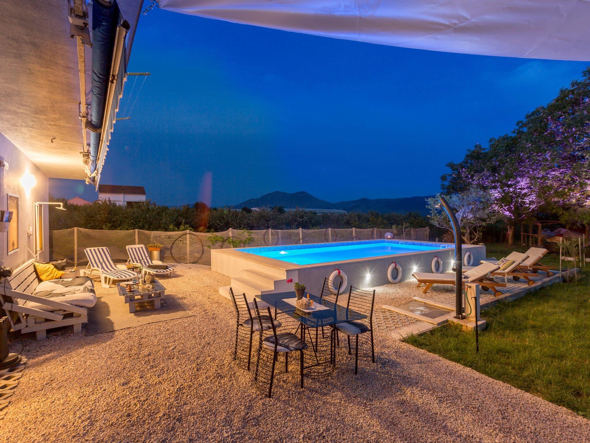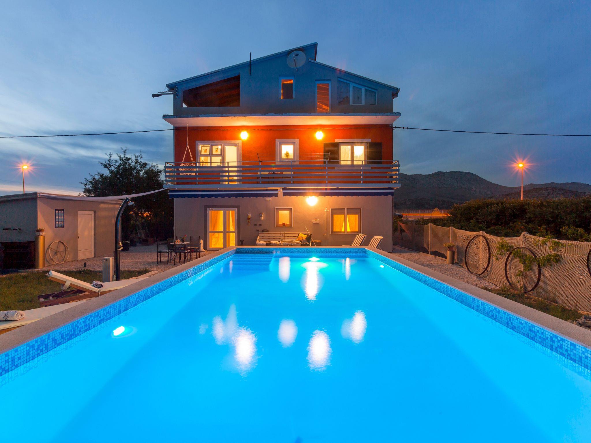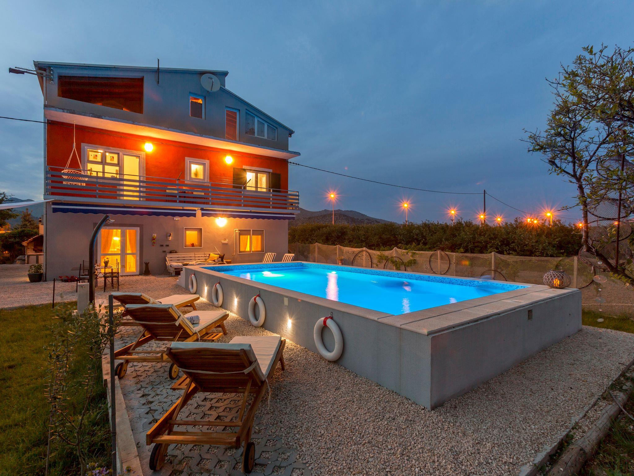 Haus bietet Platz für 7 Gäste. Die Betten sind in Schlafzimmern, die es 4 gibt, innerhalb einer Gesamtfläche von 128m2, angeordnet. Die Gäste haben eine eigene Terrasse zur Verfügung, auf der sie in warmen Sommernächten genießen können. Für vollen Genuss und Entspannung gibt es einen privaten Grill für Gäste dieser Unterkunft. Während ihres Aufenthalts können sich Gäste im privaten Schwimmbad entspannen. In der Unterkunftseinheit besteht die Möglichkeit des Mitbringens von Haustieren, und die Dienstleistung ist im Preis der Unterkunft enthalten. IM PREIS INBEGRIFFEN: Kurtaxe, Endreinigung, Klimatisierung, Pool, Parkplatz, Internet, Haustiere, Kinderbett, Bügeleisen, Bügelbrett, Föhn. VERBINDLICHE ZUSÄTZLICHE KOSTEN: Aufzahlung für Kurzaufenthalte (prozentualer Zuschlag pro Nächtigungsanzahl: 30% - 1, 20% - 2, 10% - 3). Die Verfügbarkeit zusätzlicher Dienstleistungen in Ihrem reservierten Termin und die Preise derselben (falls nicht aufgeführt) müssen im Voraus überprüft werden. Zusätzliche Dienstleistungen die in der Zahlungsaufforderung nicht aufgeführt sind werden direkt beim Vermieter bezahlt, angenommen der Gast nutzt auch diese. Ermäßigung auf den Grundpreis: Gratistag 14=13 (bei einem Aufenthalt von 14 Tagen oder mehr erhalten Sie einen Gratistag für den Aufenthalt bis 31.12.26).