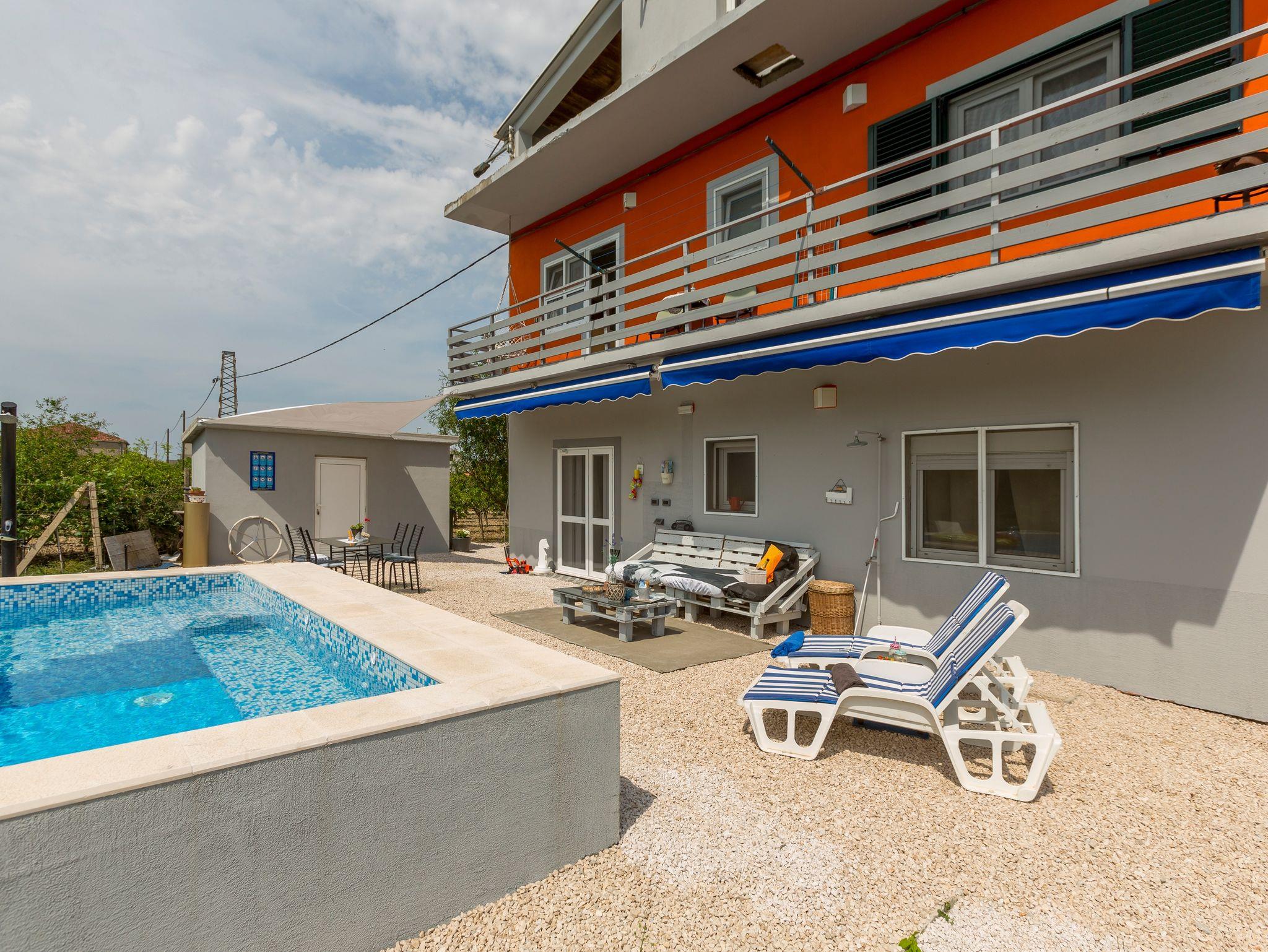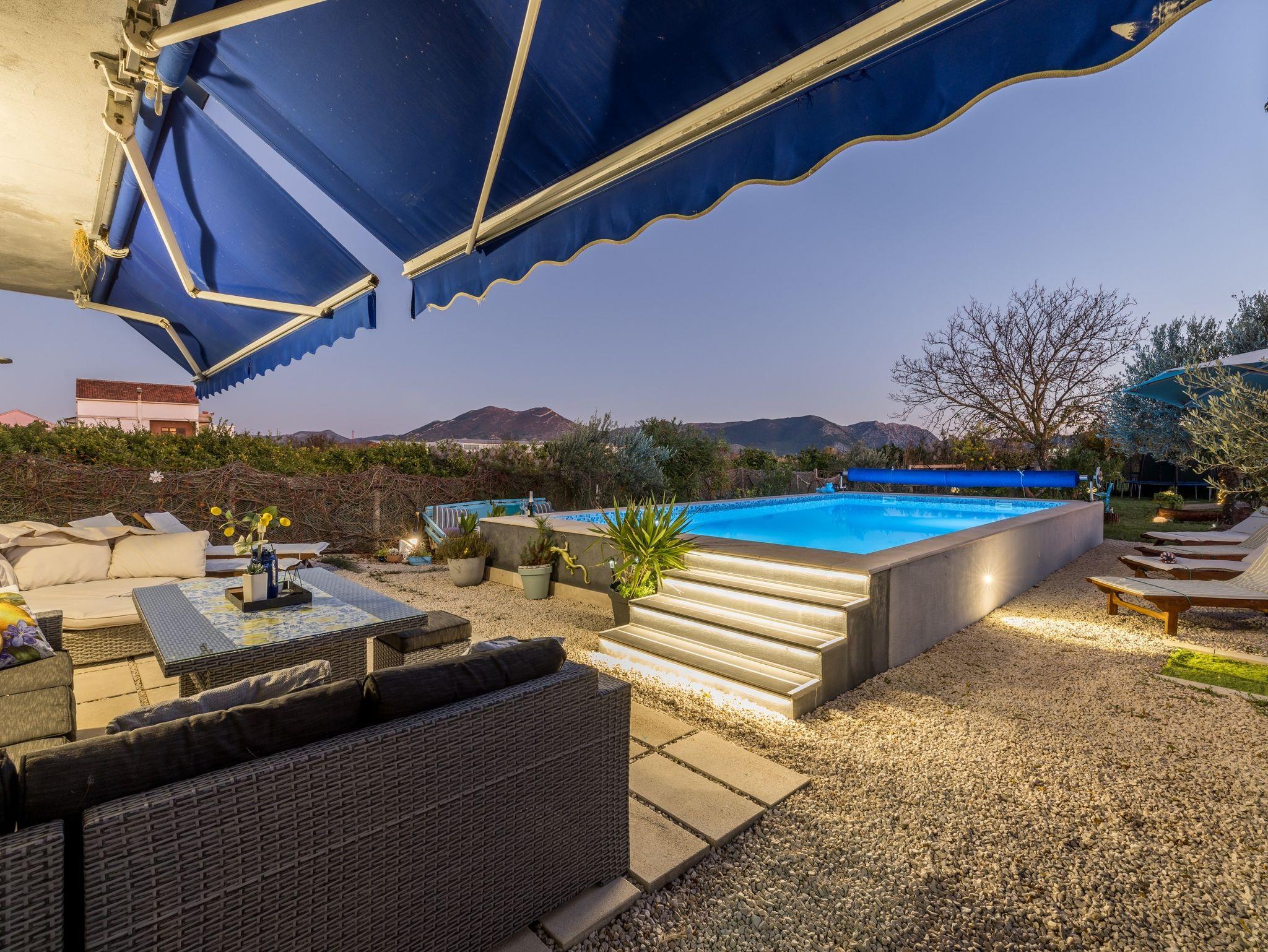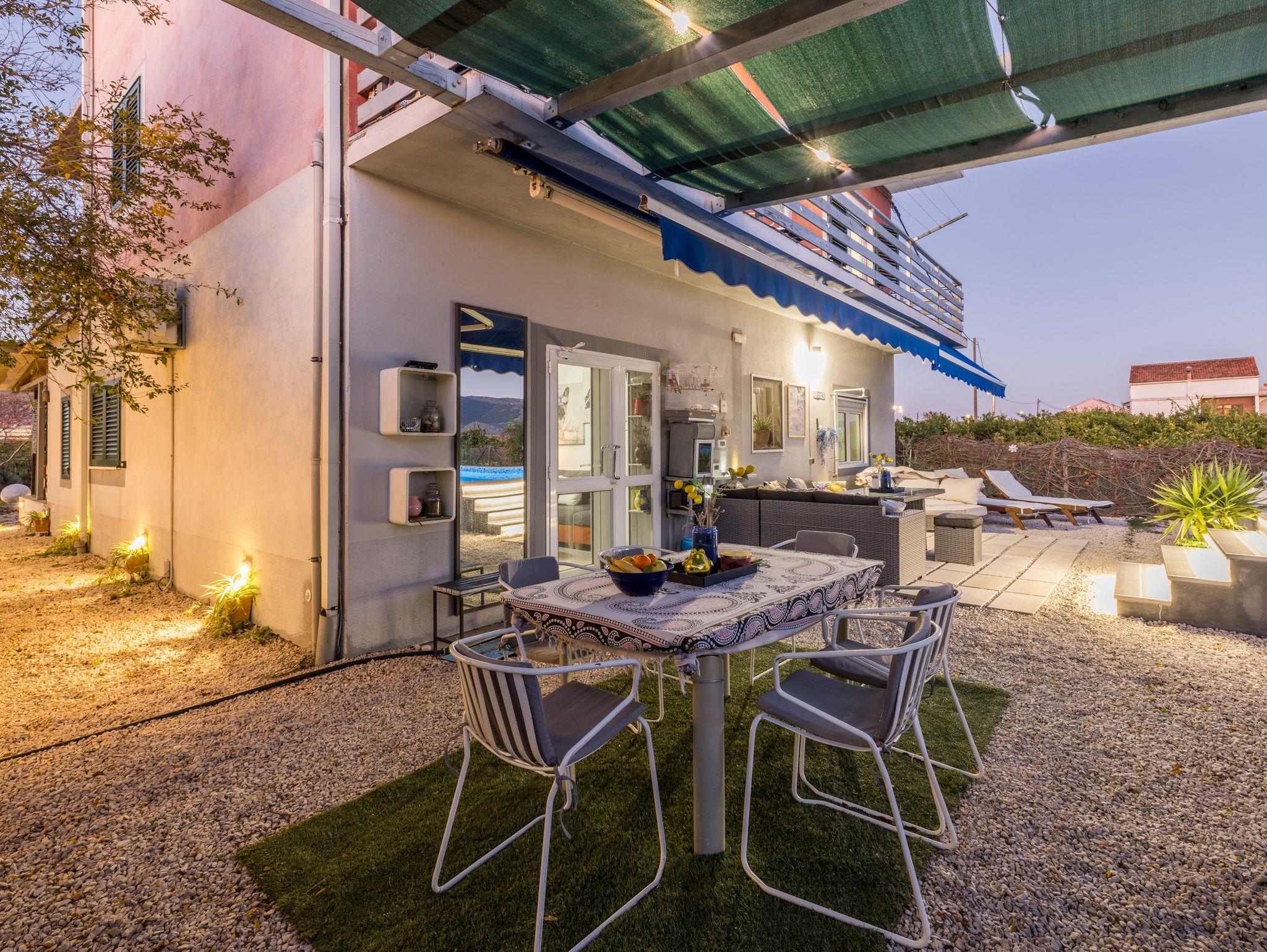 Haus bietet Platz für 7 Gäste. Die Betten sind in Schlafzimmern, die es 4 gibt, innerhalb einer Gesamtfläche von 128m2, angeordnet. Die Gäste haben eine eigene Terrasse zur Verfügung, auf der sie in warmen Sommernächten genießen können. Für vollen Genuss und Entspannung gibt es einen privaten Grill für Gäste dieser Unterkunft. Während ihres Aufenthalts können sich Gäste im privaten Schwimmbad entspannen. In der Unterkunftseinheit besteht die Möglichkeit des Mitbringens von Haustieren, und die Dienstleistung ist im Preis der Unterkunft enthalten. IM PREIS INBEGRIFFEN: Kurtaxe, Endreinigung, Klimatisierung, Pool, Parkplatz, Internet, Haustiere, Kinderbett, Bügeleisen, Bügelbrett, Föhn. VERBINDLICHE ZUSÄTZLICHE KOSTEN: Aufzahlung für Kurzaufenthalte (prozentualer Zuschlag pro Nächtigungsanzahl: 30% - 1, 20% - 2, 10% - 3). Die Verfügbarkeit zusätzlicher Dienstleistungen in Ihrem reservierten Termin und die Preise derselben (falls nicht aufgeführt) müssen im Voraus überprüft werden. Zusätzliche Dienstleistungen die in der Zahlungsaufforderung nicht aufgeführt sind werden direkt beim Vermieter bezahlt, angenommen der Gast nutzt auch diese. Ermäßigung auf den Grundpreis: Gratistag 14=13 (bei einem Aufenthalt von 14 Tagen oder mehr erhalten Sie einen Gratistag für den Aufenthalt bis 31.12.26).