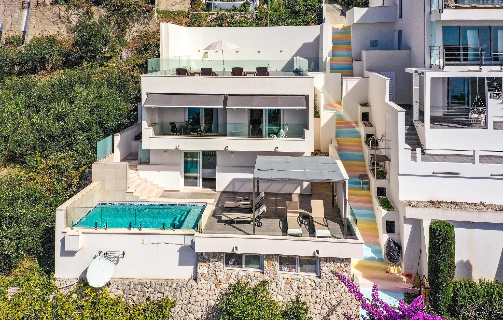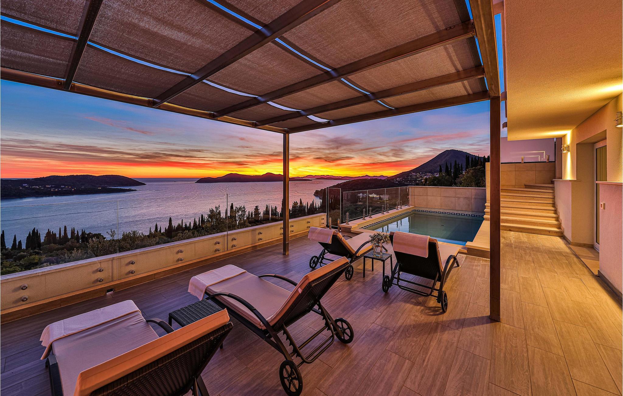 Die zweistöckige Villa verfügt über zwei Schlafzimmer und eine sonnige Dachterrasse - Bereiche, in denen Sie es sich komplett gemütlich machen können. Von der geräumigen Terrasse können Sie einen schönen Panorama-Meerblick genießen. Diesen haben Sie auch von Ihrem eigenen Swimmingpool, auch die Insel Kolocep liegt vor Ihnen.
