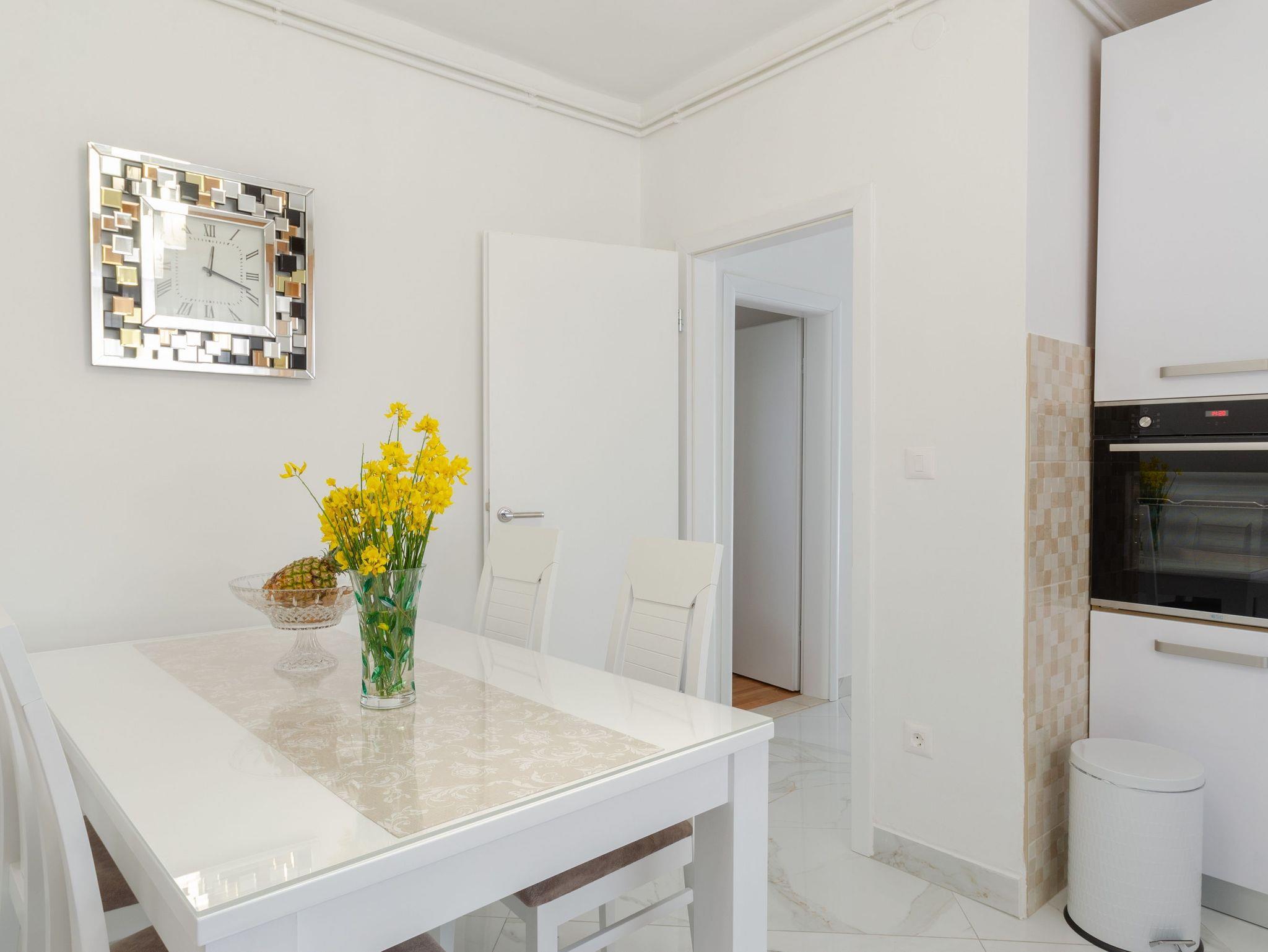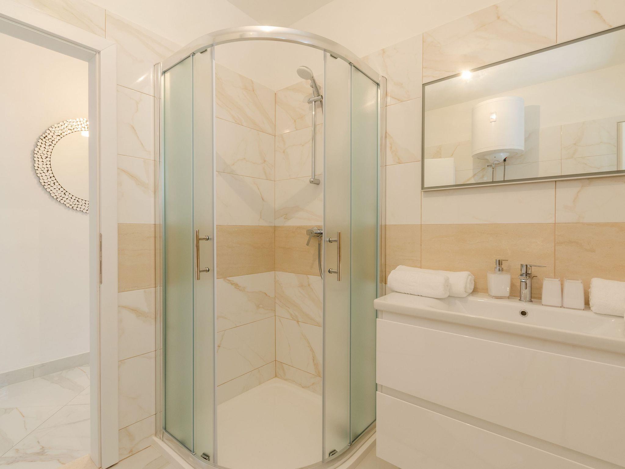 Ferienwohnung bietet Platz für 4 Gäste. Die Betten sind in Schlafzimmern, die es 2 gibt, innerhalb einer Gesamtfläche von 59m2, angeordnet. Die Gäste haben eine eigene Terrasse zur Verfügung, auf der sie in warmen Sommernächten genießen können. Das Apartment bietet Meerblick. Es ist erlaubt, Speisen auf dem Gemeinschafts-Grill vorzubereiten. IM PREIS INBEGRIFFEN: Kurtaxe, Endreinigung, Klimatisierung, Parkplatz, Internet. Die Verfügbarkeit zusätzlicher Dienstleistungen in Ihrem reservierten Termin und die Preise derselben (falls nicht aufgeführt) müssen im Voraus überprüft werden. Zusätzliche Dienstleistungen die in der Zahlungsaufforderung nicht aufgeführt sind werden direkt beim Vermieter bezahlt, angenommen der Gast nutzt auch diese.