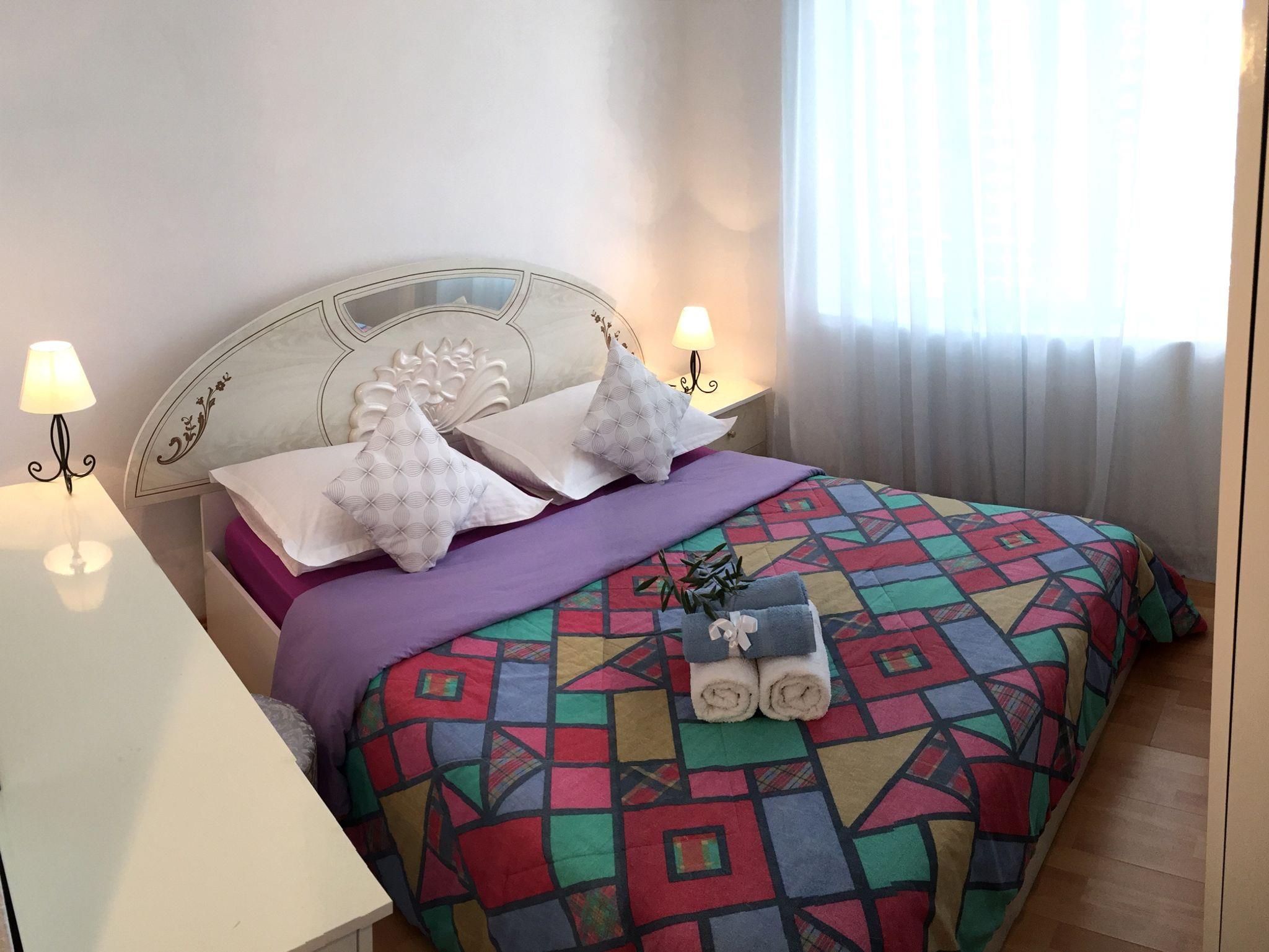 Ferienwohnung bietet Platz für 4 Gäste. Die Betten sind in Schlafzimmern, die es 2 gibt, innerhalb einer Gesamtfläche von 84m2, angeordnet. Die Gäste haben eine eigene Terrasse zur Verfügung, auf der sie in warmen Sommernächten genießen können. Für vollen Genuss und Entspannung gibt es einen privaten Grill für Gäste dieser Unterkunft. IM PREIS INBEGRIFFEN: Kurtaxe, Endreinigung, Klimatisierung, Parkplatz, Internet, Bügeleisen, Bügelbrett, Föhn. VERBINDLICHE ZUSÄTZLICHE KOSTEN: Aufzahlung für Kurzaufenthalte (prozentualer Zuschlag pro Nächtigungsanzahl: 30% - 1, 20% - 2, 10% - 3). Die Verfügbarkeit zusätzlicher Dienstleistungen in Ihrem reservierten Termin und die Preise derselben (falls nicht aufgeführt) müssen im Voraus überprüft werden. Zusätzliche Dienstleistungen die in der Zahlungsaufforderung nicht aufgeführt sind werden direkt beim Vermieter bezahlt, angenommen der Gast nutzt auch diese.
