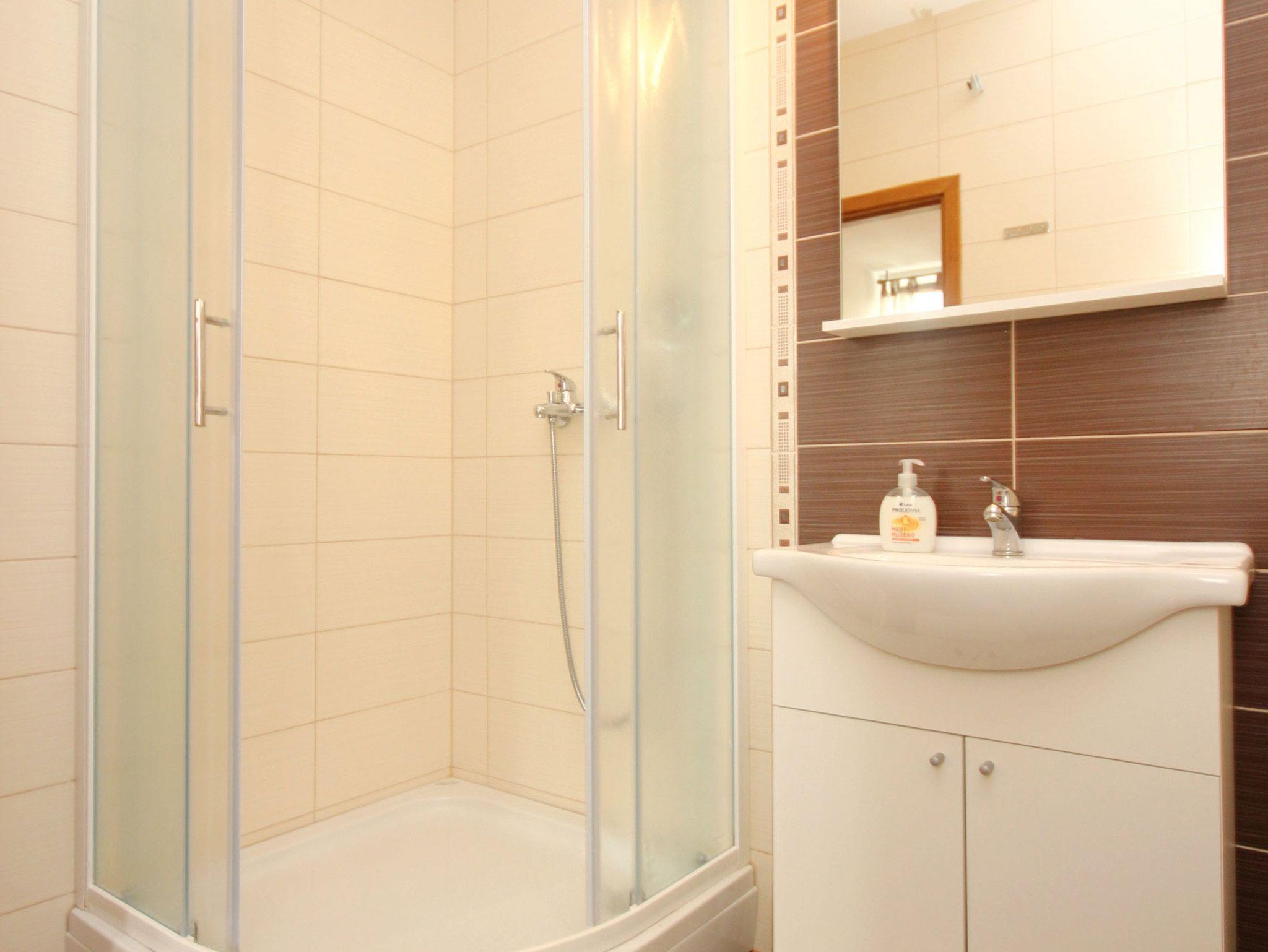 Ferienwohnung bietet Platz für 6 Gäste. Die Betten sind in Schlafzimmern, die es 2 gibt, und in Wohnzimmer, innerhalb einer Gesamtfläche von 62m2, angeordnet. Die Gäste haben eine eigene Terrasse zur Verfügung, auf der sie in warmen Sommernächten genießen können. Das Apartment bietet Meerblick. Es ist erlaubt, Speisen auf dem Gemeinschafts-Grill vorzubereiten. Durch die Terrasse der gebuchten Unterkunftseinheit gehen auch andere Gäste oder Vermieter. Unterkunftseinheit hat Räume, die von dem Rest der Einheit abgetrennt werden. IM PREIS INBEGRIFFEN: Kurtaxe, Endreinigung, Klimatisierung, Parkplatz, Internet, Kinderbett, Bügeleisen, Bügelbrett, Föhn. Die Verfügbarkeit zusätzlicher Dienstleistungen in Ihrem reservierten Termin und die Preise derselben (falls nicht aufgeführt) müssen im Voraus überprüft werden. Zusätzliche Dienstleistungen die in der Zahlungsaufforderung nicht aufgeführt sind werden direkt beim Vermieter bezahlt, angenommen der Gast nutzt auch diese.