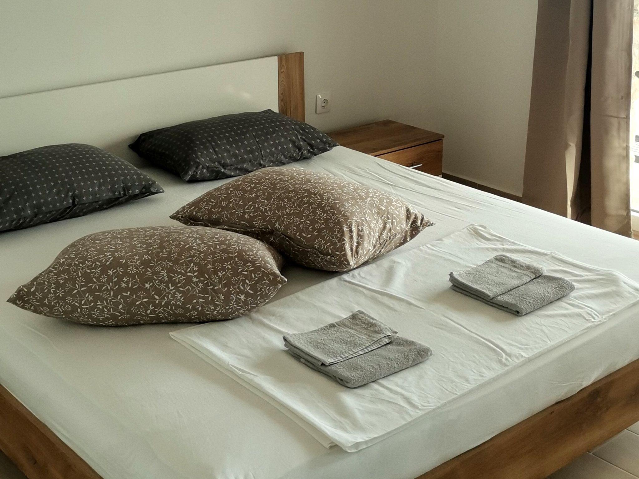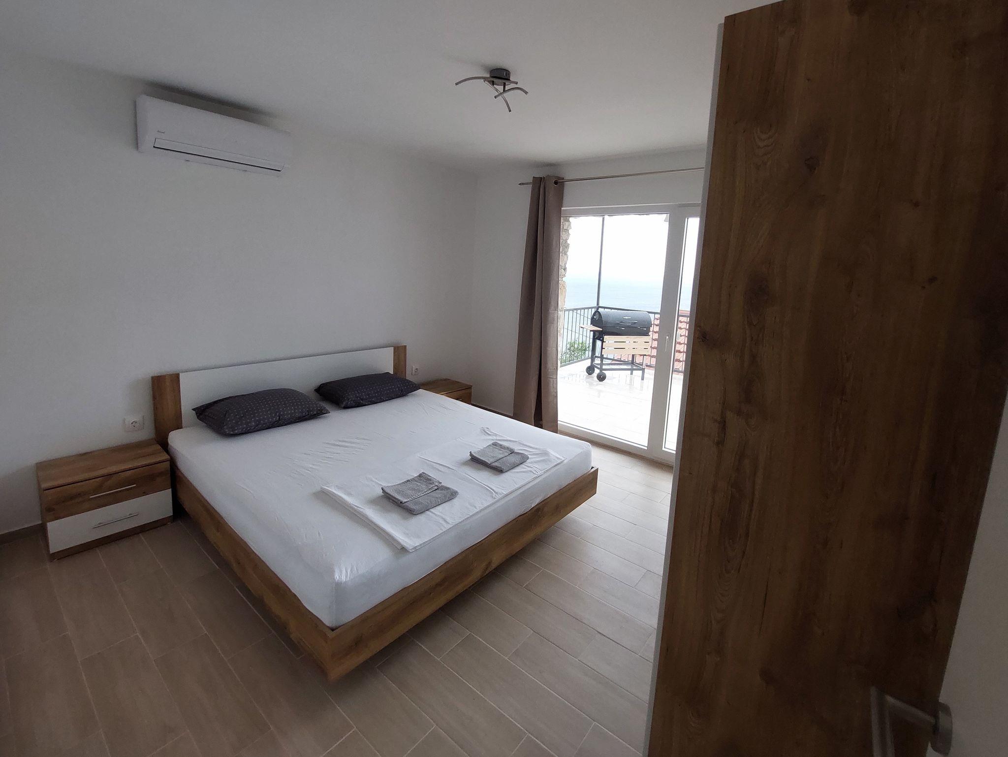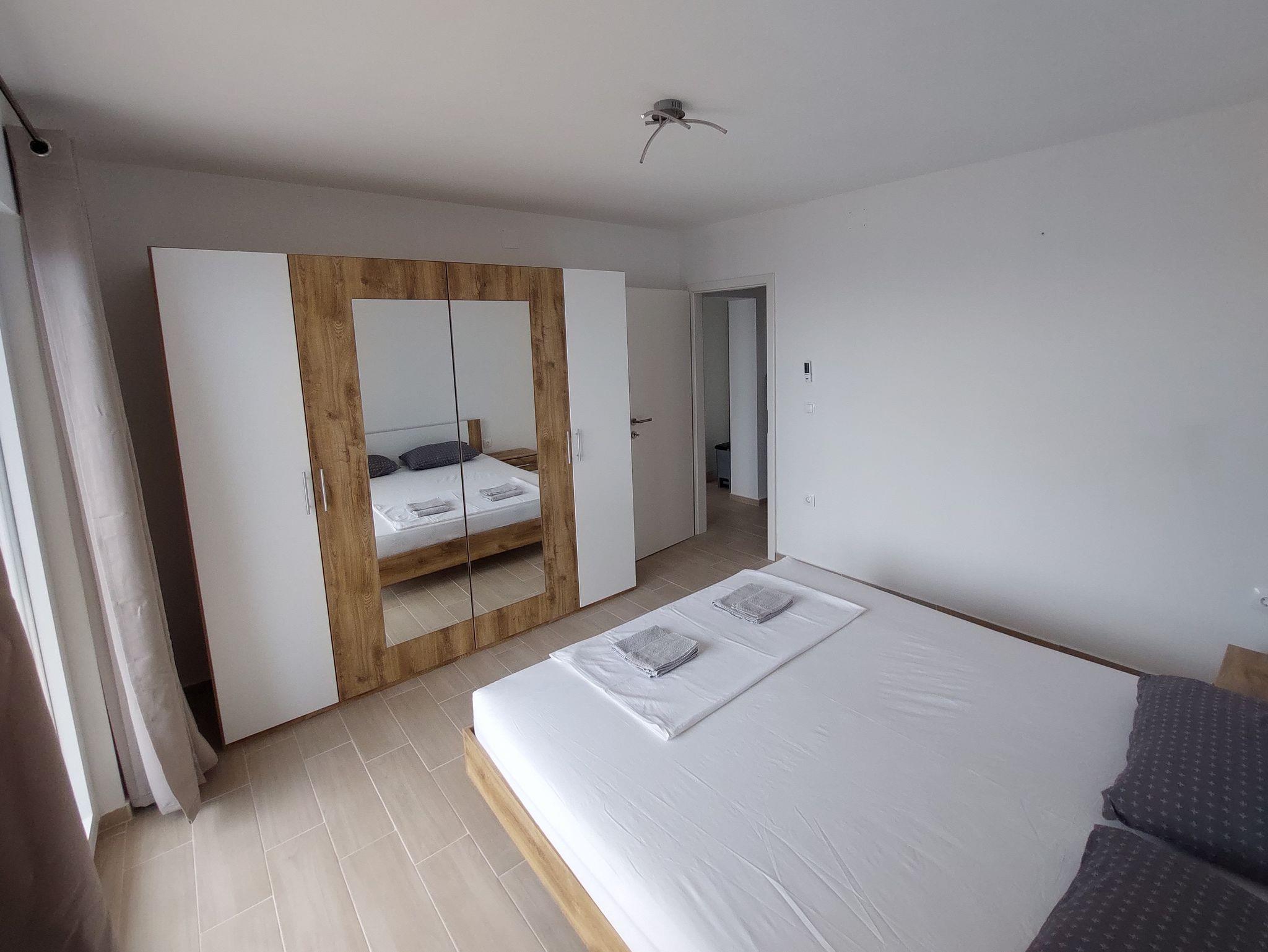 Ferienwohnung bietet Platz für 4 Gäste. Die Betten sind in Schlafzimmern, die es 1 gibt, und in Wohnzimmer, innerhalb einer Gesamtfläche von 48m2, angeordnet. Die Gäste haben eine eigene Terrasse zur Verfügung, auf der sie in warmen Sommernächten genießen können. Das Apartment bietet Meerblick. Es ist erlaubt, Speisen auf dem Gemeinschafts-Grill vorzubereiten. In der Unterkunftseinheit besteht die Möglichkeit des Mitbringens von Haustieren gegen Aufpreis. IM PREIS INBEGRIFFEN: Kurtaxe, Endreinigung, Klimatisierung, Parkplatz, Internet, Bügeleisen, Bügelbrett, Föhn, tragbarer Grill. VERBINDLICHE ZUSÄTZLICHE KOSTEN: Aufzahlung für Kurzaufenthalte (prozentualer Zuschlag pro Nächtigungsanzahl: 30% - 1, 20% - 2, 10% - 3). UNVERBINDLICHE ZUSÄTZLICHE KOSTEN: Haustiere (10,00 € pro Nacht). Die Verfügbarkeit zusätzlicher Dienstleistungen in Ihrem reservierten Termin und die Preise derselben (falls nicht aufgeführt) müssen im Voraus überprüft werden. Zusätzliche Dienstleistungen die in der Zahlungsaufforderung nicht aufgeführt sind werden direkt beim Vermieter bezahlt, angenommen der Gast nutzt auch diese. Ermäßigung auf den Grundpreis: Gratistag 14=13 (bei einem Aufenthalt von 14 Tagen oder mehr erhalten Sie einen Gratistag für den Aufenthalt bis 31.12.26).