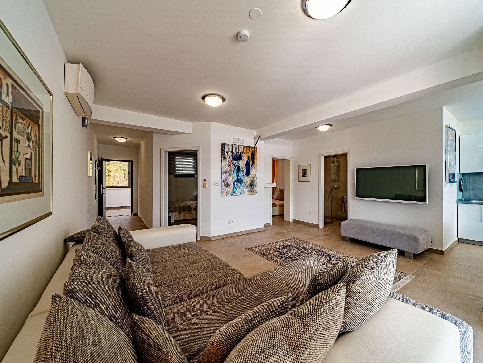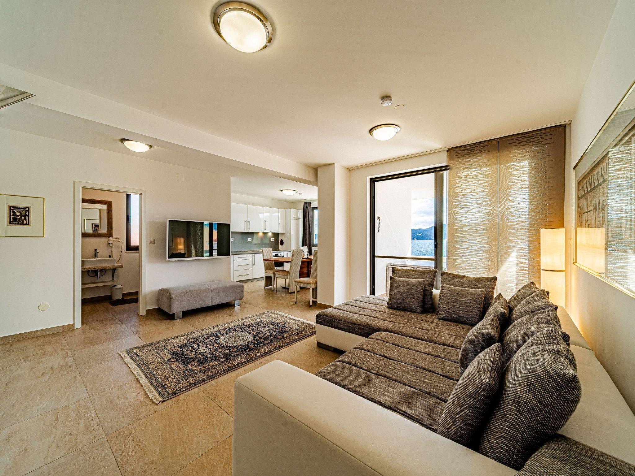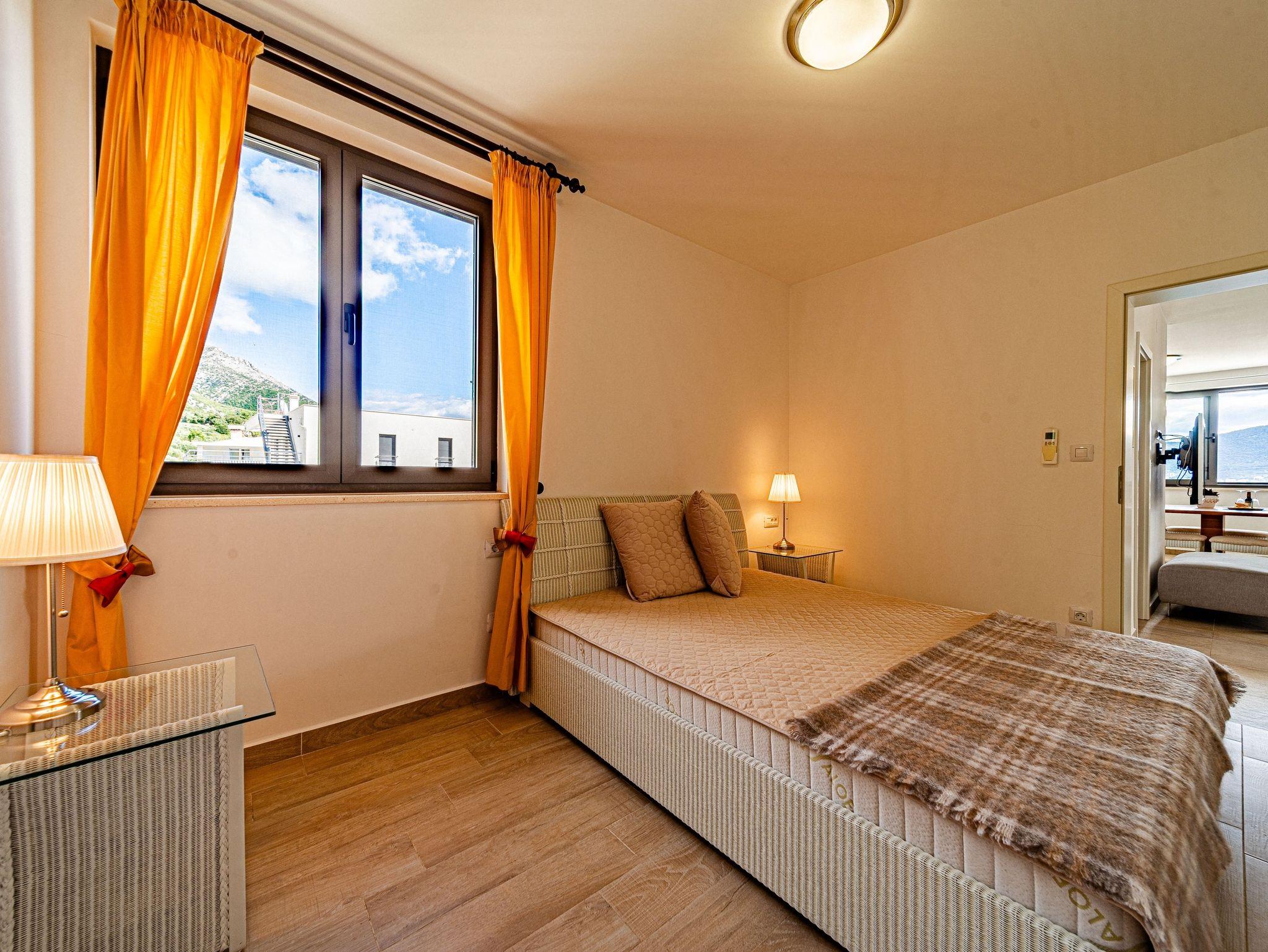 Ferienwohnung bietet Platz für 4 Gäste. Die Betten sind in Schlafzimmern, die es 2 gibt, innerhalb einer Gesamtfläche von 56m2, angeordnet. Die Gäste haben eine eigene Terrasse zur Verfügung, auf der sie in warmen Sommernächten genießen können. Das Apartment bietet Meerblick. Es ist erlaubt, Speisen auf dem Gemeinschafts-Grill vorzubereiten. IM PREIS INBEGRIFFEN: Kurtaxe, Endreinigung, Klimatisierung, Parkplatz, Internet, Wäschewaschen, Fahrrad, Bügeleisen, Bügelbrett, Föhn, tragbarer Grill. Die Verfügbarkeit zusätzlicher Dienstleistungen in Ihrem reservierten Termin und die Preise derselben (falls nicht aufgeführt) müssen im Voraus überprüft werden. Zusätzliche Dienstleistungen die in der Zahlungsaufforderung nicht aufgeführt sind werden direkt beim Vermieter bezahlt, angenommen der Gast nutzt auch diese. Ermäßigung auf den Grundpreis: Gratistag 14=13 (bei einem Aufenthalt von 14 Tagen oder mehr erhalten Sie einen Gratistag für den Aufenthalt bis 31.12.26).
