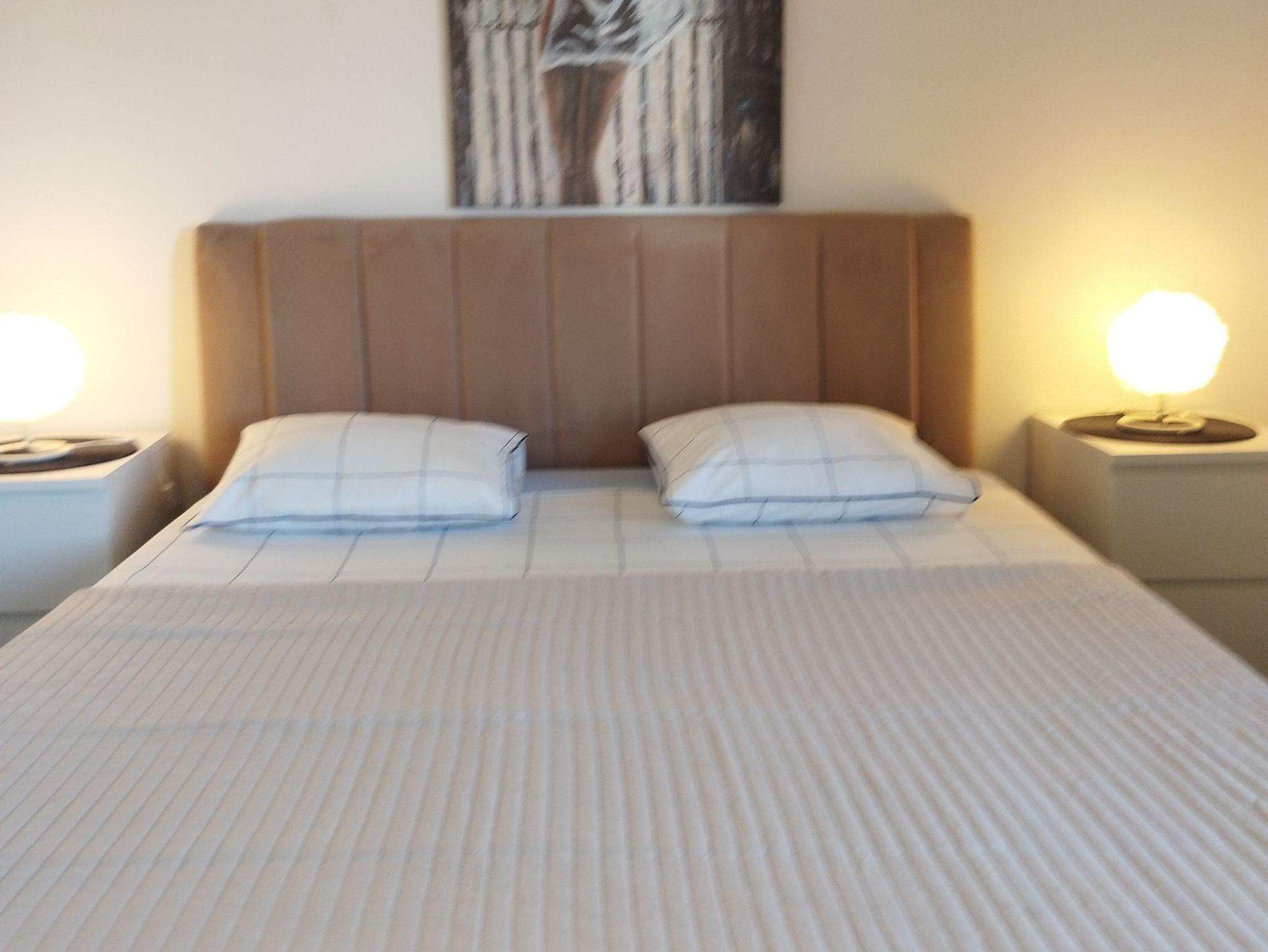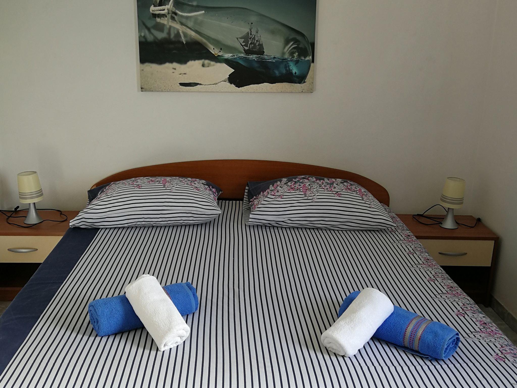 Ferienwohnung bietet Platz für 4 Gäste. Die Betten sind in Schlafzimmern, die es 1 gibt, und in Wohnzimmer, innerhalb einer Gesamtfläche von 39m2, angeordnet. Die Gäste haben einen eigenen Balkon zur Verfügung, auf der sie in warmen Sommernächten genießen können. Das Apartment bietet Meerblick. Es ist erlaubt, Speisen auf dem Gemeinschafts-Grill vorzubereiten. IM PREIS INBEGRIFFEN: Kurtaxe, Endreinigung, Klimatisierung, Parkplatz, Garage, Internet, Wäschewaschen, Bügeleisen, Föhn. VERBINDLICHE ZUSÄTZLICHE KOSTEN: Aufzahlung für Kurzaufenthalte (prozentualer Zuschlag pro Nächtigungsanzahl: 30% - 1, 20% - 2, 10% - 3). Die Verfügbarkeit zusätzlicher Dienstleistungen in Ihrem reservierten Termin und die Preise derselben (falls nicht aufgeführt) müssen im Voraus überprüft werden. Zusätzliche Dienstleistungen die in der Zahlungsaufforderung nicht aufgeführt sind werden direkt beim Vermieter bezahlt, angenommen der Gast nutzt auch diese.