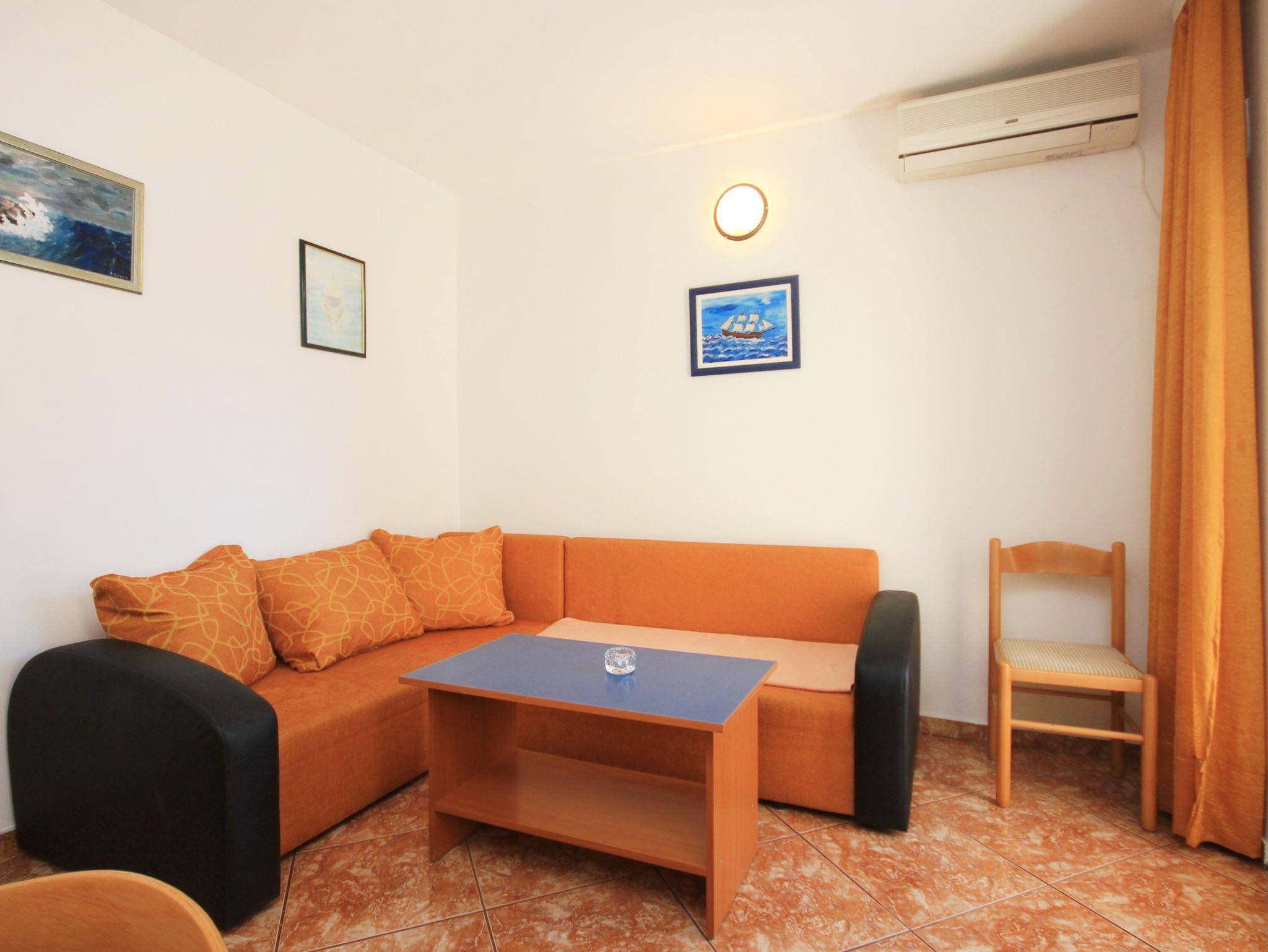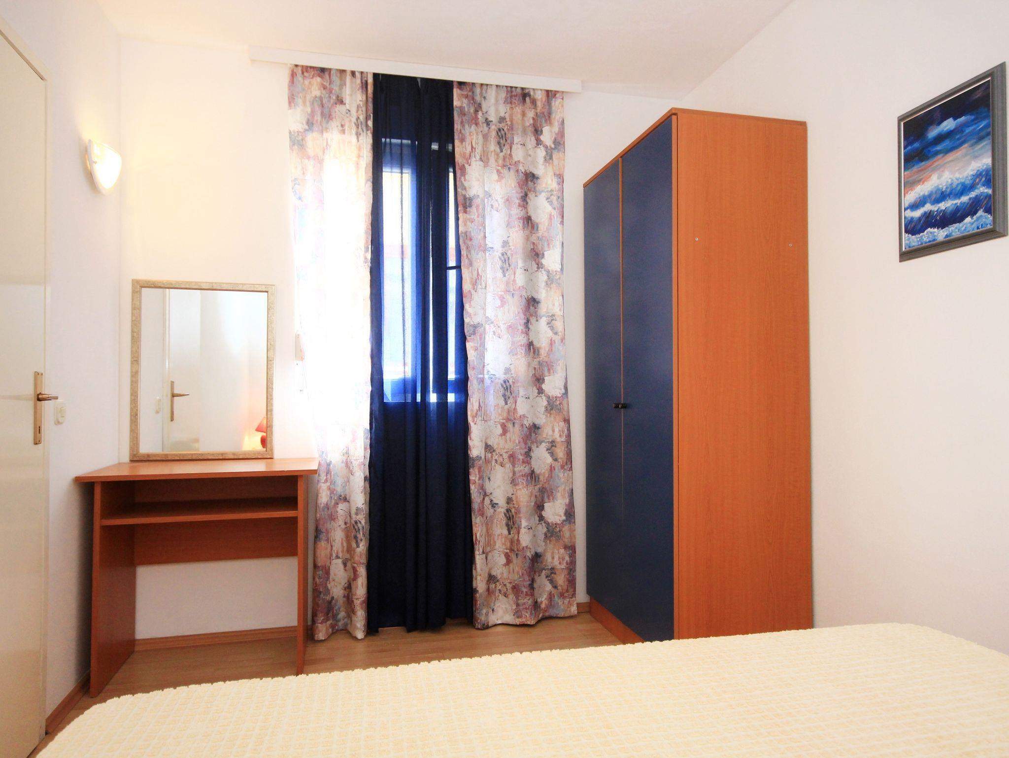 Ferienwohnung bietet Platz für 4 Gäste. Die Betten sind in Schlafzimmern, die es 1 gibt, und in Wohnzimmer, innerhalb einer Gesamtfläche von 27m2, angeordnet. Die Gäste haben eine eigene Terrasse zur Verfügung, auf der sie in warmen Sommernächten genießen können. Es ist erlaubt, Speisen auf dem Gemeinschafts-Grill vorzubereiten. In der Unterkunftseinheit besteht die Möglichkeit des Mitbringens von Haustieren gegen Aufpreis. IM PREIS INBEGRIFFEN: Kurtaxe, Endreinigung, Klimatisierung, Parkplatz, Internet, Kinderbett, Bügeleisen, Bügelbrett, Föhn. VERBINDLICHE ZUSÄTZLICHE KOSTEN: Aufzahlung für Kurzaufenthalte (prozentualer Zuschlag pro Nächtigungsanzahl: 30% - 1, 20% - 2, 10% - 3). UNVERBINDLICHE ZUSÄTZLICHE KOSTEN: Haustiere (5,00 € pro Nacht). Die Verfügbarkeit zusätzlicher Dienstleistungen in Ihrem reservierten Termin und die Preise derselben (falls nicht aufgeführt) müssen im Voraus überprüft werden. Zusätzliche Dienstleistungen die in der Zahlungsaufforderung nicht aufgeführt sind werden direkt beim Vermieter bezahlt, angenommen der Gast nutzt auch diese.