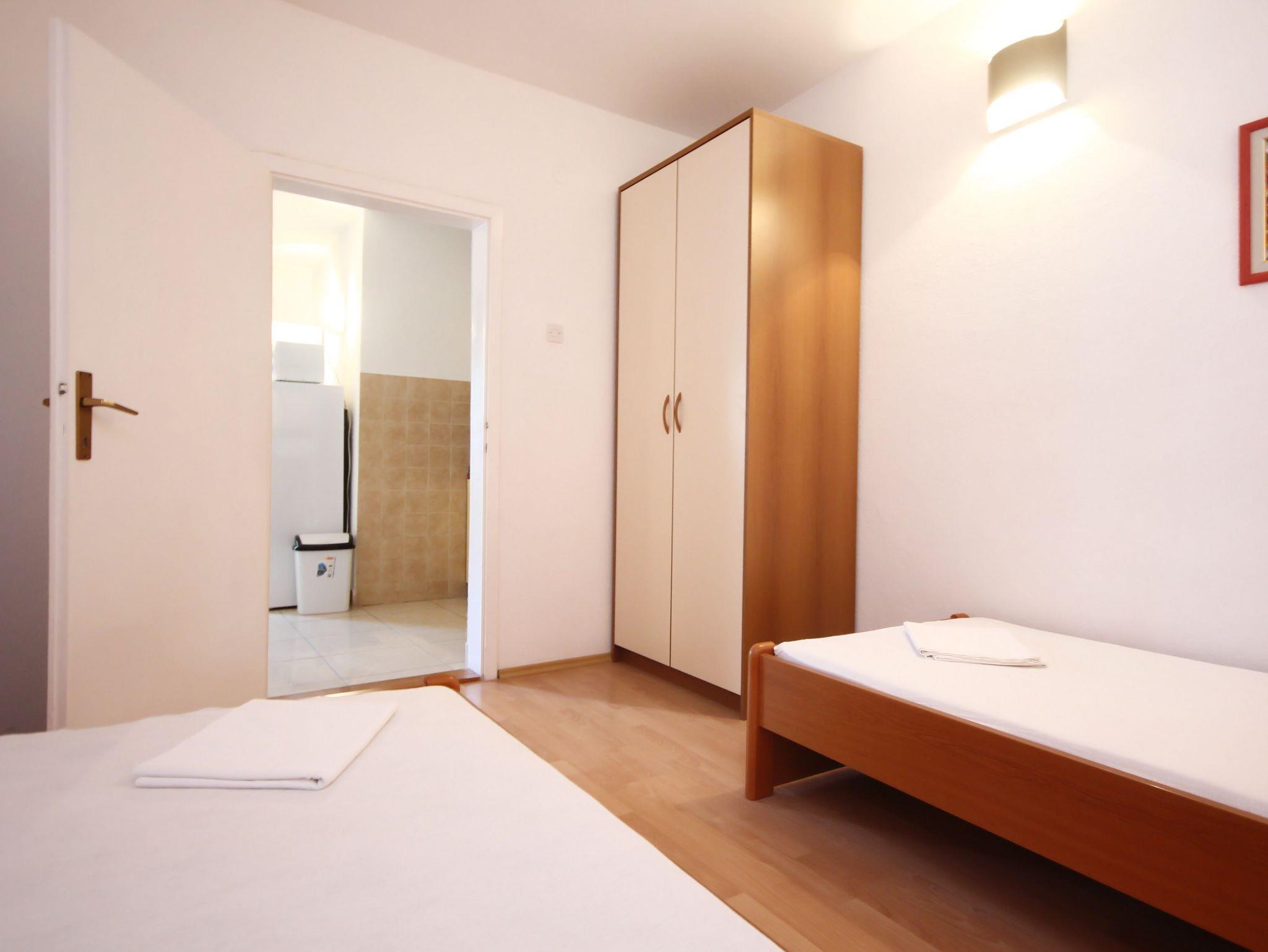 Ferienwohnung bietet Platz für 5 Gäste. Die Betten sind in Schlafzimmern, die es 2 gibt, und in Wohnzimmer, innerhalb einer Gesamtfläche von 46m2, angeordnet. Die Gäste haben eine eigene Terrasse zur Verfügung, auf der sie in warmen Sommernächten genießen können. Es ist erlaubt, Speisen auf dem Gemeinschafts-Grill vorzubereiten. In der Unterkunftseinheit besteht die Möglichkeit des Mitbringens von Haustieren gegen Aufpreis. IM PREIS INBEGRIFFEN: Kurtaxe, Endreinigung, Klimatisierung, Parkplatz, Internet, Kinderbett, Bügeleisen, Bügelbrett, Föhn. VERBINDLICHE ZUSÄTZLICHE KOSTEN: Aufzahlung für Kurzaufenthalte (prozentualer Zuschlag pro Nächtigungsanzahl: 30% - 1, 20% - 2, 10% - 3). UNVERBINDLICHE ZUSÄTZLICHE KOSTEN: Haustiere (5,00 € pro Nacht). Die Verfügbarkeit zusätzlicher Dienstleistungen in Ihrem reservierten Termin und die Preise derselben (falls nicht aufgeführt) müssen im Voraus überprüft werden. Zusätzliche Dienstleistungen die in der Zahlungsaufforderung nicht aufgeführt sind werden direkt beim Vermieter bezahlt, angenommen der Gast nutzt auch diese.