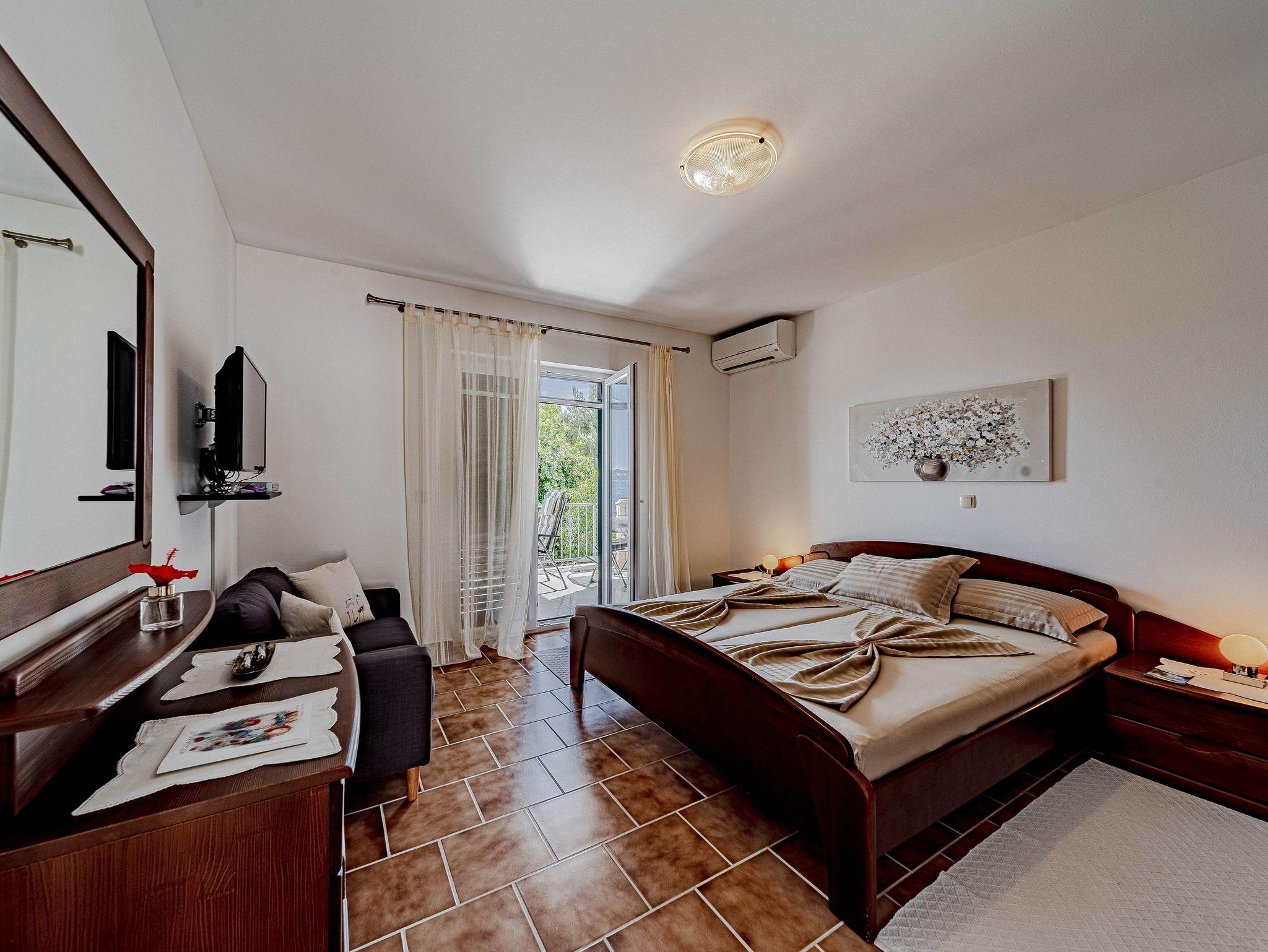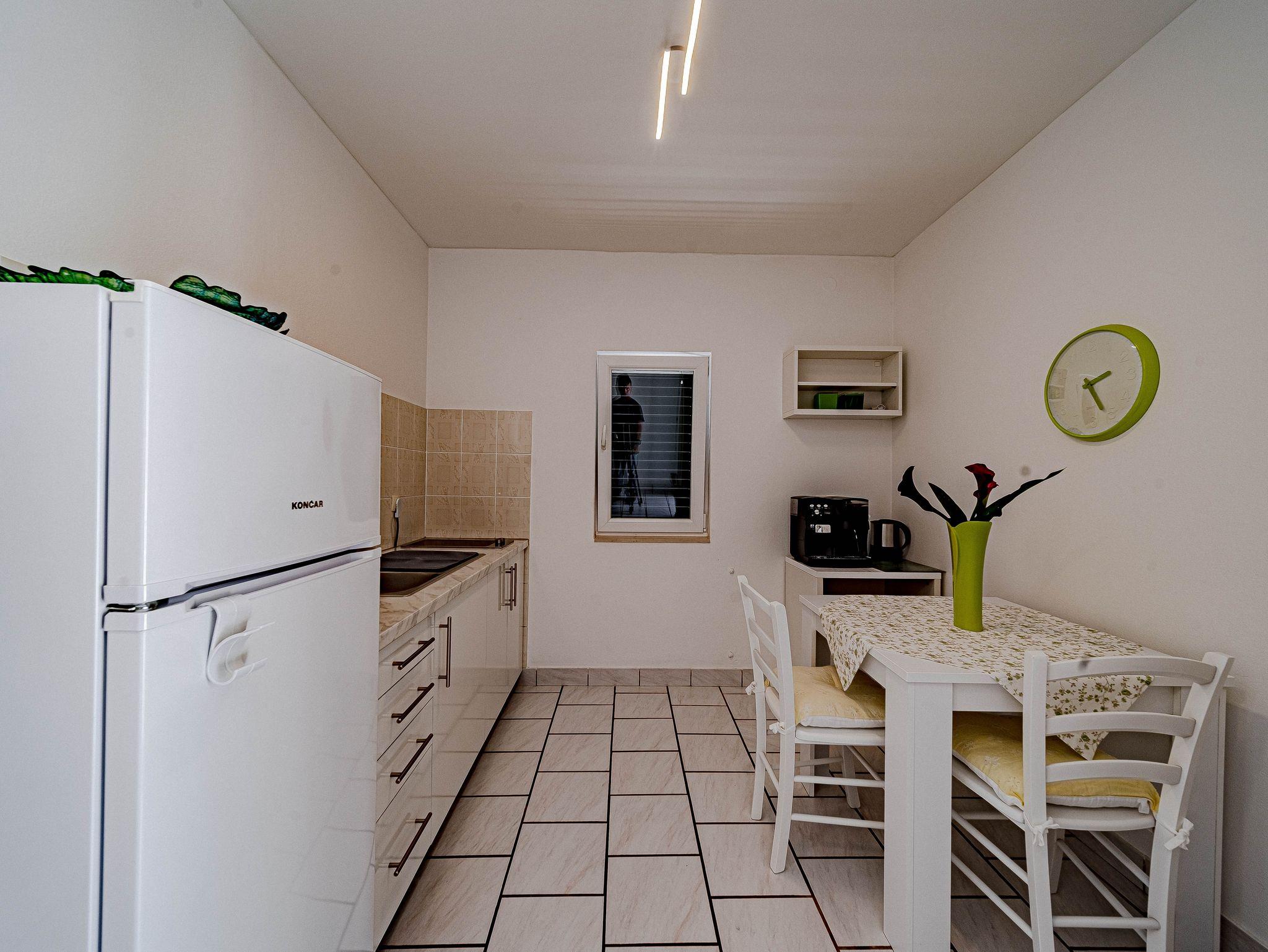 Ferienwohnung bietet Platz für 2 Gäste. Die Betten sind in Schlafzimmern, die es 1 gibt, innerhalb einer Gesamtfläche von 31m2, angeordnet. Die Gäste haben eine eigene Terrasse zur Verfügung, auf der sie in warmen Sommernächten genießen können. Das Apartment bietet Meerblick. Es ist erlaubt, Speisen auf dem Gemeinschafts-Grill vorzubereiten. IM PREIS INBEGRIFFEN: Kurtaxe, Endreinigung, Klimatisierung, Parkplatz, Internet, Bootsanlegeplatz, Kinderbett, Bügeleisen, Bügelbrett, Föhn, Sonnenschirm. Die Verfügbarkeit zusätzlicher Dienstleistungen in Ihrem reservierten Termin und die Preise derselben (falls nicht aufgeführt) müssen im Voraus überprüft werden. Zusätzliche Dienstleistungen die in der Zahlungsaufforderung nicht aufgeführt sind werden direkt beim Vermieter bezahlt, angenommen der Gast nutzt auch diese. Ermäßigung auf den Grundpreis: Gratistag 14=13 (bei einem Aufenthalt von 14 Tagen oder mehr erhalten Sie einen Gratistag für den Aufenthalt bis 31.12.26).