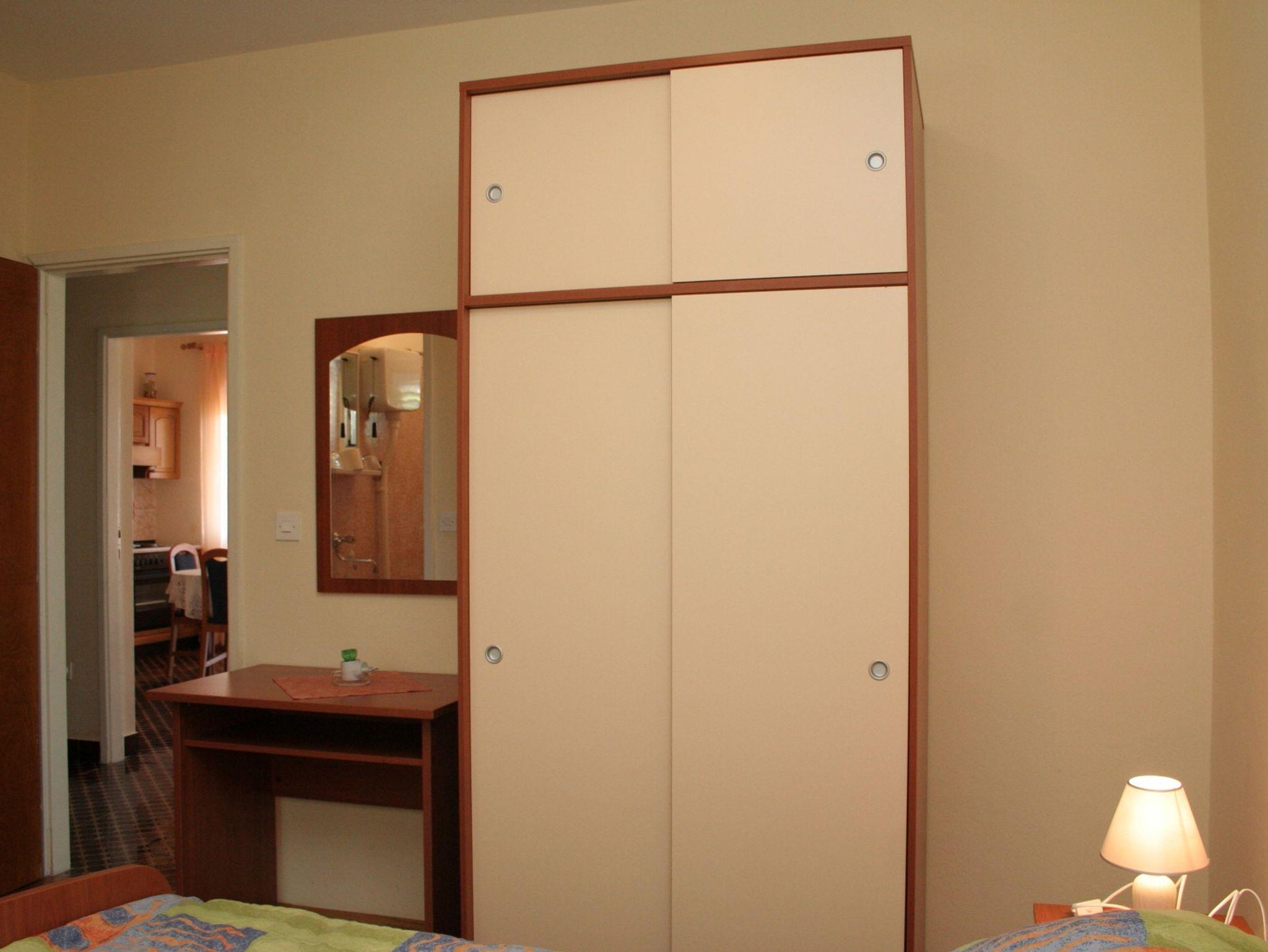 Ferienwohnung bietet Platz für 4 Gäste. Die Betten sind in Schlafzimmern, die es 2 gibt, innerhalb einer Gesamtfläche von 63m2, angeordnet. Die Gäste haben eine eigene Terrasse zur Verfügung, auf der sie in warmen Sommernächten genießen können. Das Apartment bietet Meerblick. Es ist erlaubt, Speisen auf dem Gemeinschafts-Grill vorzubereiten. IM PREIS INBEGRIFFEN: Kurtaxe, Endreinigung, Klimatisierung, Parkplatz, Internet, Wäschewaschen, Bügeleisen, Bügelbrett, Föhn. Die Verfügbarkeit zusätzlicher Dienstleistungen in Ihrem reservierten Termin und die Preise derselben (falls nicht aufgeführt) müssen im Voraus überprüft werden. Zusätzliche Dienstleistungen die in der Zahlungsaufforderung nicht aufgeführt sind werden direkt beim Vermieter bezahlt, angenommen der Gast nutzt auch diese.
