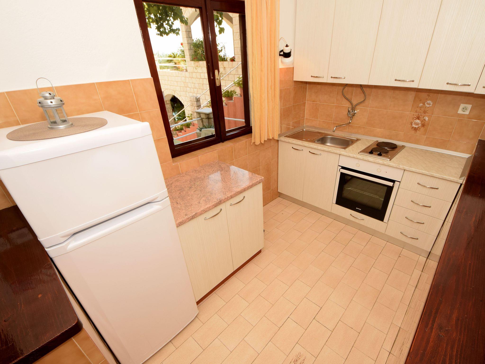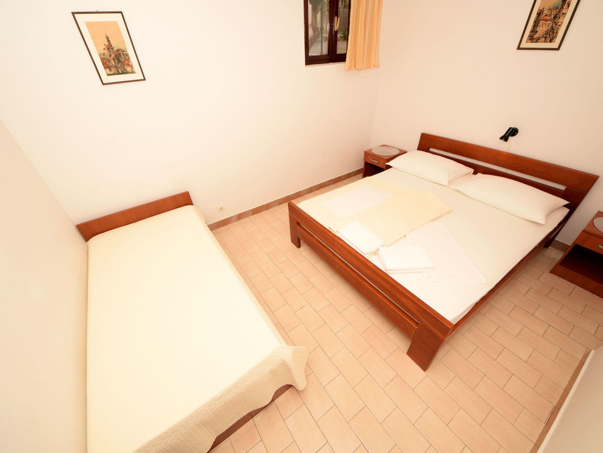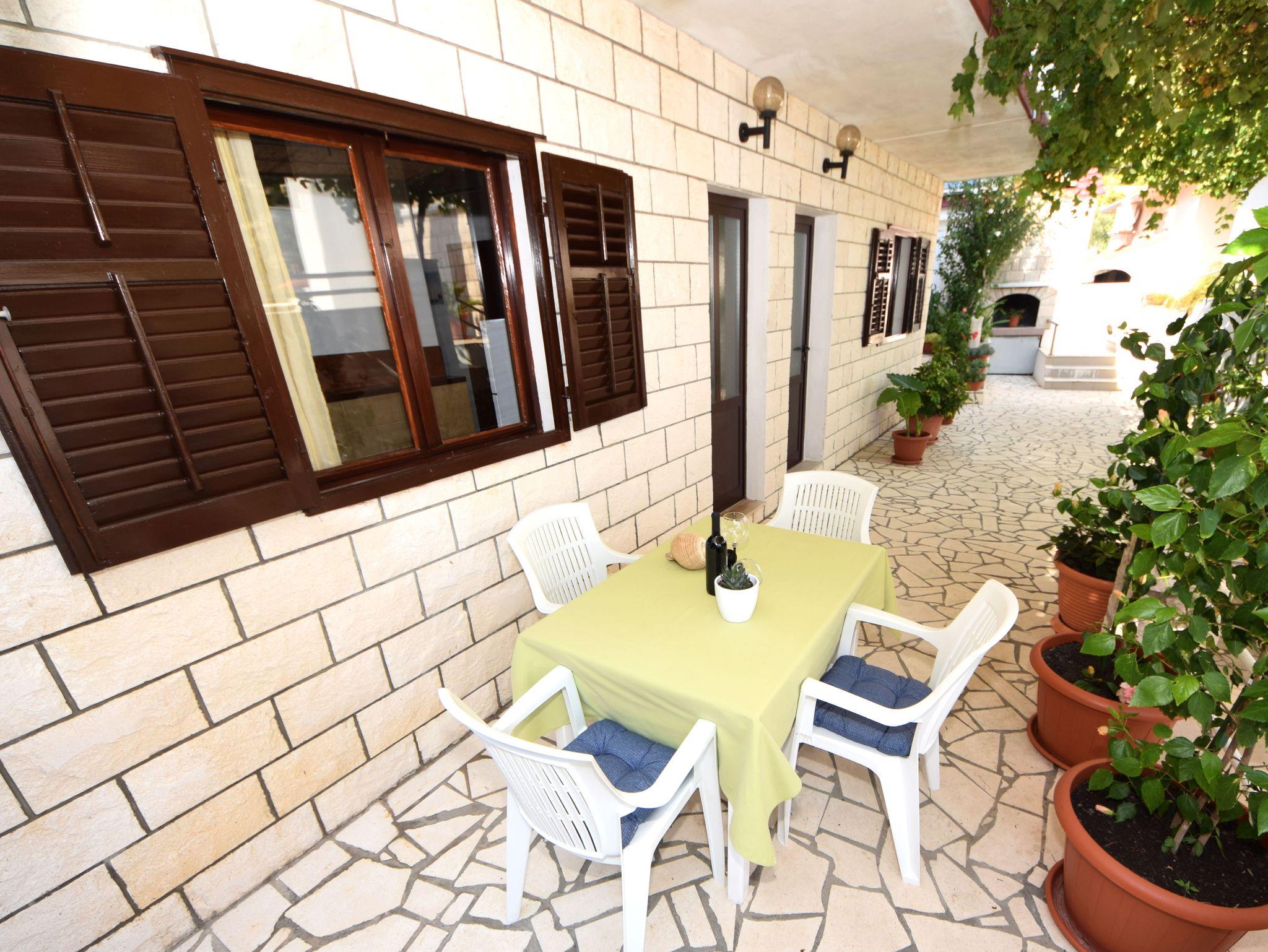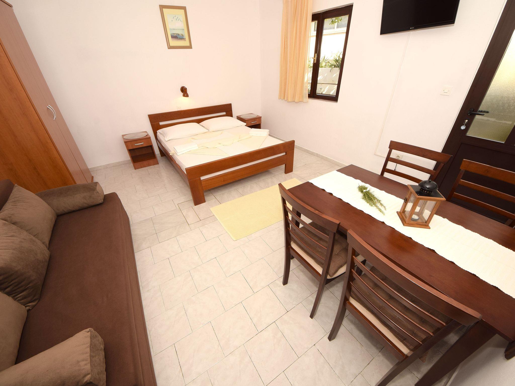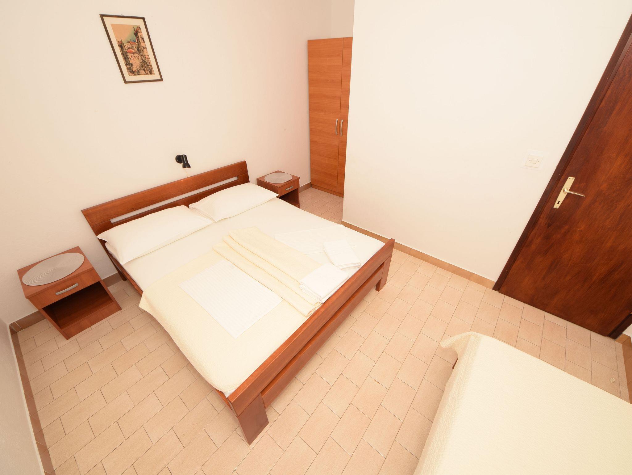 Ferienwohnung bietet Platz für 4 Gäste. Die Betten sind in Schlafzimmern, die es 2 gibt, innerhalb einer Gesamtfläche von 46m2, angeordnet. Die Gäste haben eine eigene Terrasse zur Verfügung, auf der sie in warmen Sommernächten genießen können. Das Apartment bietet Meerblick. Es ist erlaubt, Speisen auf dem Gemeinschafts-Grill vorzubereiten. IM PREIS INBEGRIFFEN: Kurtaxe, Endreinigung, Klimatisierung, Parkplatz, Internet. VERBINDLICHE ZUSÄTZLICHE KOSTEN: Aufzahlung für Kurzaufenthalte (prozentualer Zuschlag pro Nächtigungsanzahl: 30% - 1, 20% - 2, 10% - 3). UNVERBINDLICHE ZUSÄTZLICHE KOSTEN: Bootsanlegeplatz (10,00 € pro Nacht). Die Verfügbarkeit zusätzlicher Dienstleistungen in Ihrem reservierten Termin und die Preise derselben (falls nicht aufgeführt) müssen im Voraus überprüft werden. Zusätzliche Dienstleistungen die in der Zahlungsaufforderung nicht aufgeführt sind werden direkt beim Vermieter bezahlt, angenommen der Gast nutzt auch diese.