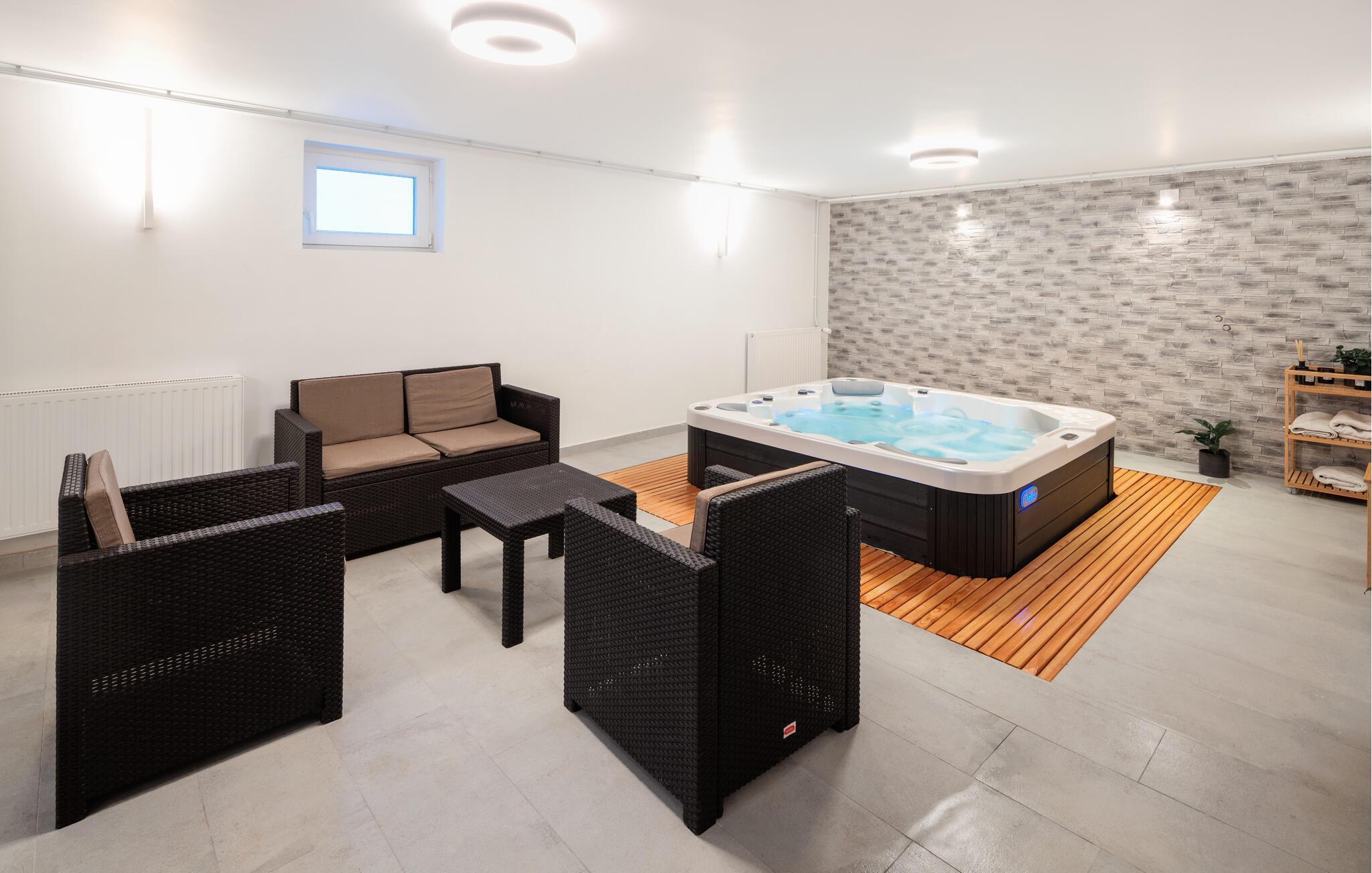 Willkommen in diesem modernen Feriendomizil nahe der Donau, in dem Sie sich mit Freunden oder der Familie rundum vom Alltag erholen können. Zaubern Sie kroatische Spezialitäten in der top ausgestatteten Küche und machen Sie es sich anschließend auf der Sofalandschaft bequem. Streamen Sie eine spannende Serie, spielen Sie auf der Playstation5 oder genießen Sie erholsame Momente im Whirlpool oder in der Sauna.
