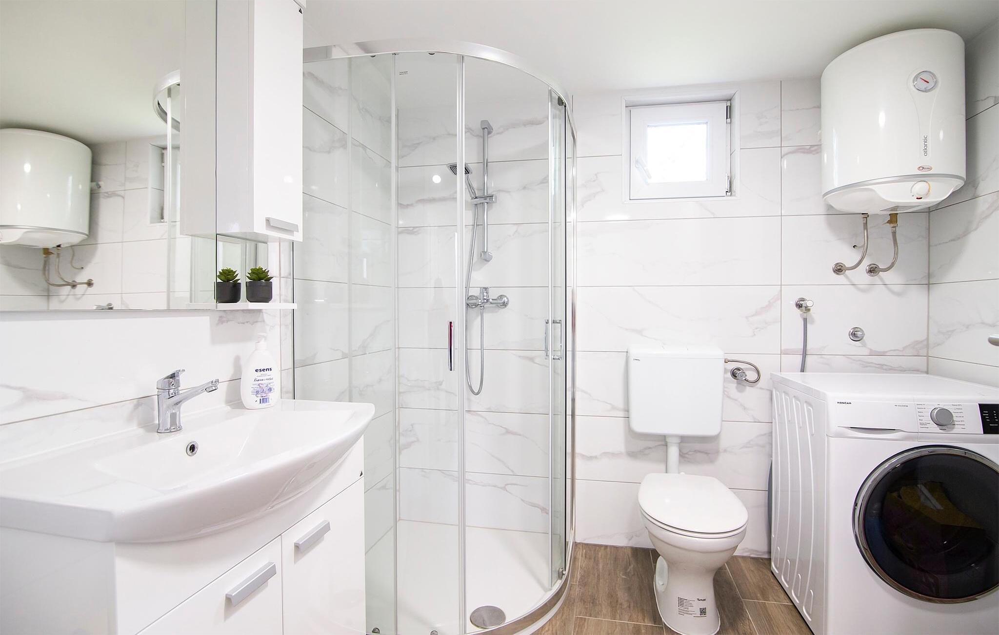 Badezimmer 7m2 (nr. 2) - WC. Warmes und kaltes Wasser. Dusche