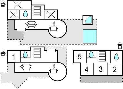 Badezimmer 7m2 (nr. 3) - WC. Warmes und kaltes Wasser. Dusche