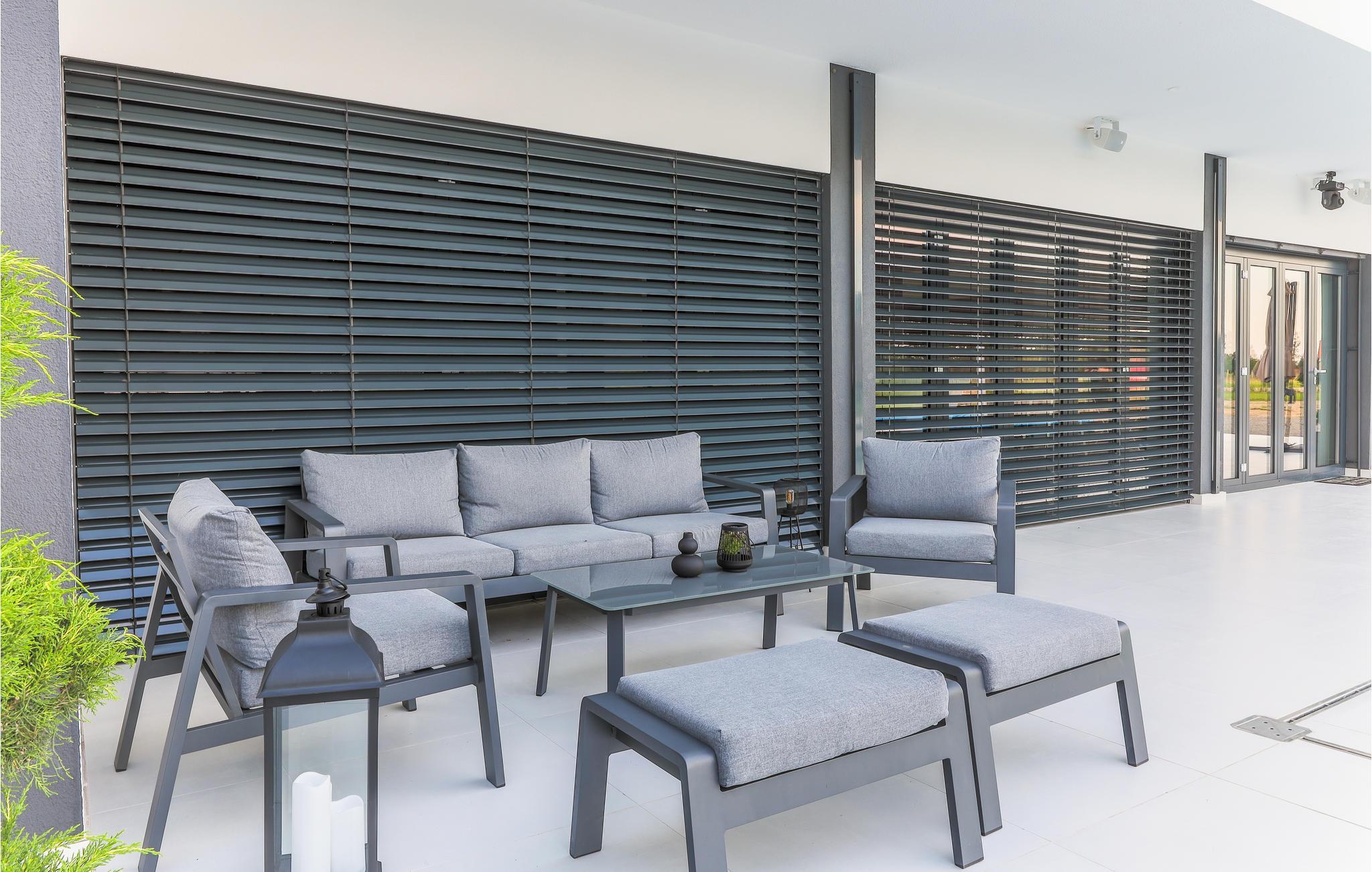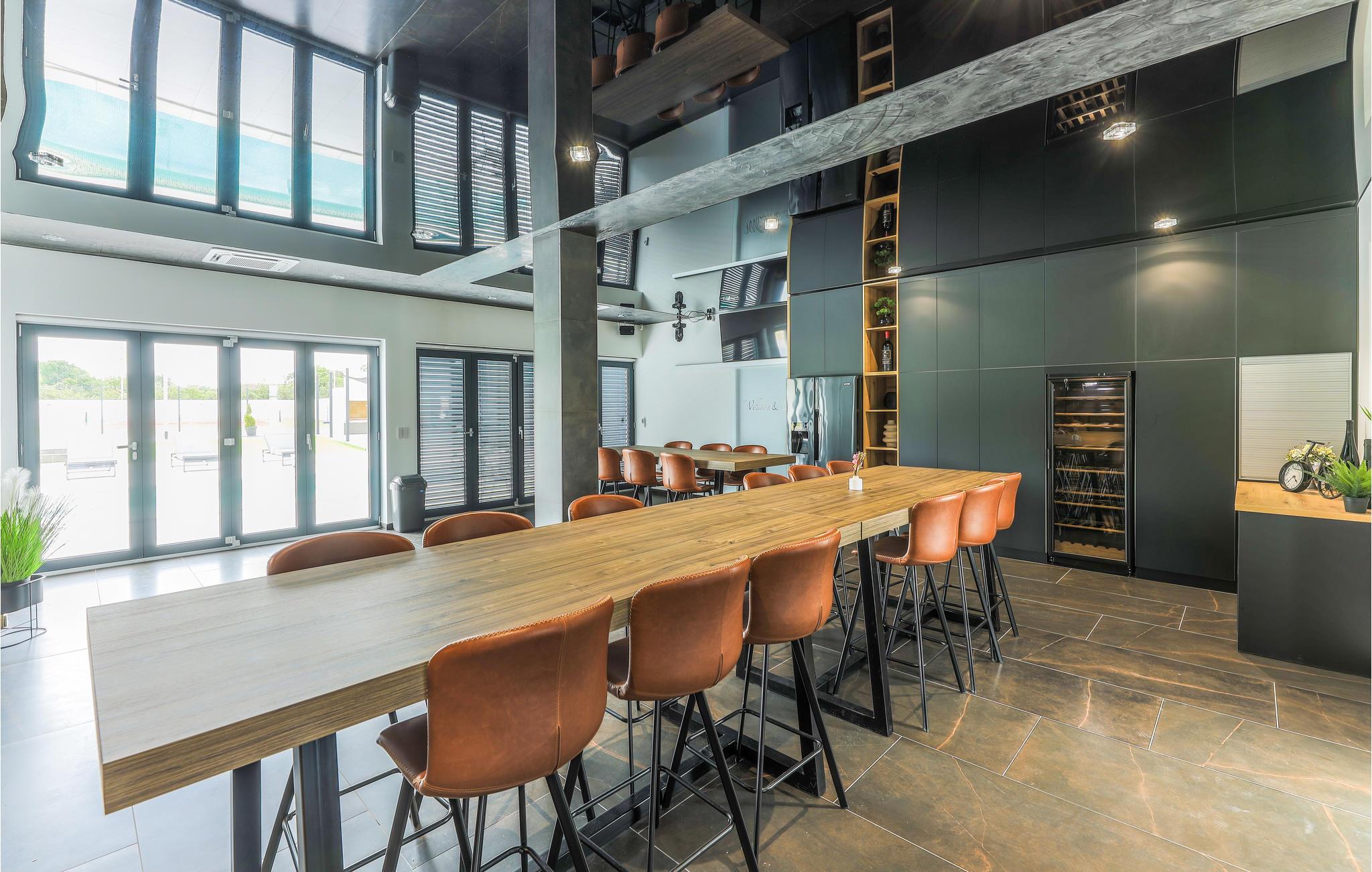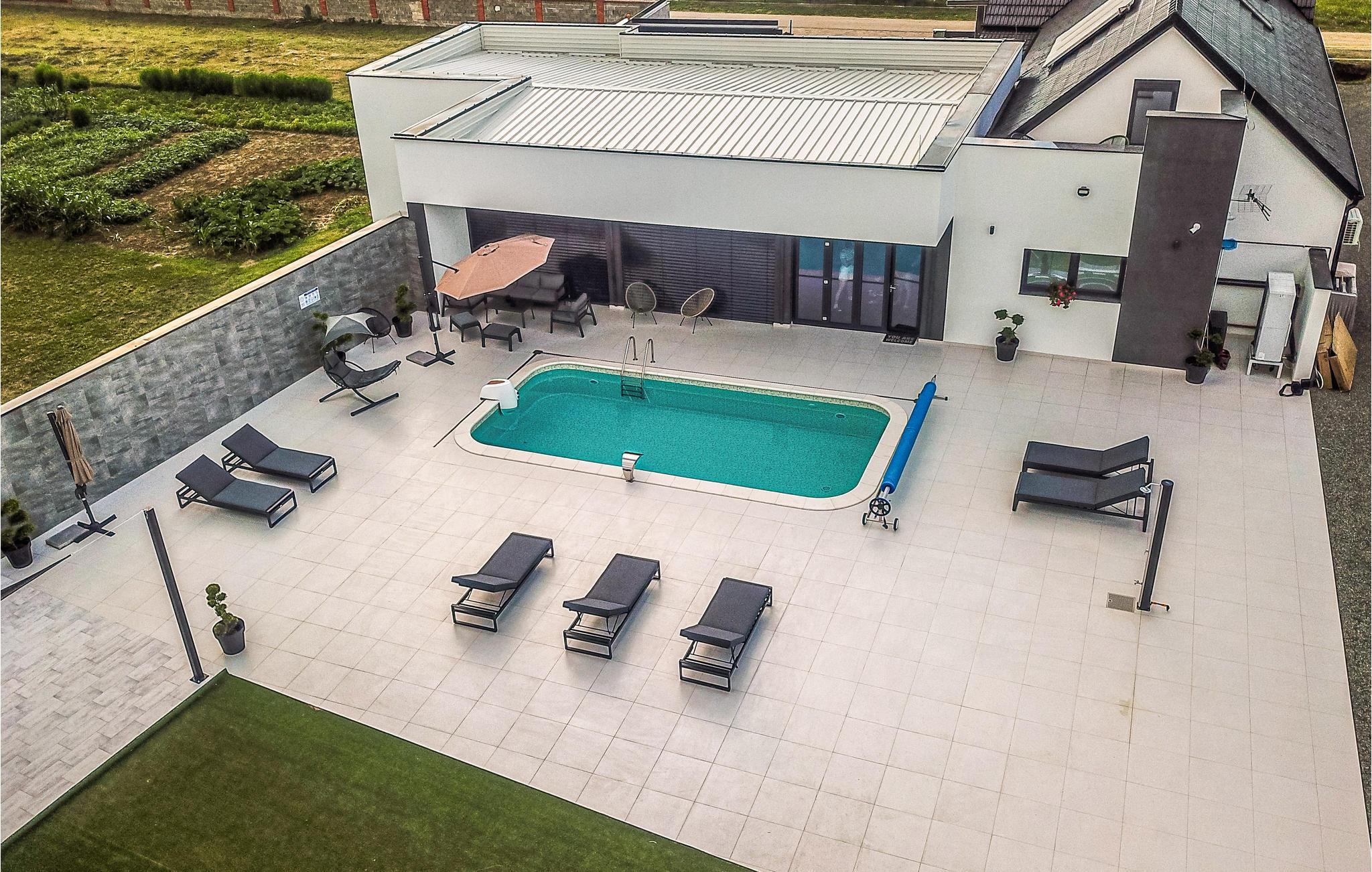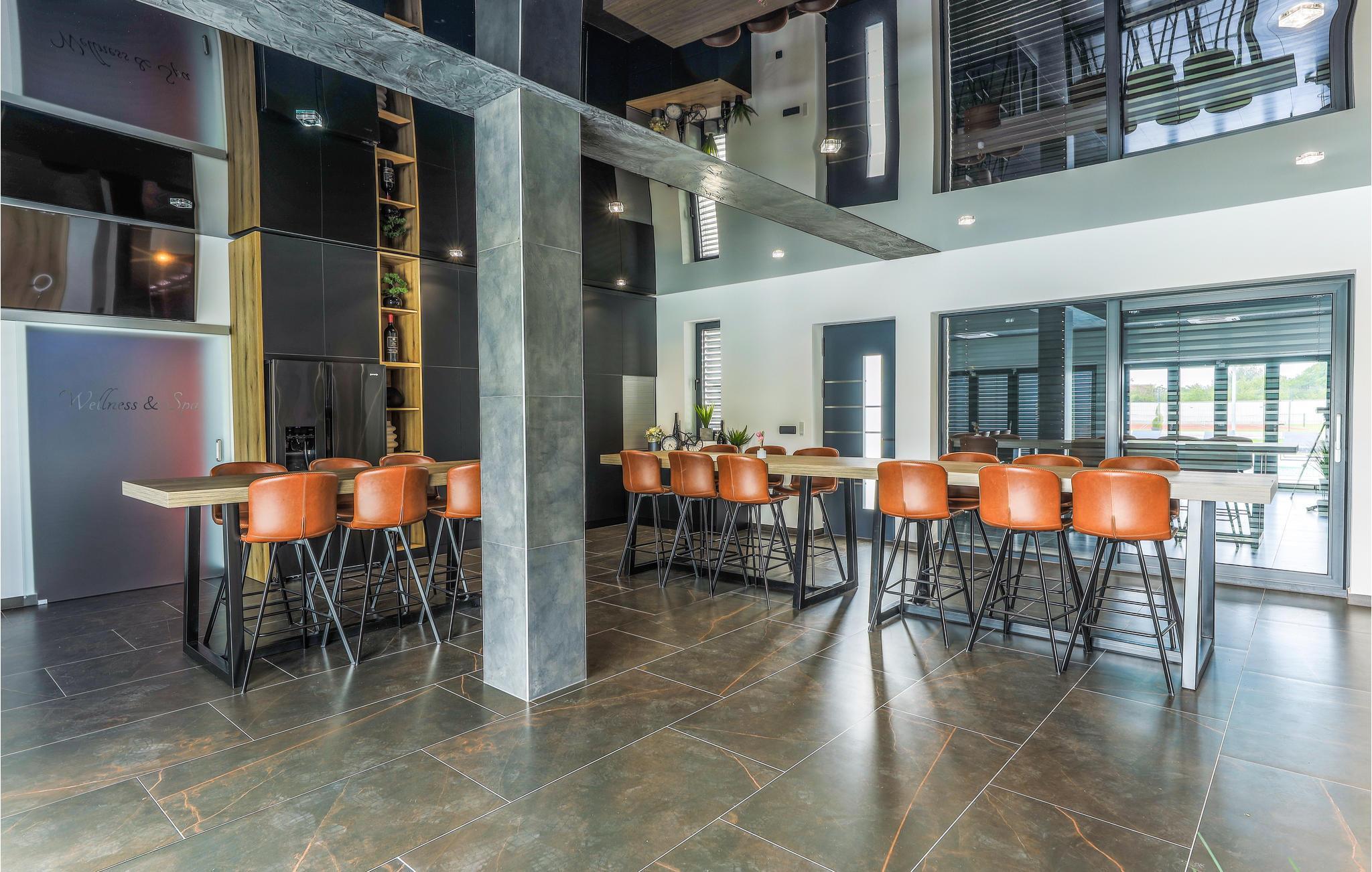 Schon wenn Sie mit Ihrem Auto auf den Innenhof einfahren, kann man nur „wow“ sagen. Hier haben Sie Platz für Ihre Fahrzeuge und können Sie abstellen. Gehen Sie weiter in das imposante Haus werden Ihnen die moderne und stylische Ausstattung direkt ins Augen springen. Zahlreiche Sitzgelegenheiten versprechen gesellige Abendessen. Treten Sie von dem großen Aufenthaltsraum auf die hell gestaltete Terrasse mit stilvollen Gartenmöbeln. Der Pool lädt Sie ein am Morgen, nach dem Aufstehen, die ersten Bahnen zu ziehen. Der gemauerte Grill bietet Ihnen an den Abenden viel Platz Speisen vorzubereiten und alle zu verköstigen.