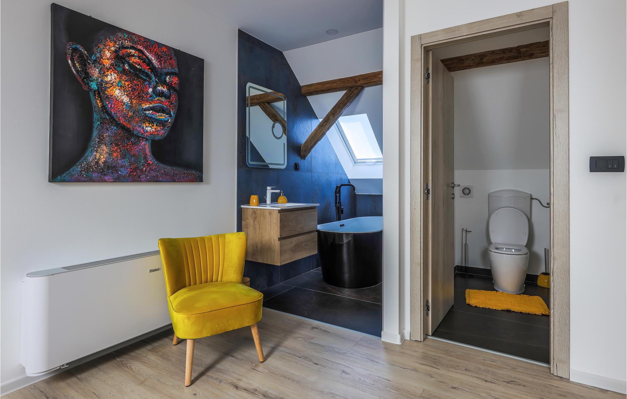 Badezimmer 12m2 (nr. 4) - WC. Warmes und kaltes Wasser. Badewanne