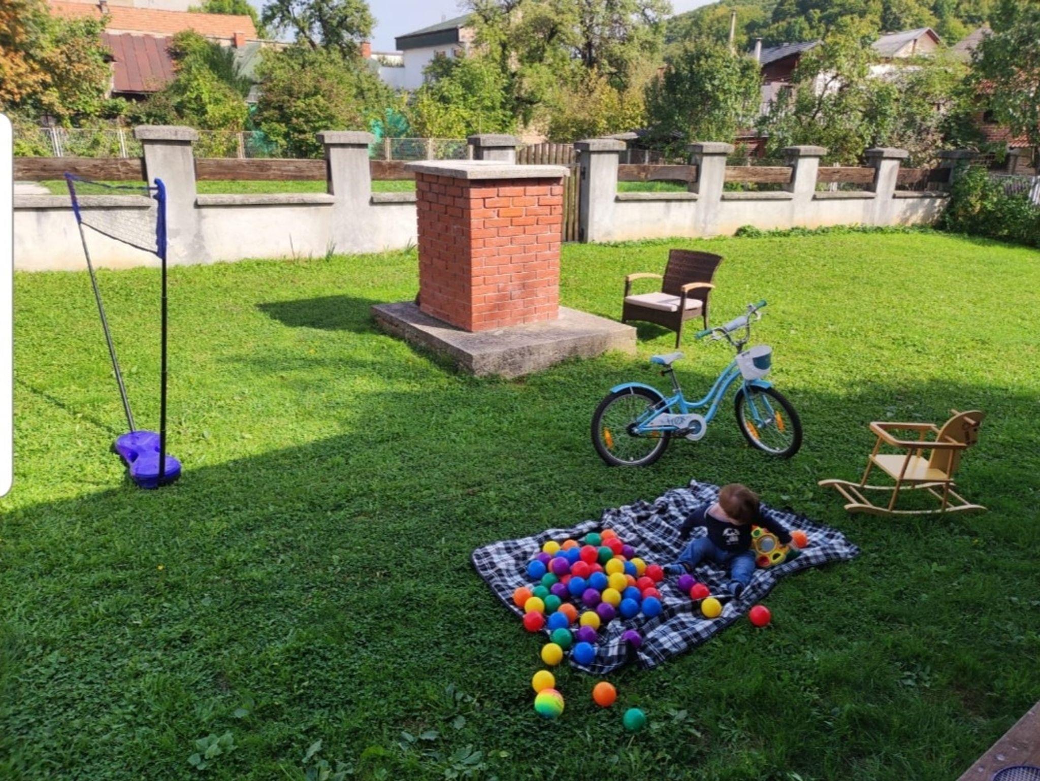 Hof (100m2, Kinderbereich, Sitzbereich), Parkplatz (Anzahl der Parkplätze: 3, Entfernung vom Objekt: im Hof), Parkplatz (Anzahl der Parkplätze: 10, Entfernung vom Objekt: 50 m), Grill: gemeinsam, WiFi Internet, Wäschewaschen, Fahrrad (Anzahl: 4), Föhn, Bügeleisen, Bügelbrett, Kinderbett