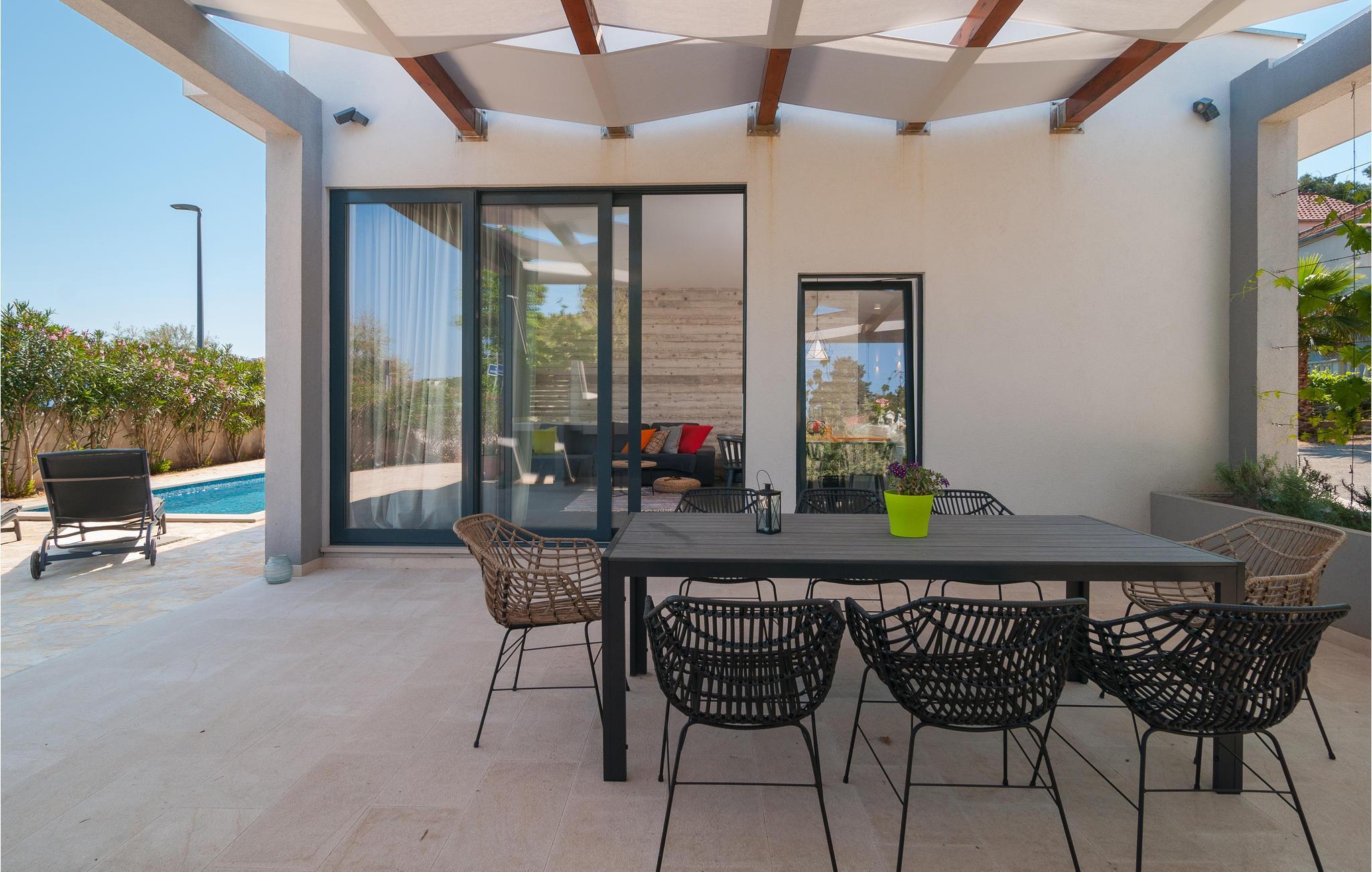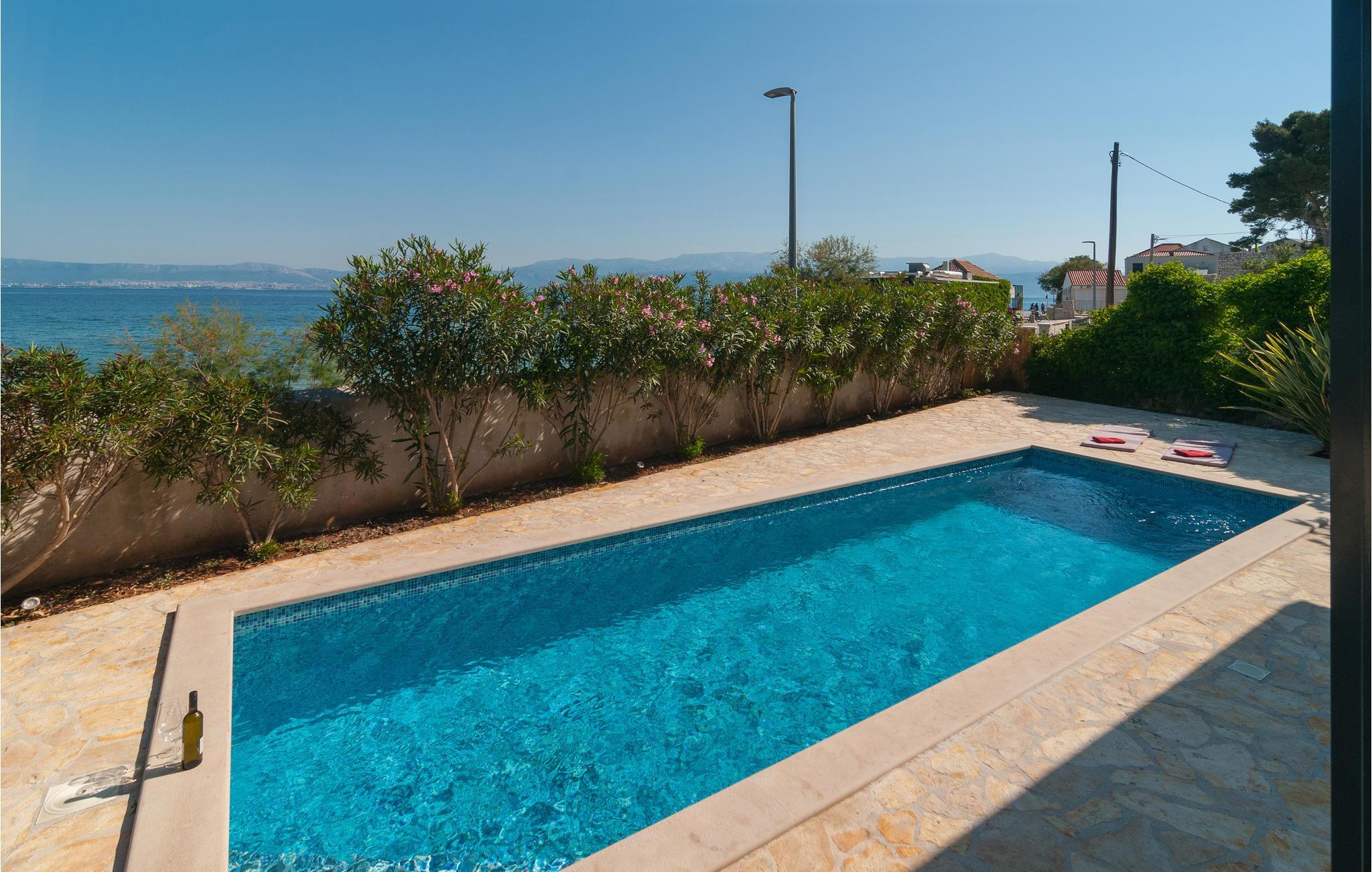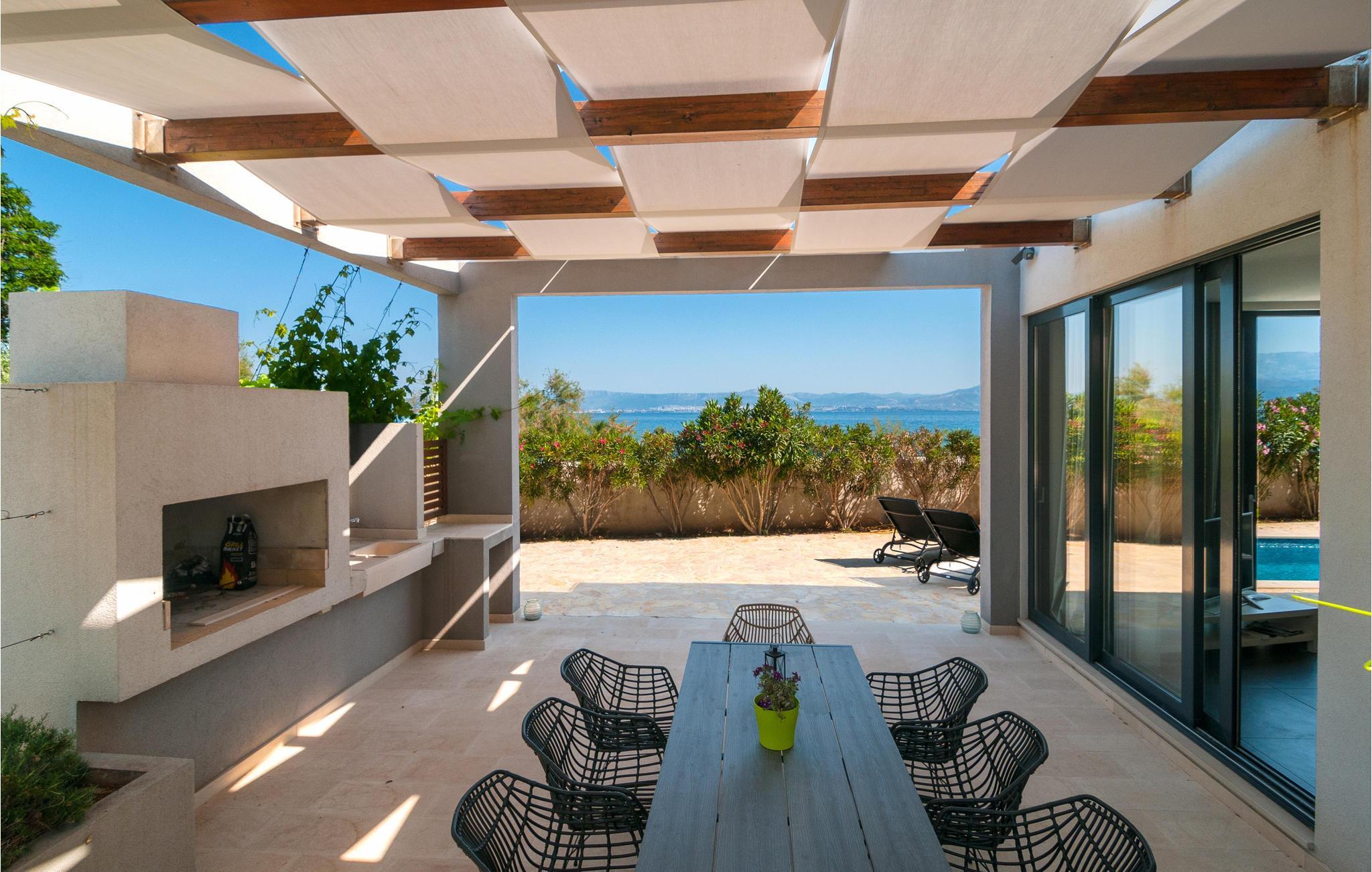 Dieses Ferienunterkunft bietet Ihnen alles, was das Urlauberherz begehrt: eine komplette und gemütliche Ausstattung, einen privaten Pool direkt vor dem Haus und einen wundervollen Blick auf das Meer. Hier können Sie es sich so richtig gut gehen lassen und endlich wieder abschalten. Profitieren Sie von der wundervollen Veranda mit eingebautem Steingrill, wo Sie abends mit Ihren Liebsten zusammensitzen und ein leckeres Barbecue genießen können. Sonnen Sie sich auf den Liegestühlen und springen Sie für eine Abkühlung ins erfrischende Nass.