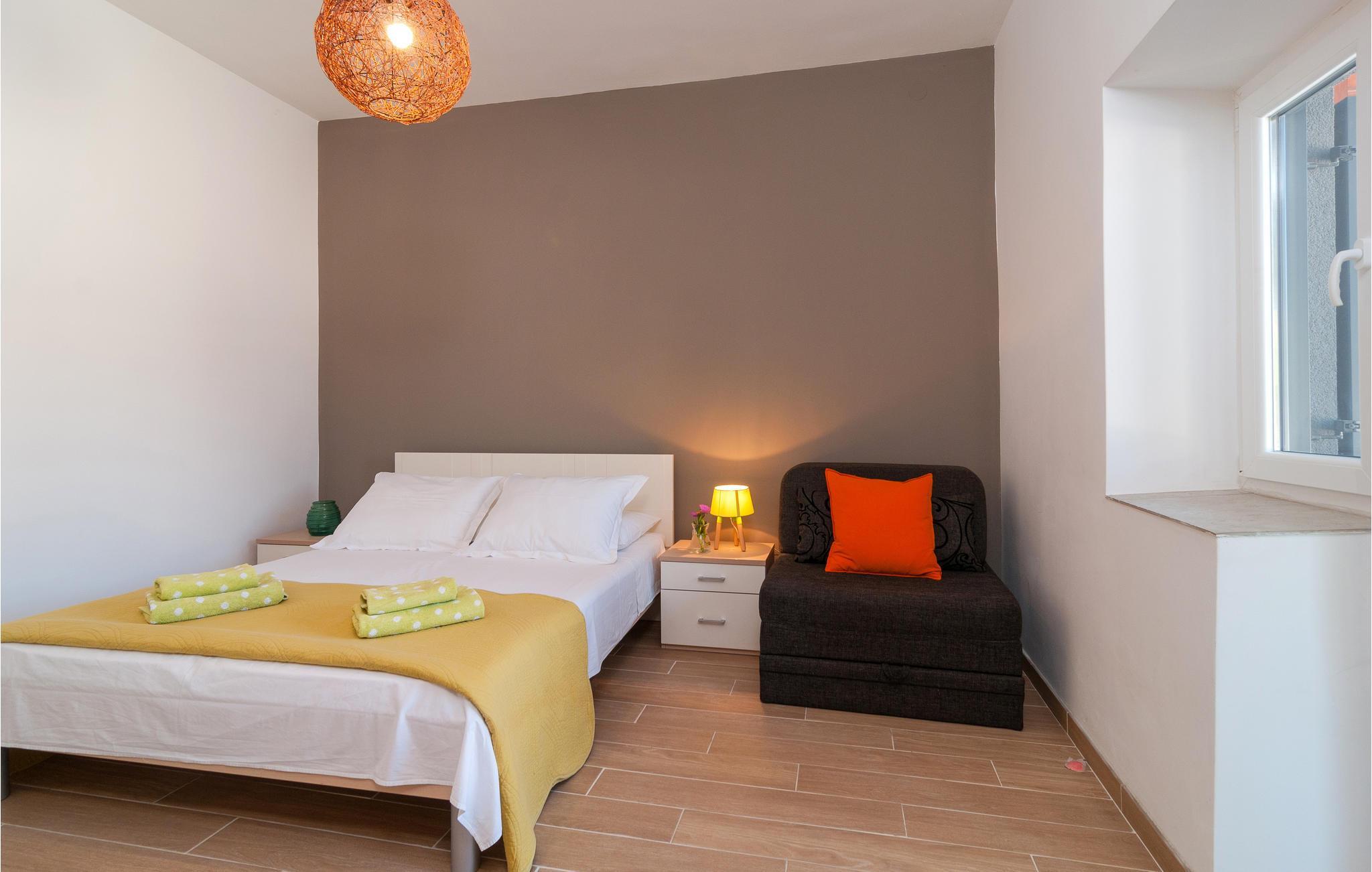 Diese taghelle Unterkunft bietet Ihnen alles, was Sie für einen Urlaub benötigen würden. Im Innenraum erwartet Sie eine einfache Ausstattung, die aber mit der Auswahl von modernen und stilvollen Dekorationen und Möbeln punktet. Machen Sie es sich bei kühleren Tagen im Innenraum auf dem Sofa oder bei Tisch gemütliche oder nutzen Sie die offene Terrasse mit für ein entspanntes Frühstück mit Ihrer Begleitung. Zudem haben Sie auch Zugang zu einer Außenküche mit Grill, die gemeinsam mit den anderen Apartments des Hauses geteilt werden.
