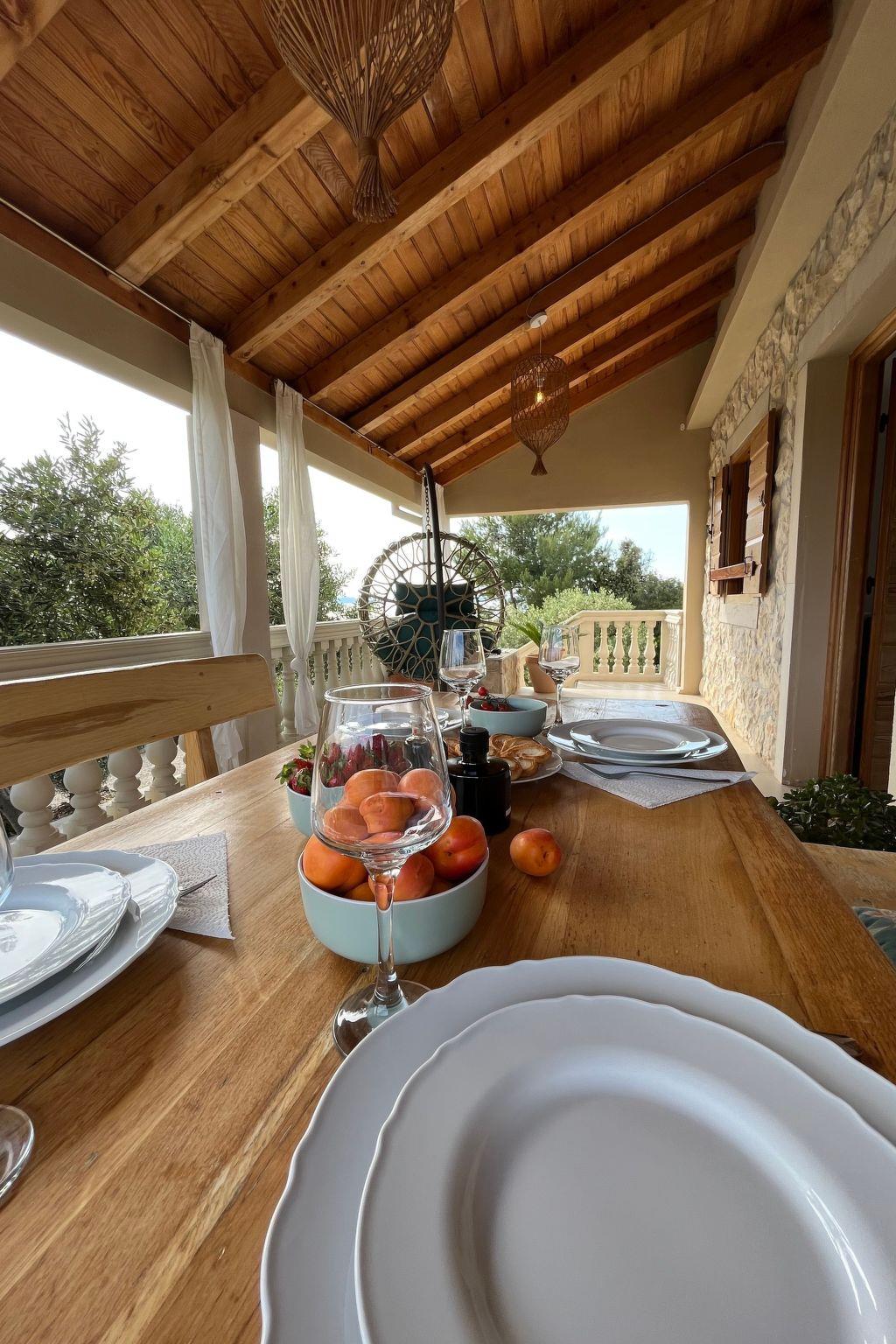 Auf Ihrer überdachten Terrasse direkt vorm Haus können Sie es sich an dem Holztisch mit Bänken bequem machen und den Panorama-Meerblick über die blaue Adria genießen. Unten im weitläufigen, liebevoll mit Olivenbäumen, mediterranen Büschen und Kräutern begrünten Gartenbereich lädt dann ein traditioneller Steingrill zu langen Abenden im Freien ein. Eine Außendusche sorgt noch für zusätzlichen Komfort. Ein privater Pool ist das Highlight des Gartens.