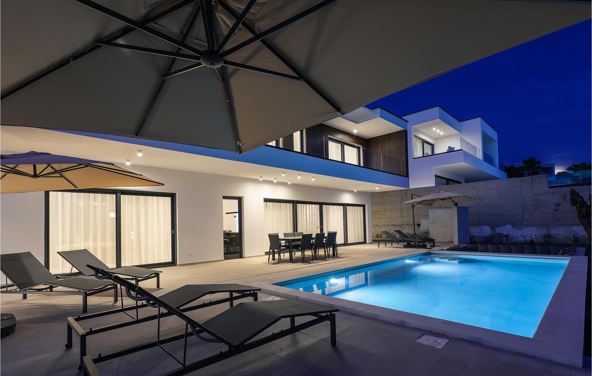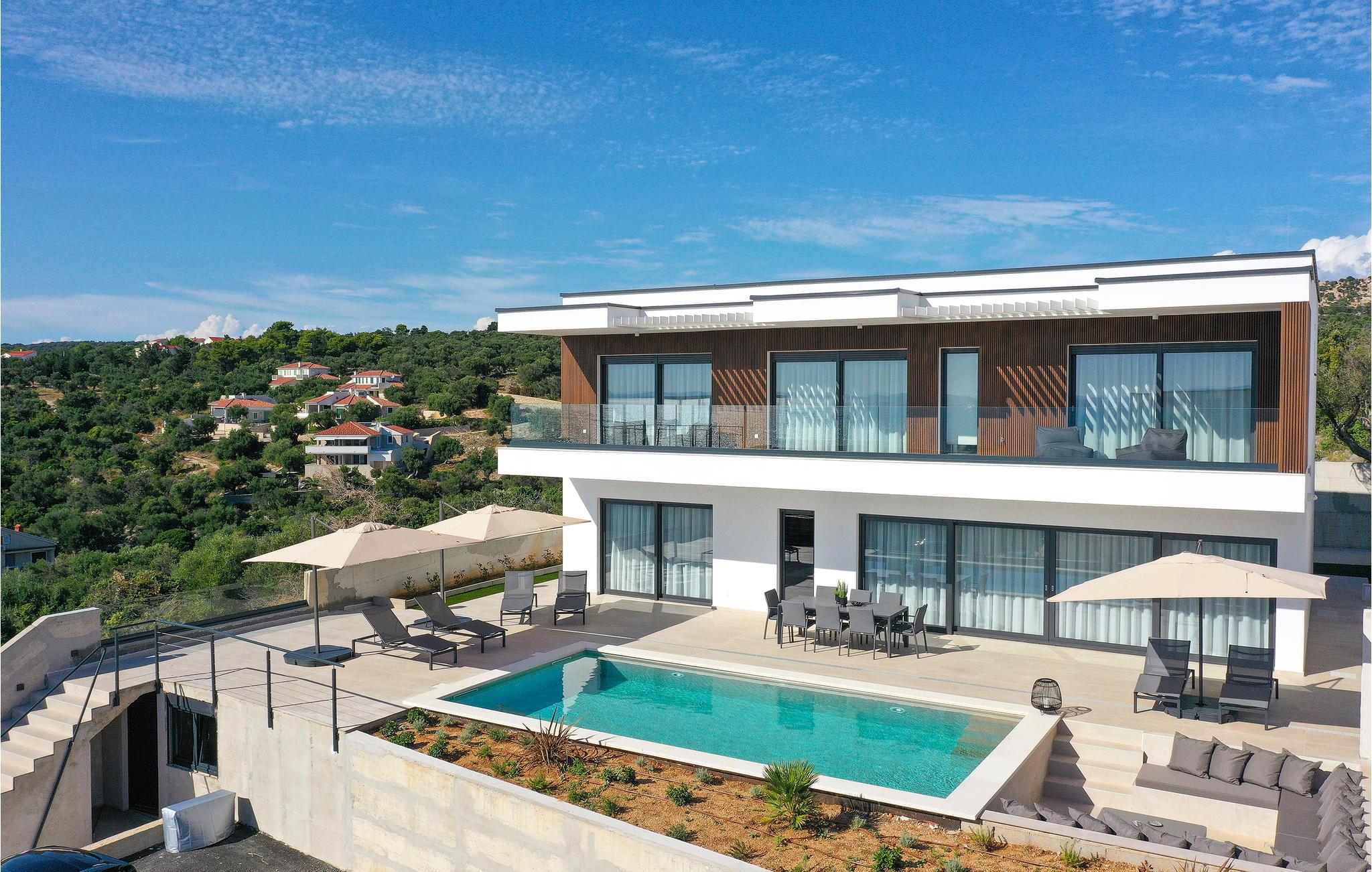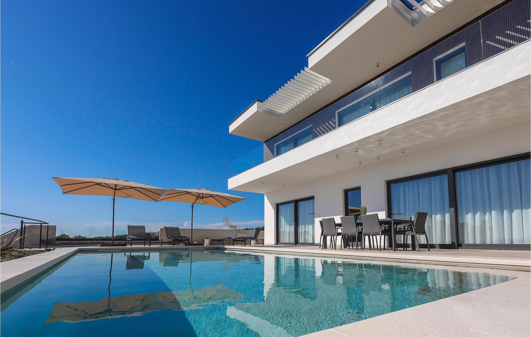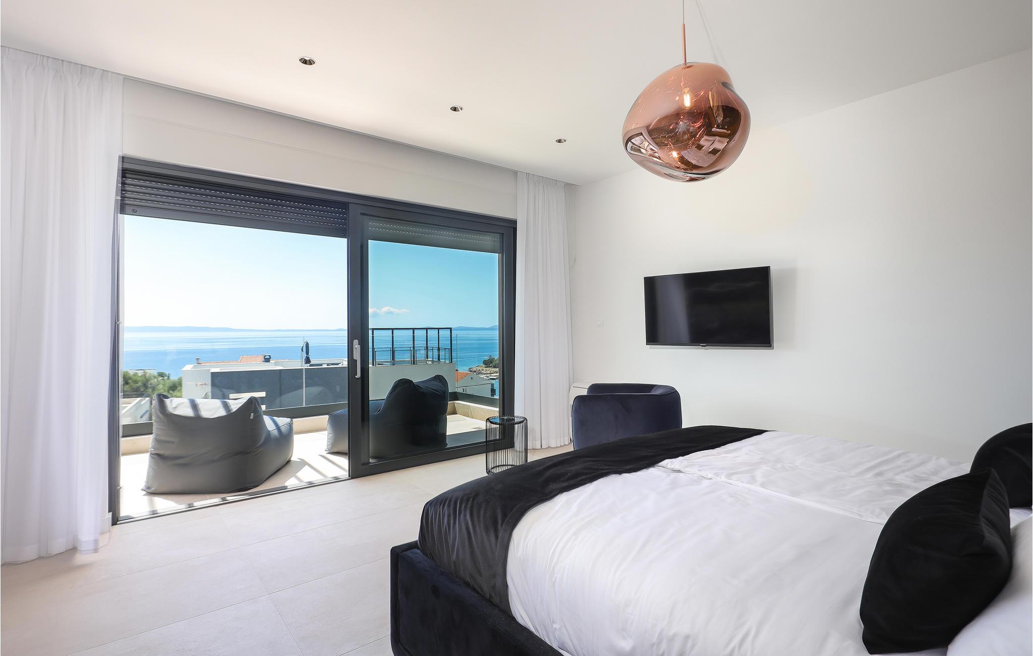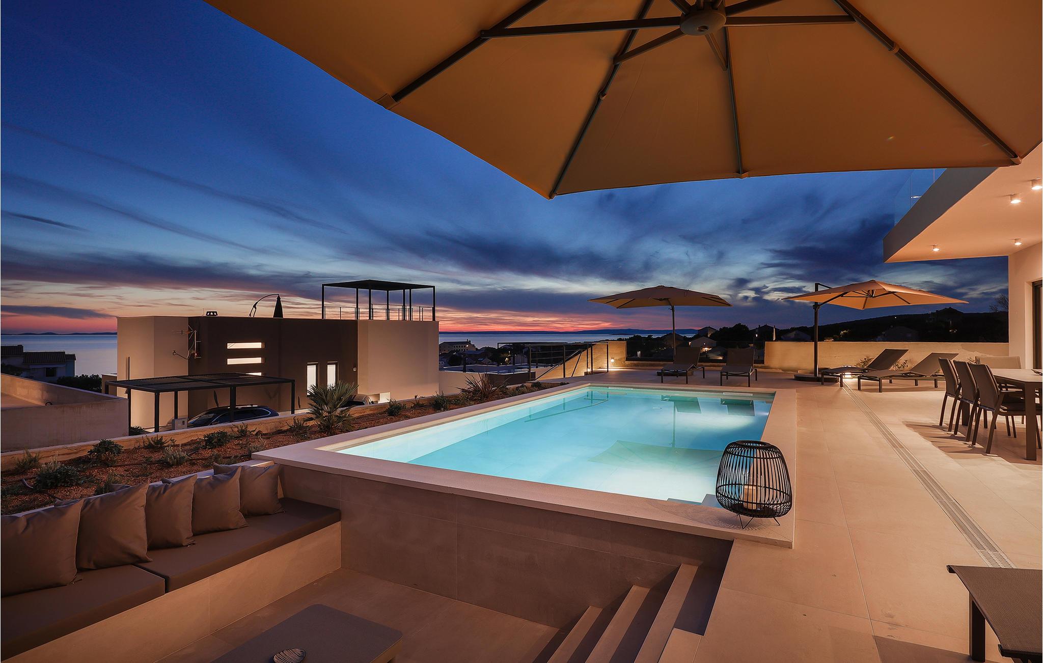 Genießen Sie eine fantastische Aussicht auf das Meer in diesem attraktiven Ferienhaus mit Pool und Sauna.
